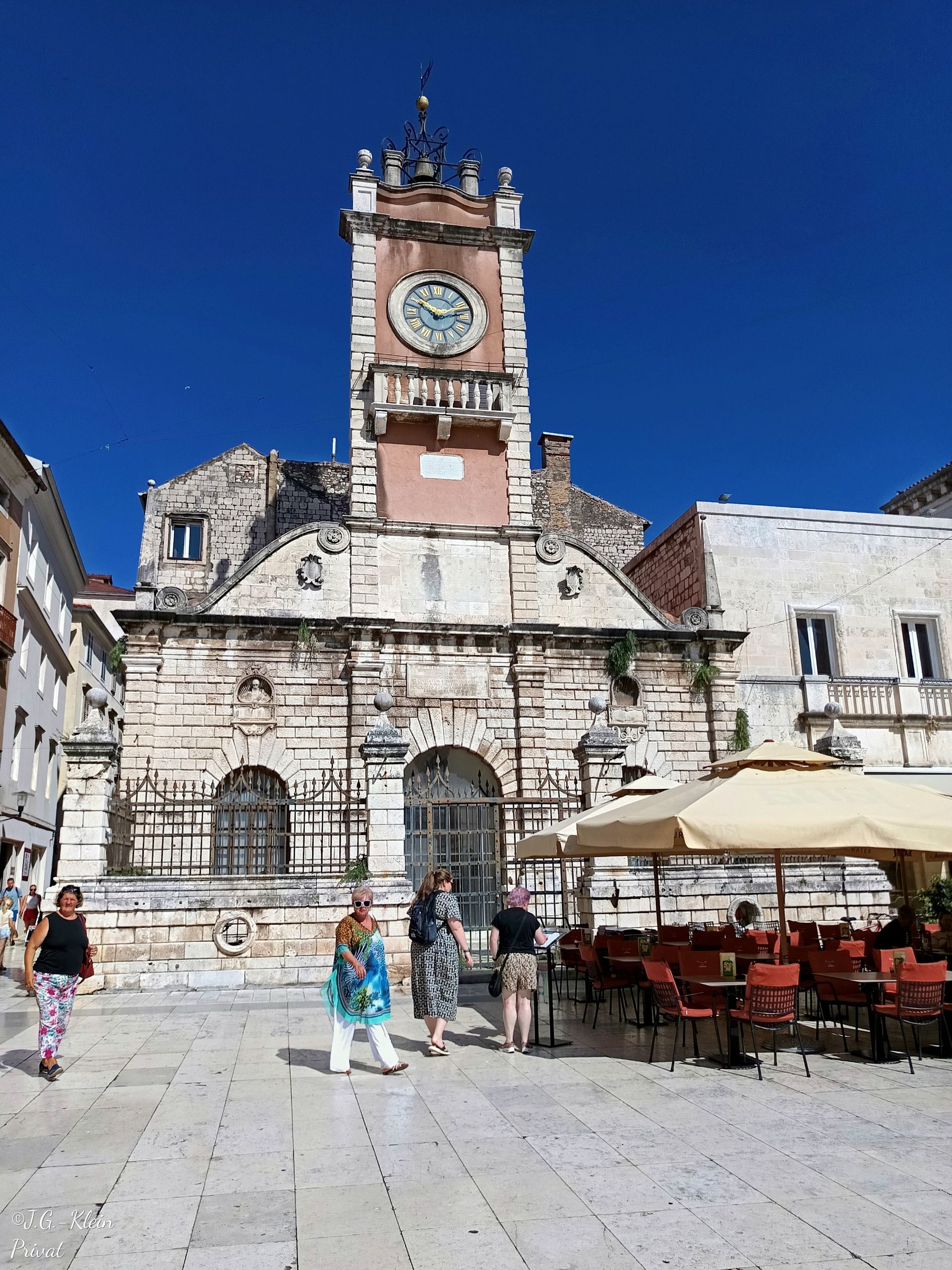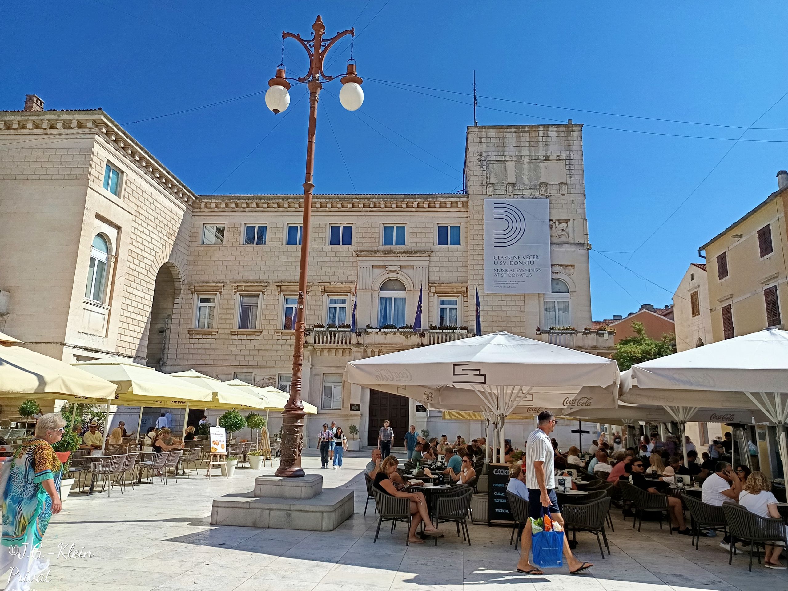 Um der Hitze zu entgehen fahren wir bereits um kurz nach 8 Uhr mit dem Shuttle Bus der Reederei in die Stadt. Die Haltestelle liegt in unmittelbarer Nähe zur Meeresorgel und perfekt für einen Bummel an der Promenade entlang und durch die Altstadt zurück.
