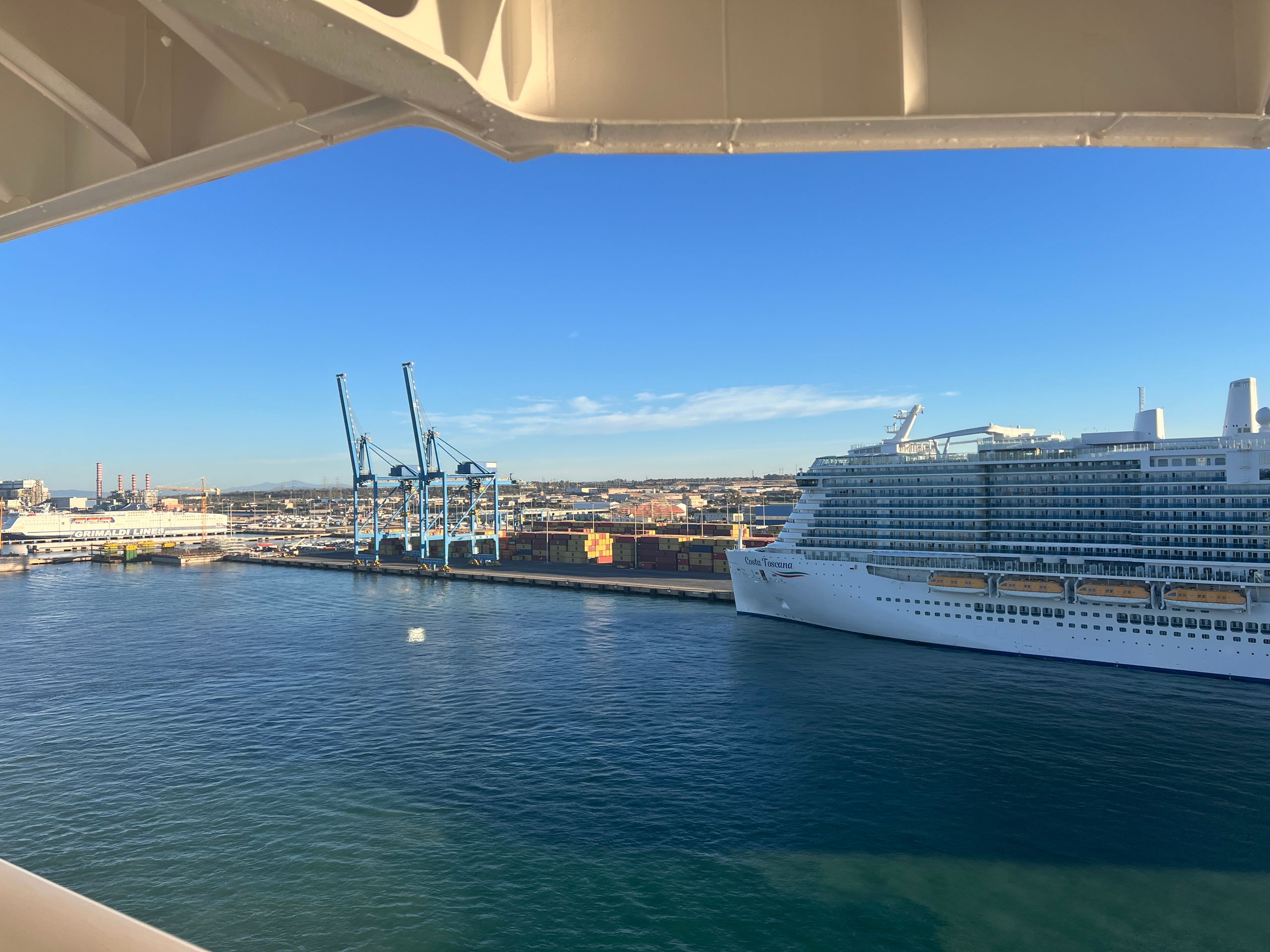 Heute haben wir es ruhig angehen lassen, keinen wirklichen Plan. Wir wollten definitiv nicht nach Rom, hatten keine Lust hier ewig im Bus Zeit zu bringen und vorallem auch nicht zu diesen vielen Menschen. Also haben wir einen Spaziergang durch civvitavechia gemacht. Erstmal mussten wir aber mit dem Bus zum hafenterminal rausfahren, was doch einige Zeit in Anspruch genommen hat. Außer uns stehen auch noch viele andere Schiffe im Hafen. Es war also gut gefüllt.