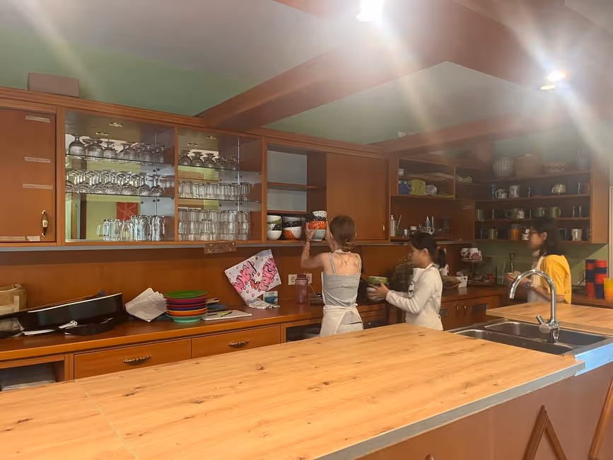 At first we woke up with music like the other days. Then we made the morning circle. Next we had breakfast. It was a smoothie bowl. After that Sky gave us an interesting presentation about the beautiful countries where she lived. The countries were New Zealand, the Netherlands and Sweden. Then we had a little break. That‘s very cool because breaks are very nice. Next we practiced our theater in our small language groups. By the way we cooked the lunch for today. The lunch was very delicious there was a pumpkin soup with grilled cheese. I really liked the food. It was very fantastic and funny to cook.