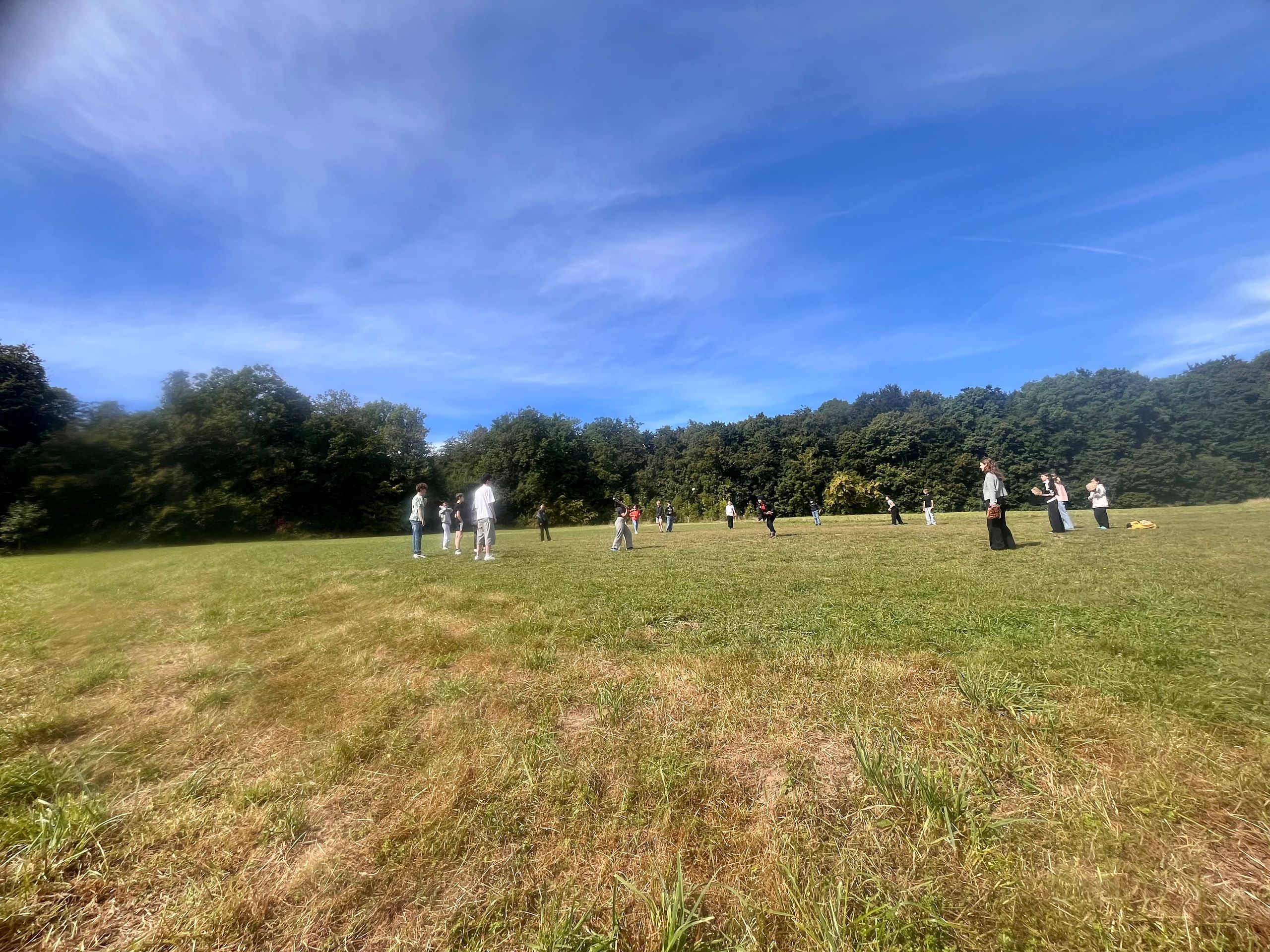 At first we had our dancing project. It‘s very amazing and funny. Our dance is very fantastic. After that we had a little break with berry crumble. It was delicious. Then we were in our small language groups and practiced our theater. Next we played baseball. It was a little bit tricky. Our evening circle was next. Then we had burritos for dinner. By the way they were very delicious. Next we had a break for a shower. Today in the evening we had a movie night. We watched the movie Increbible. By the way we played cricket after baseball. I find it cool that we played cricket and not baseball.