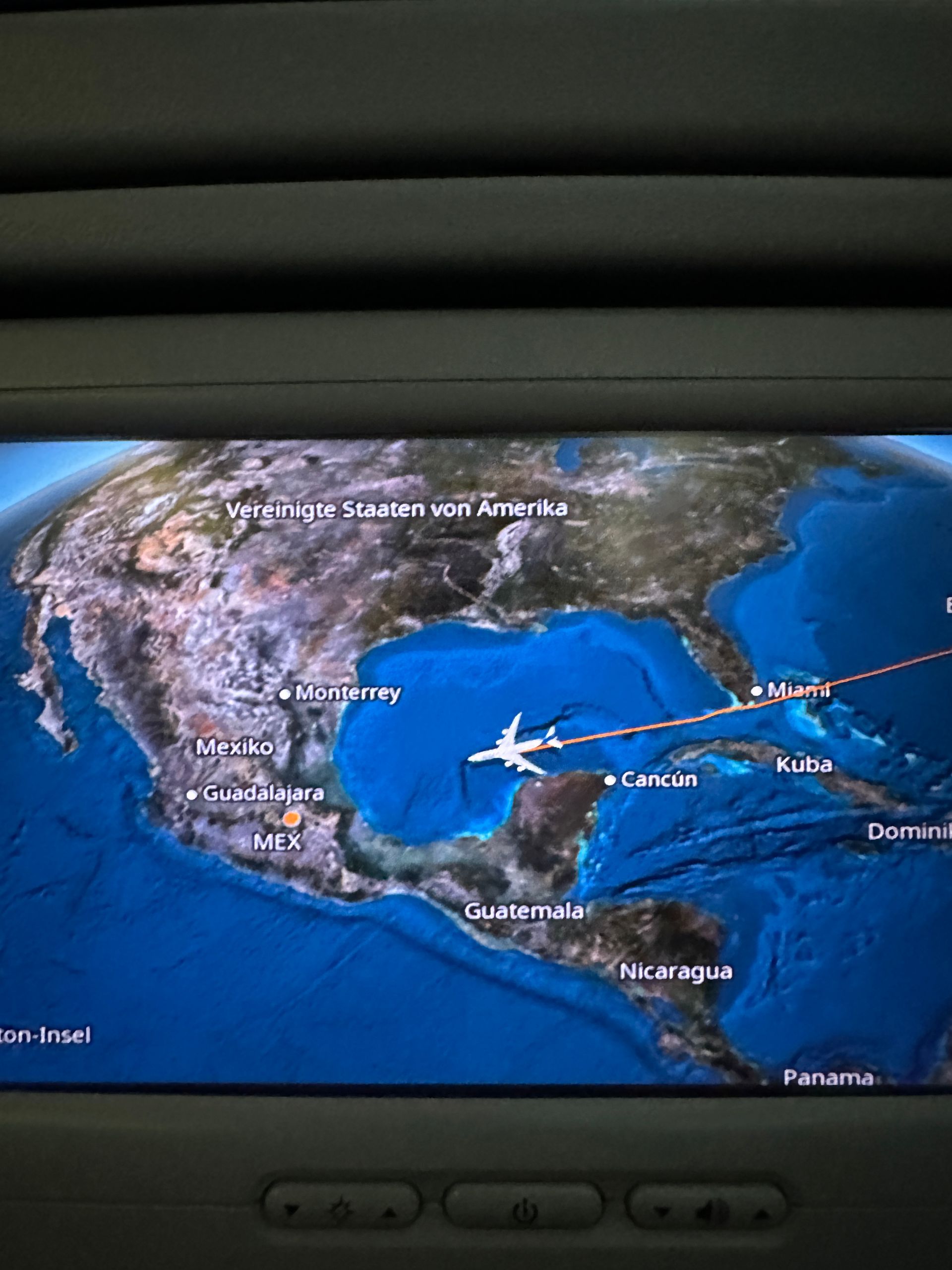 Ich sitze leider auf einem Mittelplatz, aber meine Mitreisenden sind sympathisch. Eine Karikatur: ein sehr reservierter Deutscher zu meiner Rechten, der sich dafür entschuldigt, zu lang die Steckdose genutzt zu haben. Zu meiner Linken eine Mexikanerin, die sich stündlich bekreuzigt und mir viel über Mexiko erzählt, auf Spanisch auch und ich bin erleichtert, ein Gespräch führen zu können!