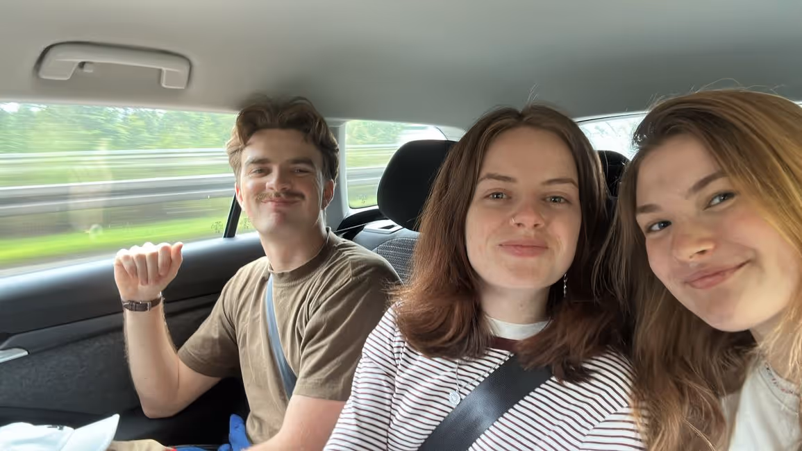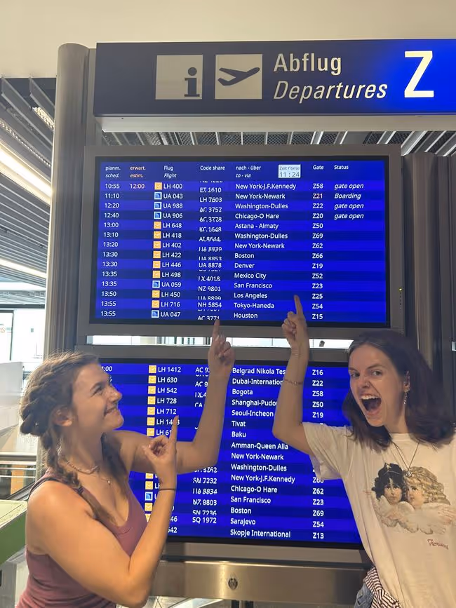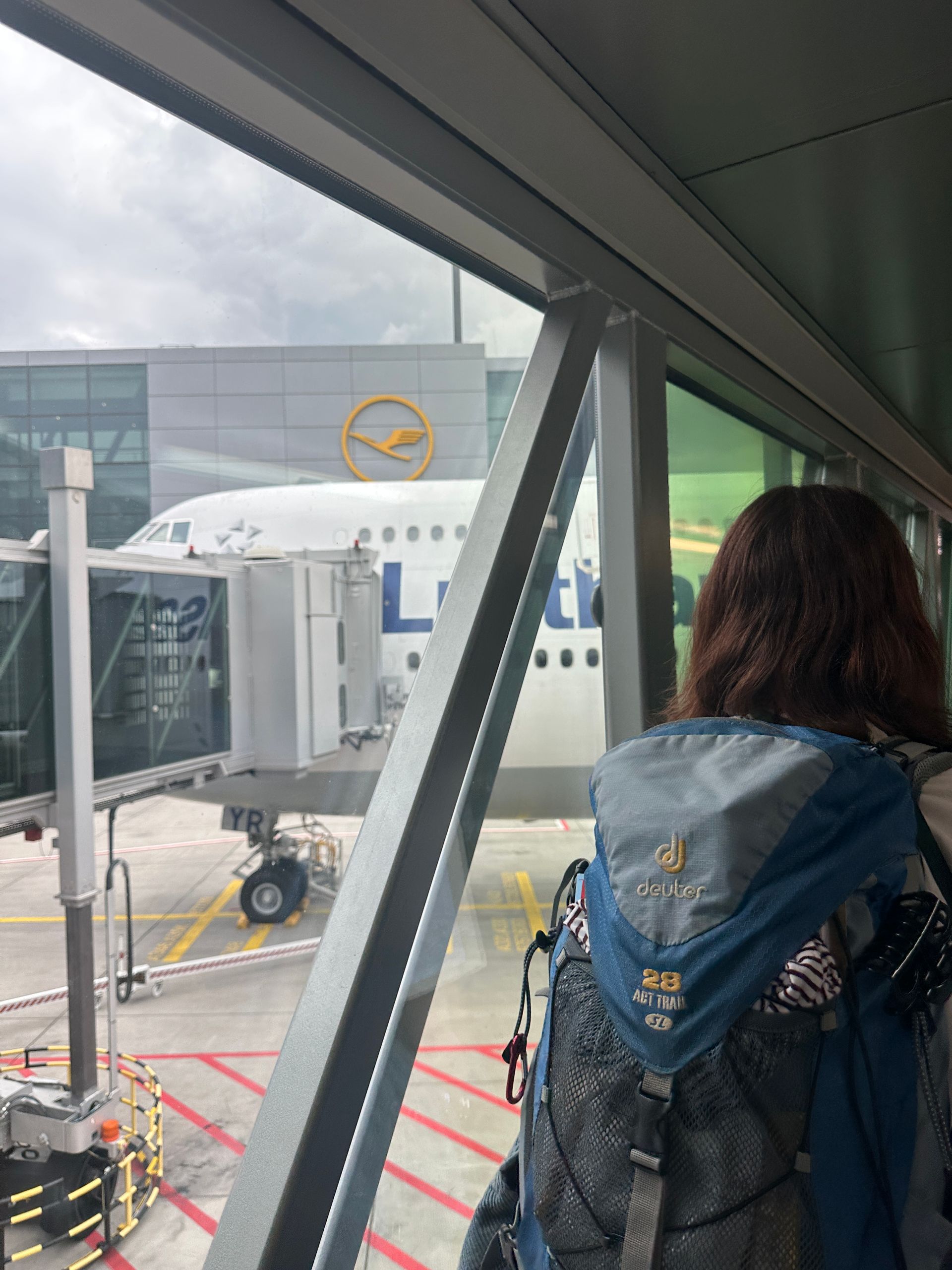 Alle in schwarz und mit starker Polizeipräsenz und dann mein roter Koffer und ich machen wir uns auf den Weg nach Hohenstein-Ernstthal, wo ich kurz nach 7 Uhr von Paula, meiner Kommilitonin und Freundin, und ihrer Familie abgeholt werde. Wir fahren sage und schreibe 3 Stunden!! Oder vielleicht 3,5h, ich schlaf die ganze Zeit, auf jeden Fall so, dass wir schon vor 11 am Flughafen Frankfurt ankommen. Dort geht auch alles super schnell: mein Koffer wiegt 22,4 Kilo, meine Nagelschere wird nicht entdeckt, meine Drogen im Bauch und Sprengstoff in der Bauchtasche auch nicht, und dann sind wir schon eingecheckt und am Gate. Da treffen wir auch Xaver und Lydia, die mit uns reisen.
