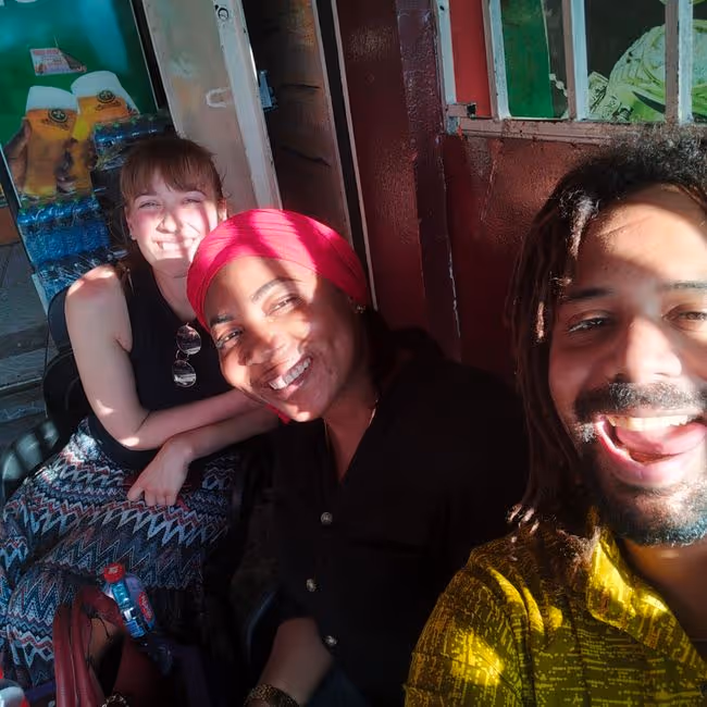 Aminu war vorher schon ein paar Mal da, Maxie betritt nun zum ersten Mal ghanaischen Boden. Es ist heiß und schwül - aber nach dem kalten norddeutschen Oktober ist das ganz famos!