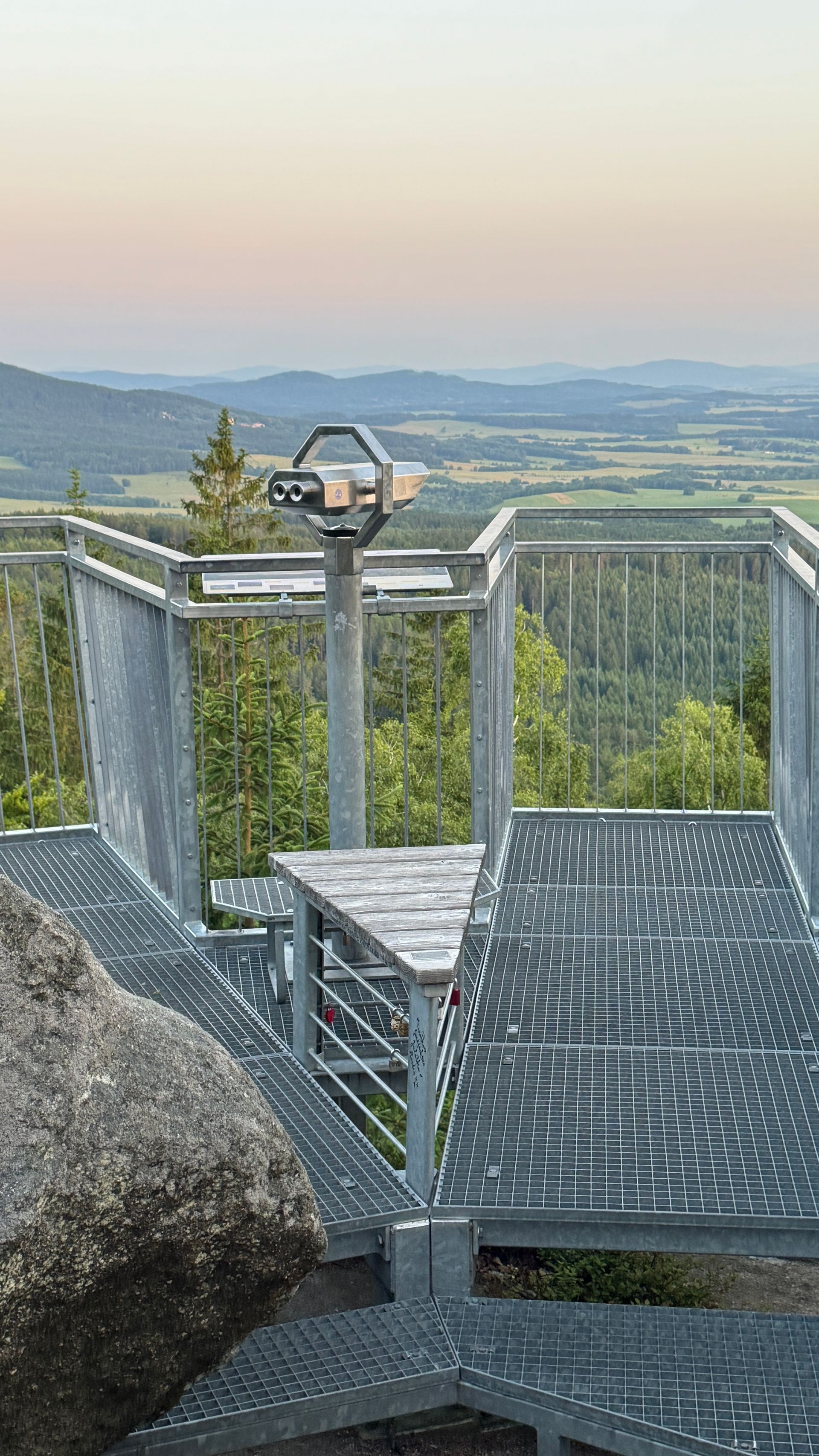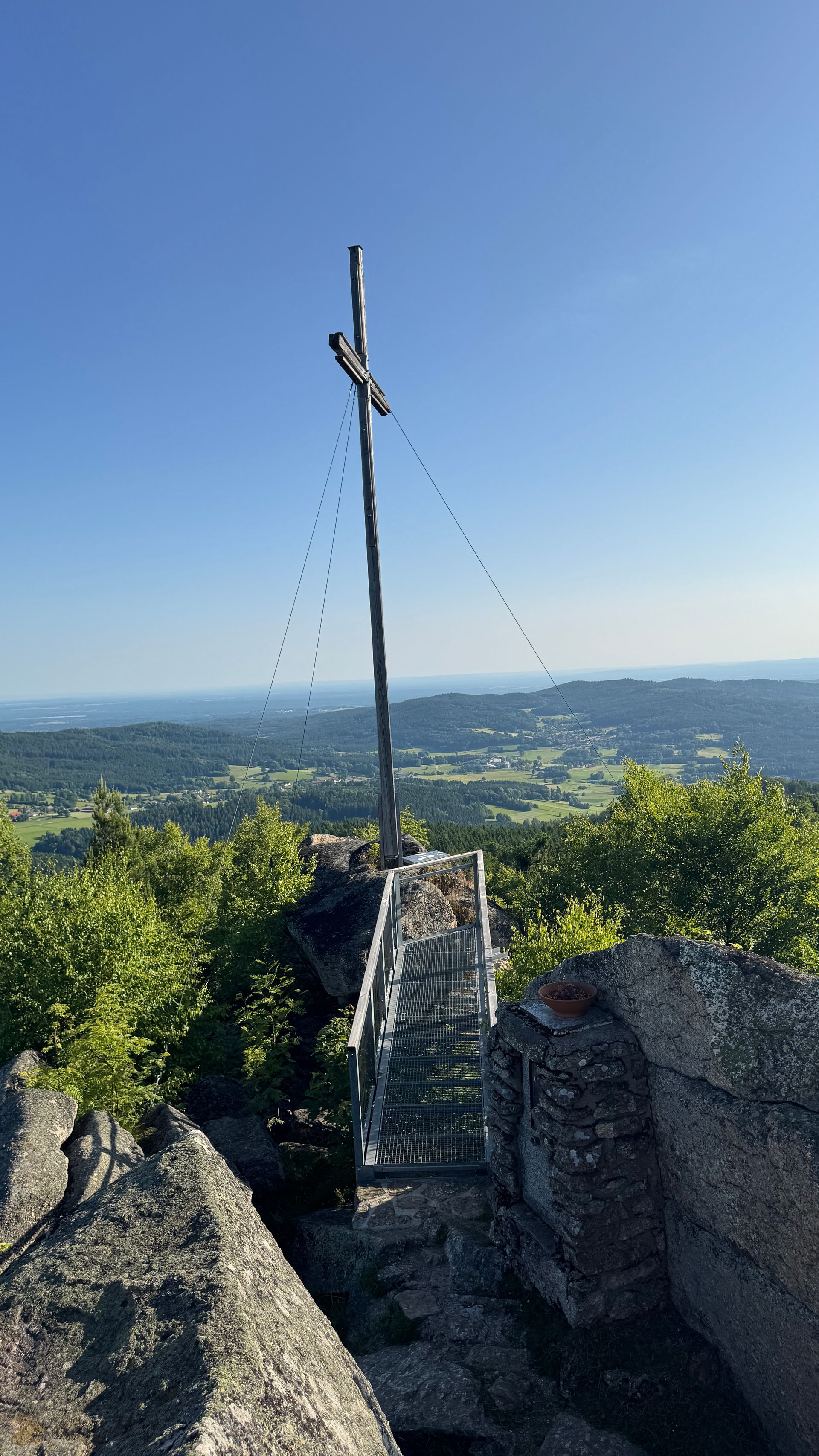 Der Weg führte weiter nach Harbach, vorbei am märchenhaften Märchenhotel, und dann hinauf zum Nebelstein. Oben angekommen: kurze Verschnaufpause, Aussicht genießen, dann ging es bergab nach Maißen, durch Althütten und weiter nach Harmanschlag.