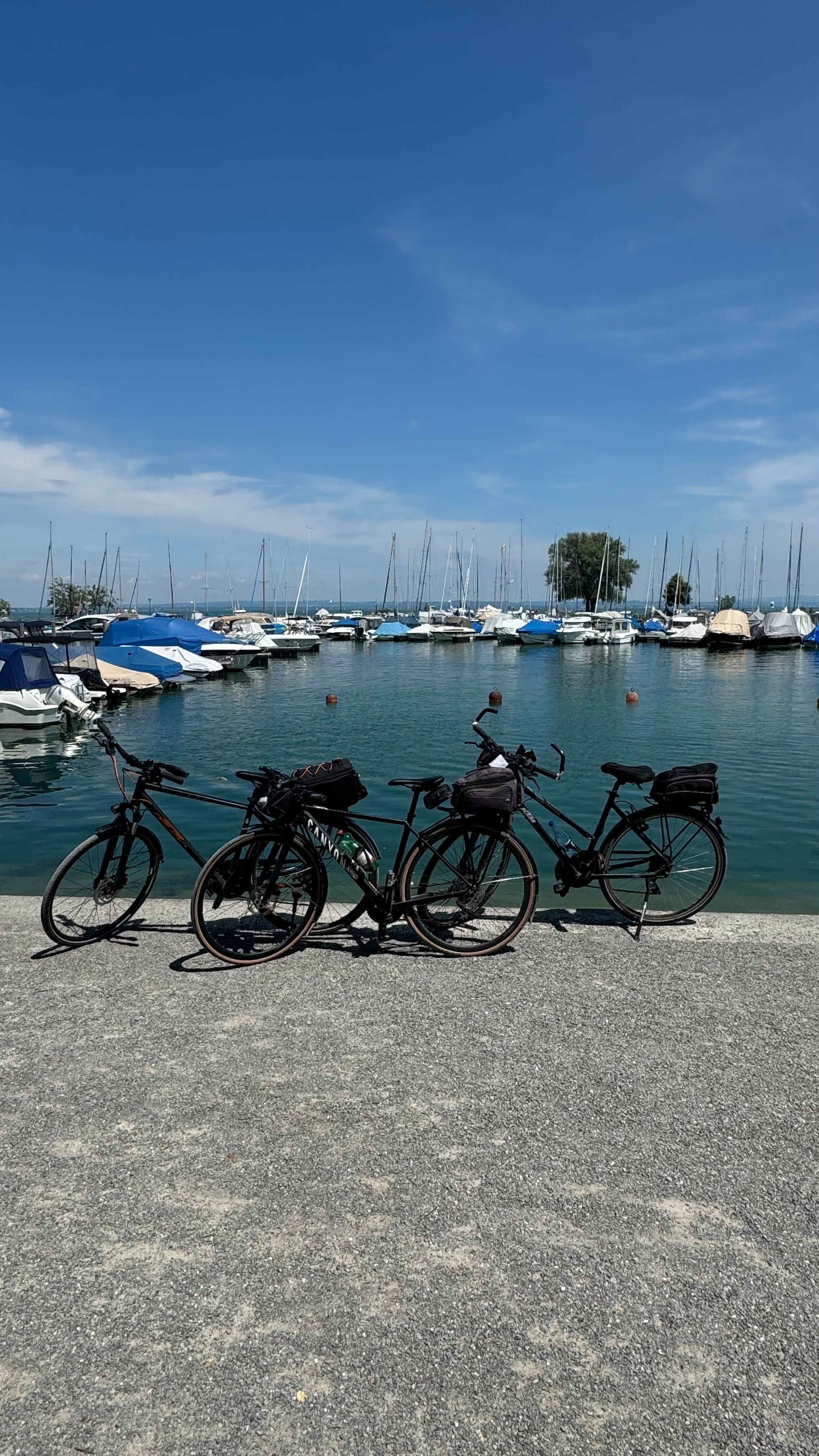 Heute war sportlich einiges geboten: Von Dingelsdorf ging es über Liggeringen und Ludwigshafen bis nach Überlingen, dann weiter Richtung Meersburg, Fischbach und Friedrichshafen. Dort wechselten wir aufs Schiff und genossen die entspannte Fahrt zurück nach Konstanz. Von dort aus radelten wir über Egg zurück nach Dingelsdorf. Doch der Tag war noch nicht zu Ende – wir fuhren noch weiter mit dem Auto zum nächsten Stellplatz in Fußach.