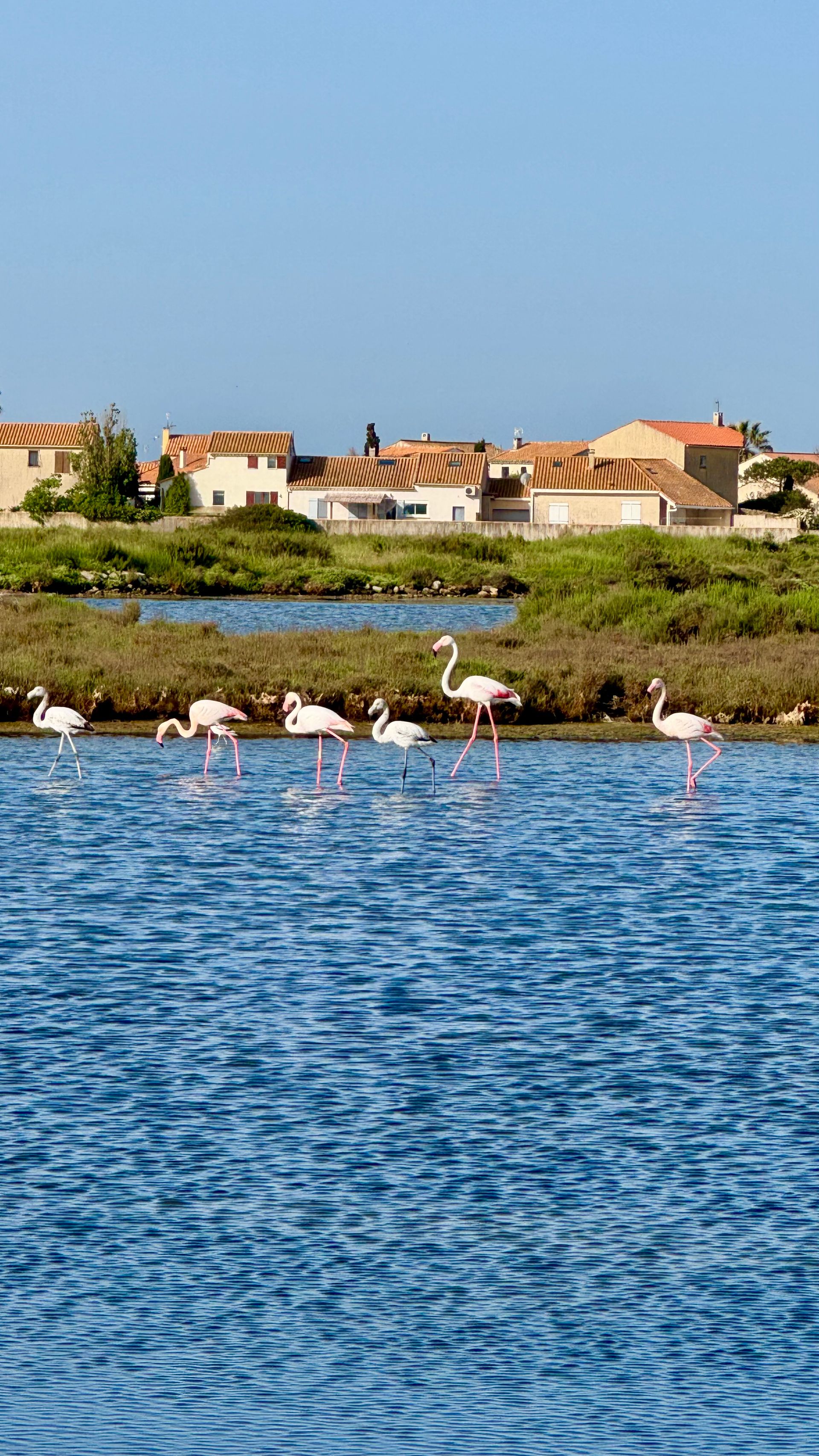 Bevor wir losfuhren, hielten wir noch ein kleines Versprechen ein: Wir machten Fotos von den Flamingos, die uns in den letzten Tagen so fasziniert haben. Ein schöner Abschiedsmoment, bevor es weiterging.