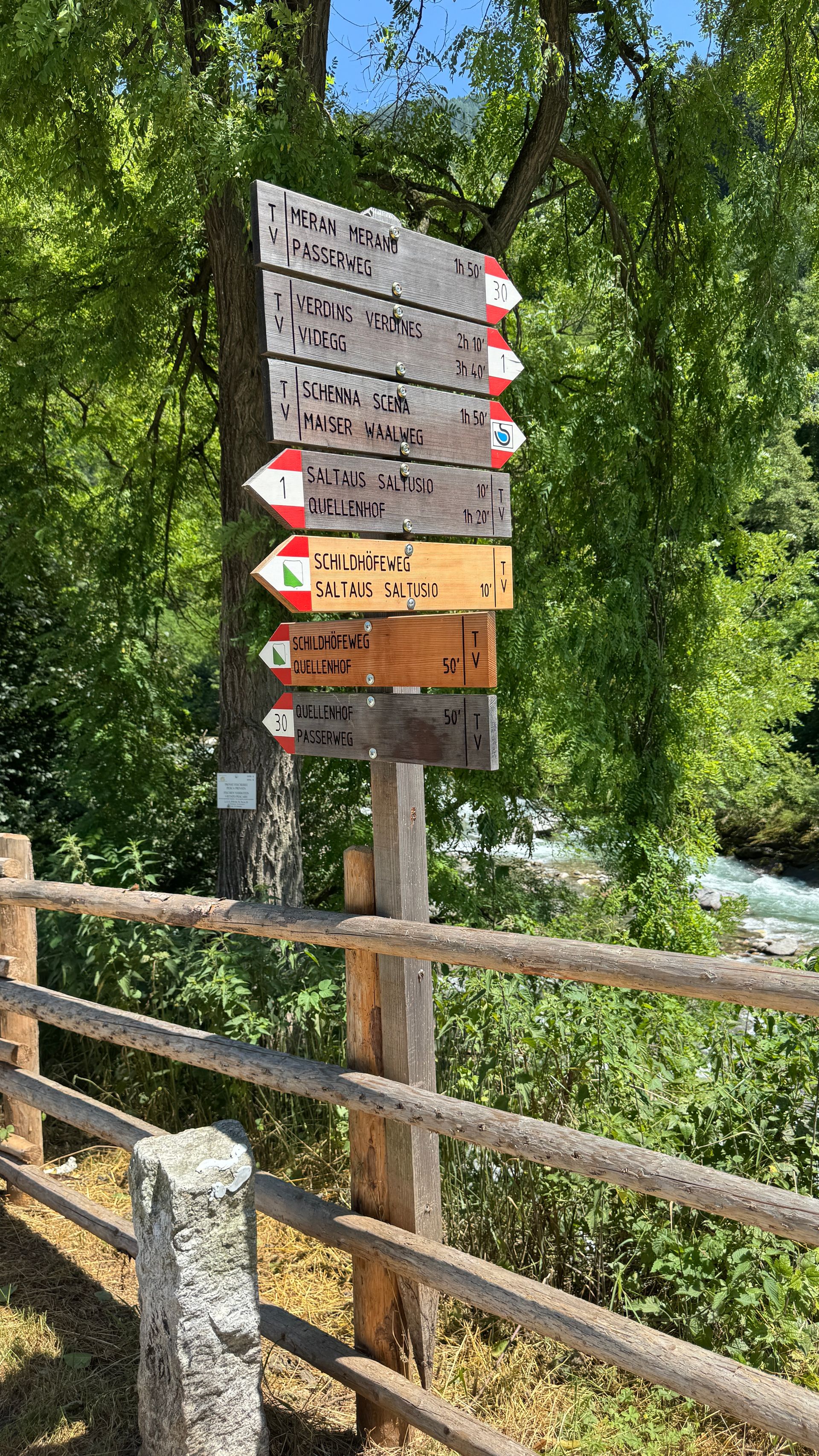In Saltaus am Campingplatz + Radlerstop machten wir eine kurze Pause, um ein Mineral zu trinken und kurz durchzuatmen. Danach ging es hinein ins Passeiertal, das mit seiner Bergkulisse und den kleinen Ortschaften wie Riffian, Kuens und St. Martin in Passeier einfach beeindruckt. Die Landschaft wurde alpiner, die Steigungen spürbarer – aber die Ausblicke entschädigten alles.