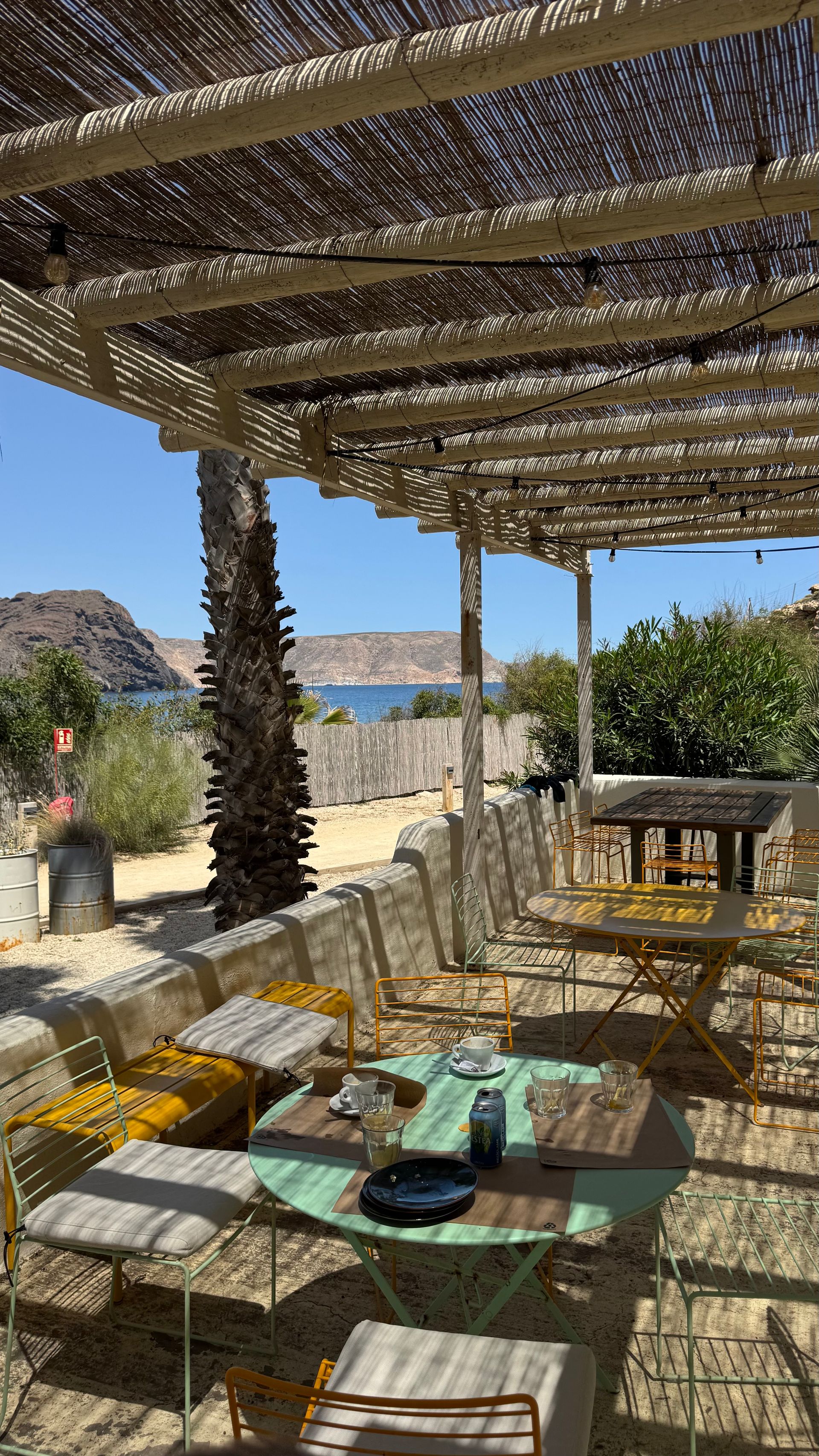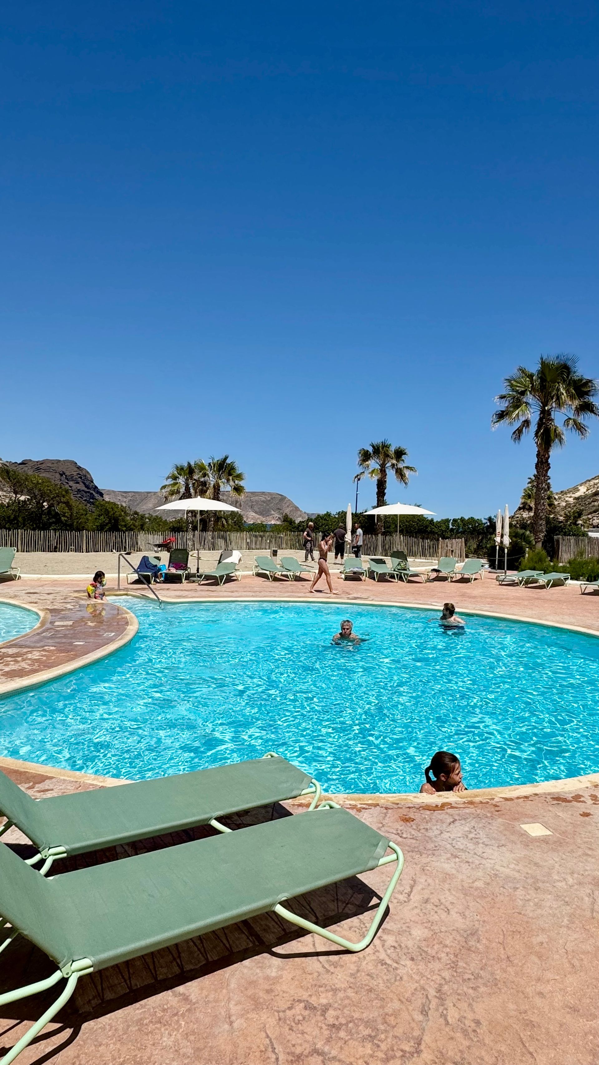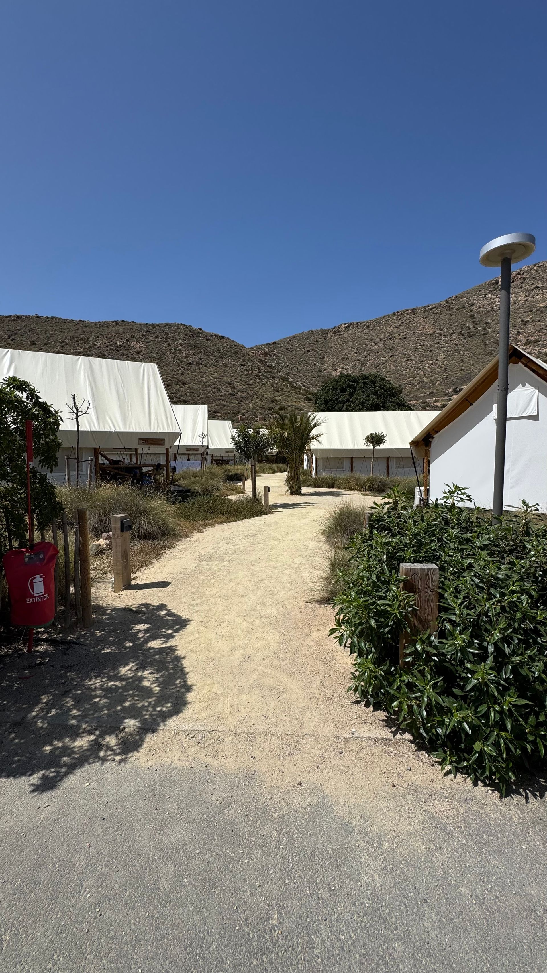 Unser Ziel: Wecamp Cabo de Gata – ein echter Glücksgriff! Der Campingplatz liegt traumhaft mit Blick aufs Meer, bietet einen stylischen Pool, ein gemütliches Café und alles, was das Camperherz begehrt. Hier lässt es sich gut leben!