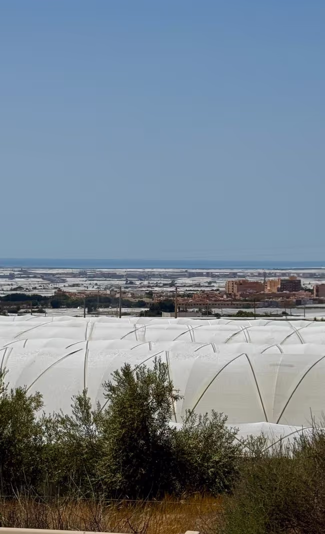 Nach einem ausgiebigen Frühstück ging’s heute weiter in Richtung Almería – vorbei an endlosen Gewächshäusern, die nicht umsonst als „Gemüsegarten Europas“ bekannt sind. Ein Anblick, der uns staunen ließ: Soweit das Auge reicht, glitzern die weißen Folien in der Sonne – beeindruckend, was hier alles wächst und gedeiht!