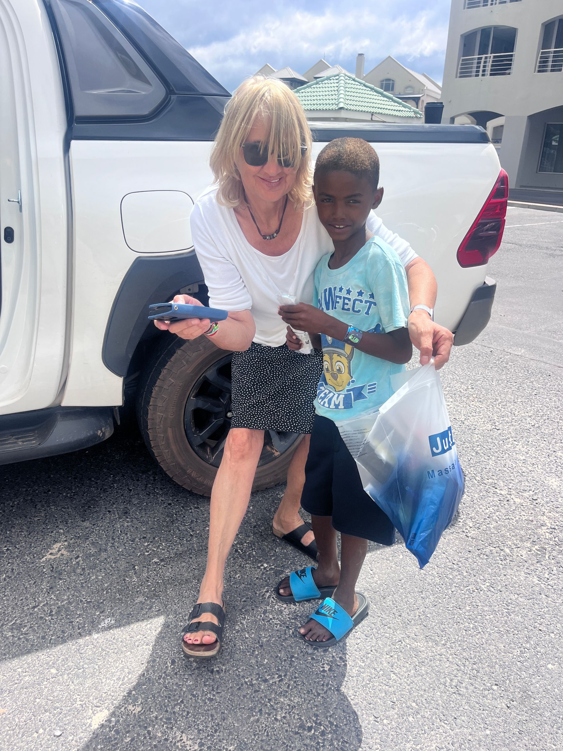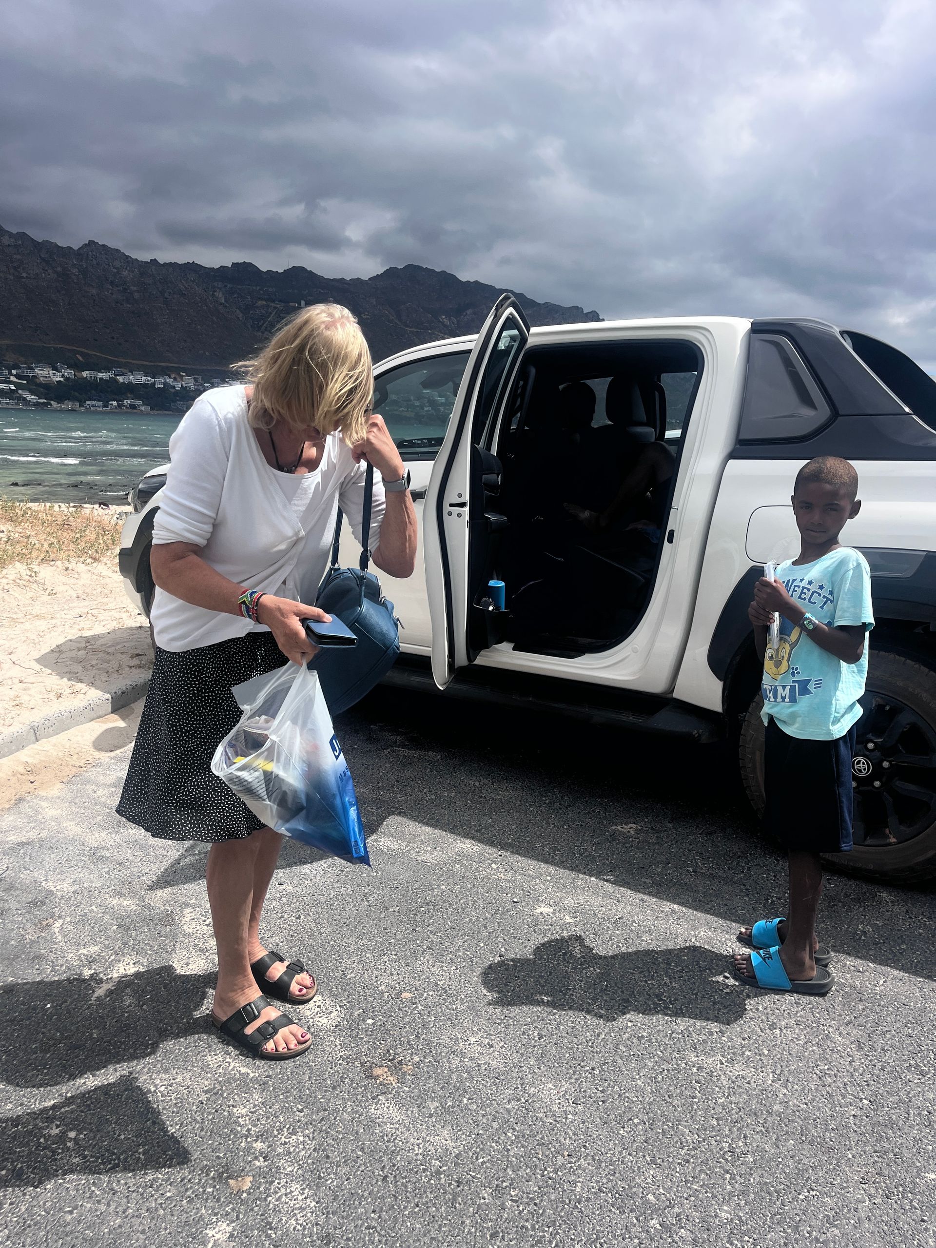 Am letzten Tag kam mir dann ein kleiner Bub in Gordons Bay wie gerufen. Ich gab ihm gleich das ganze Sackerl und bat ihn, die Geschenke an die anderen Kinder zu verteilen. Er freute sich riesig – ein Moment, der mir besonders in Erinnerung bleiben wird (Foto).