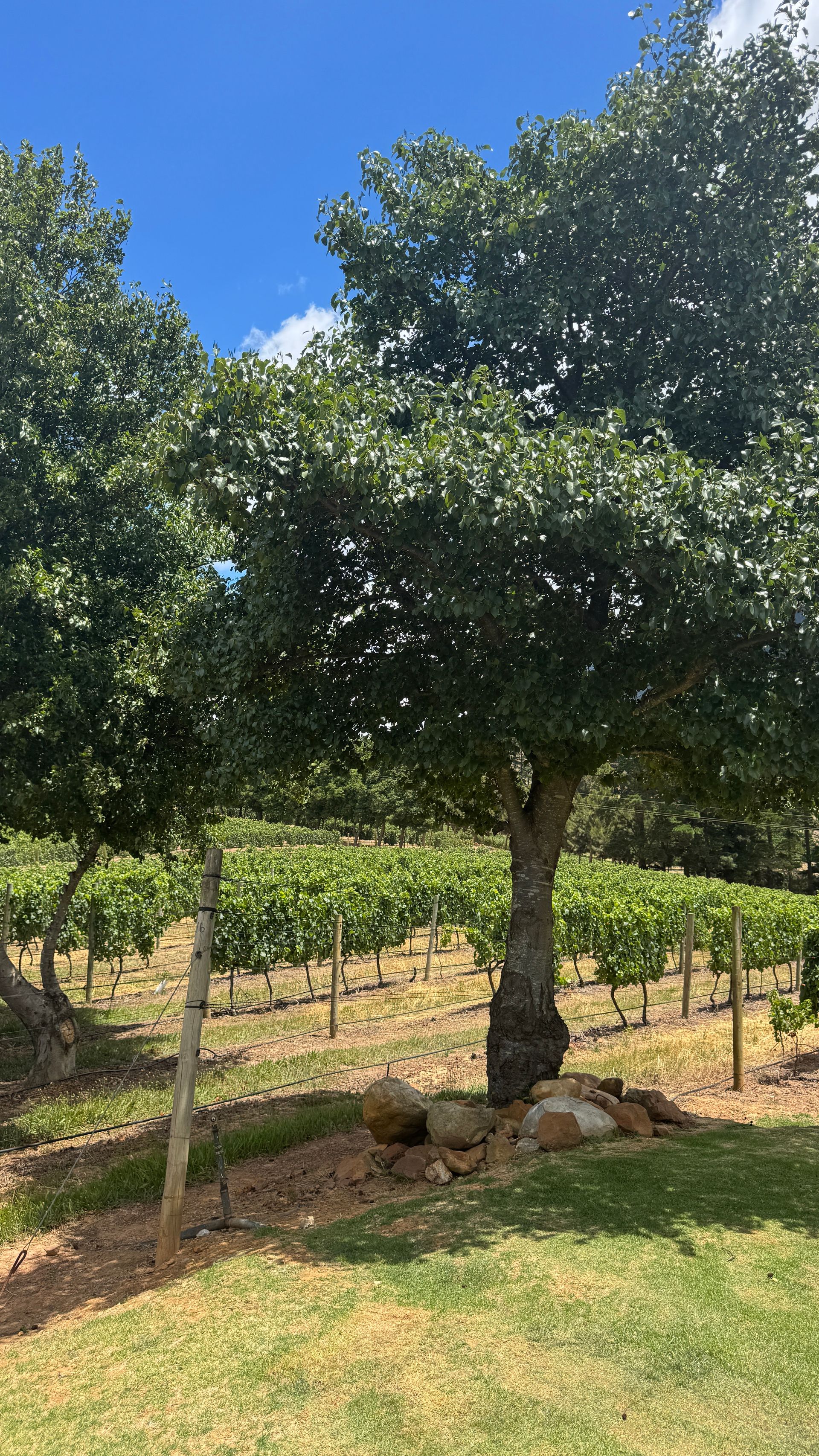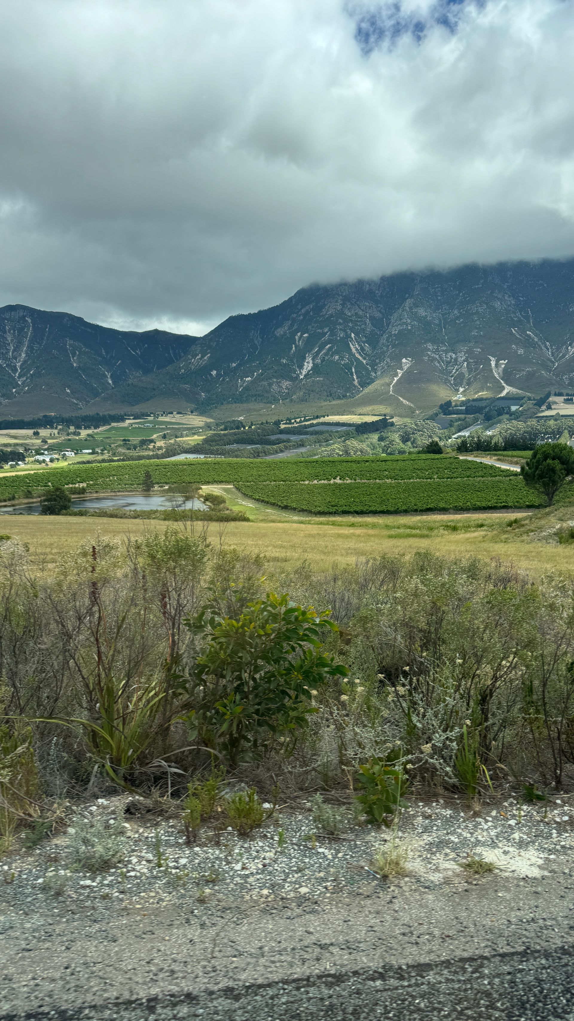 Heute ging es von der Küste in Hermanus, in die Weinregion rund um Hermanus. Eine wunderschöne, hügelige Landschaft, Weite, Grün, Weinreben – sieht man auf den Fotos gut.