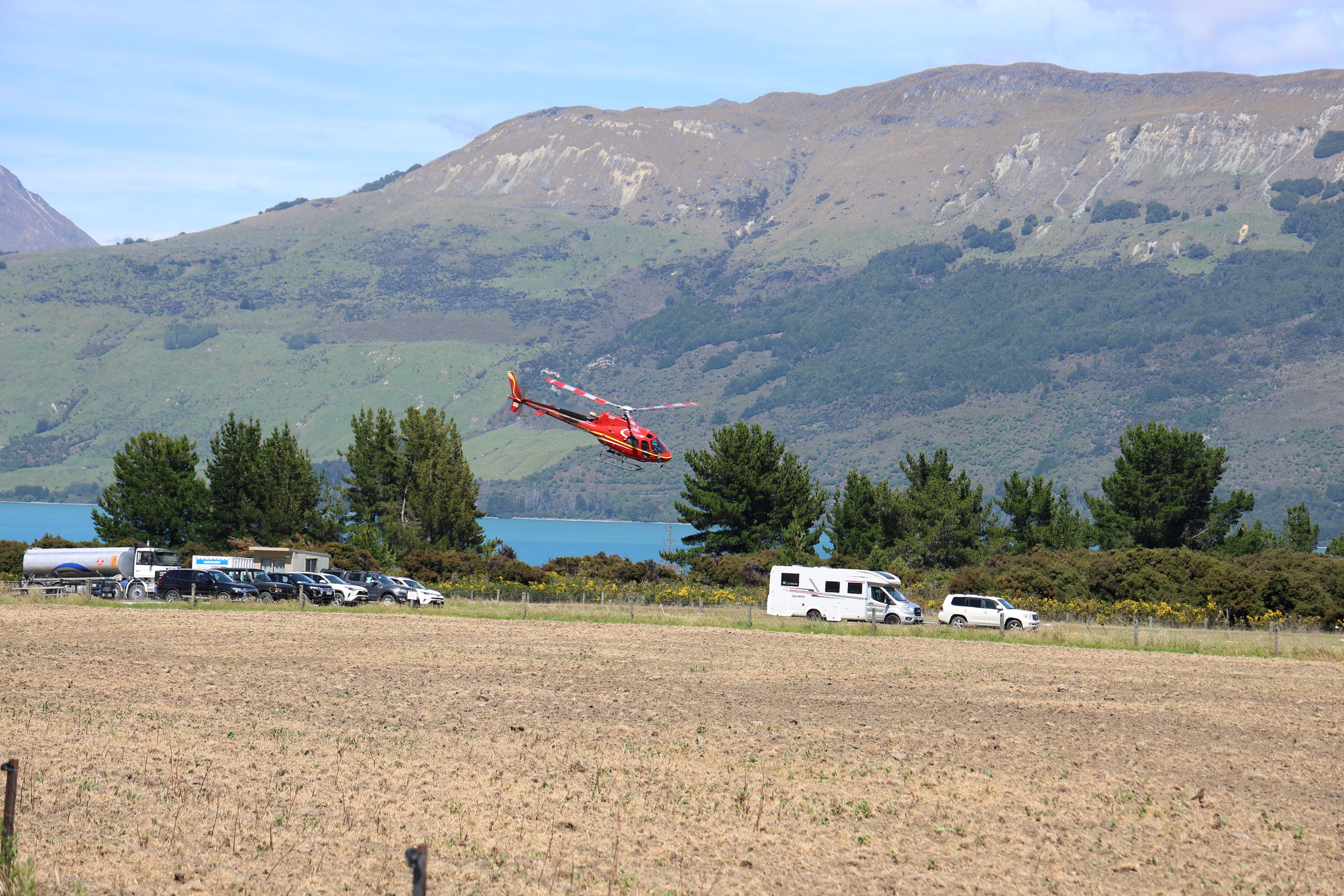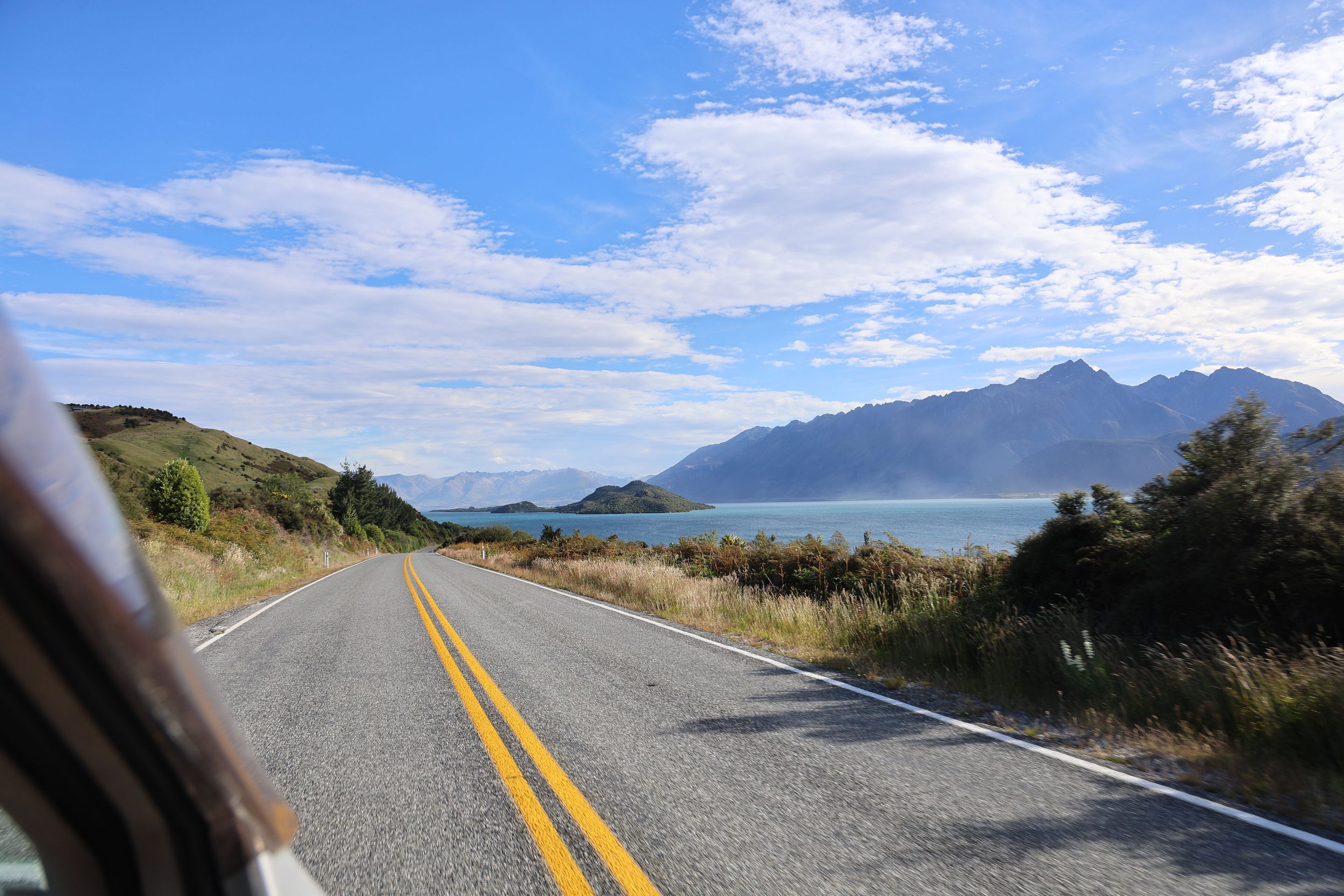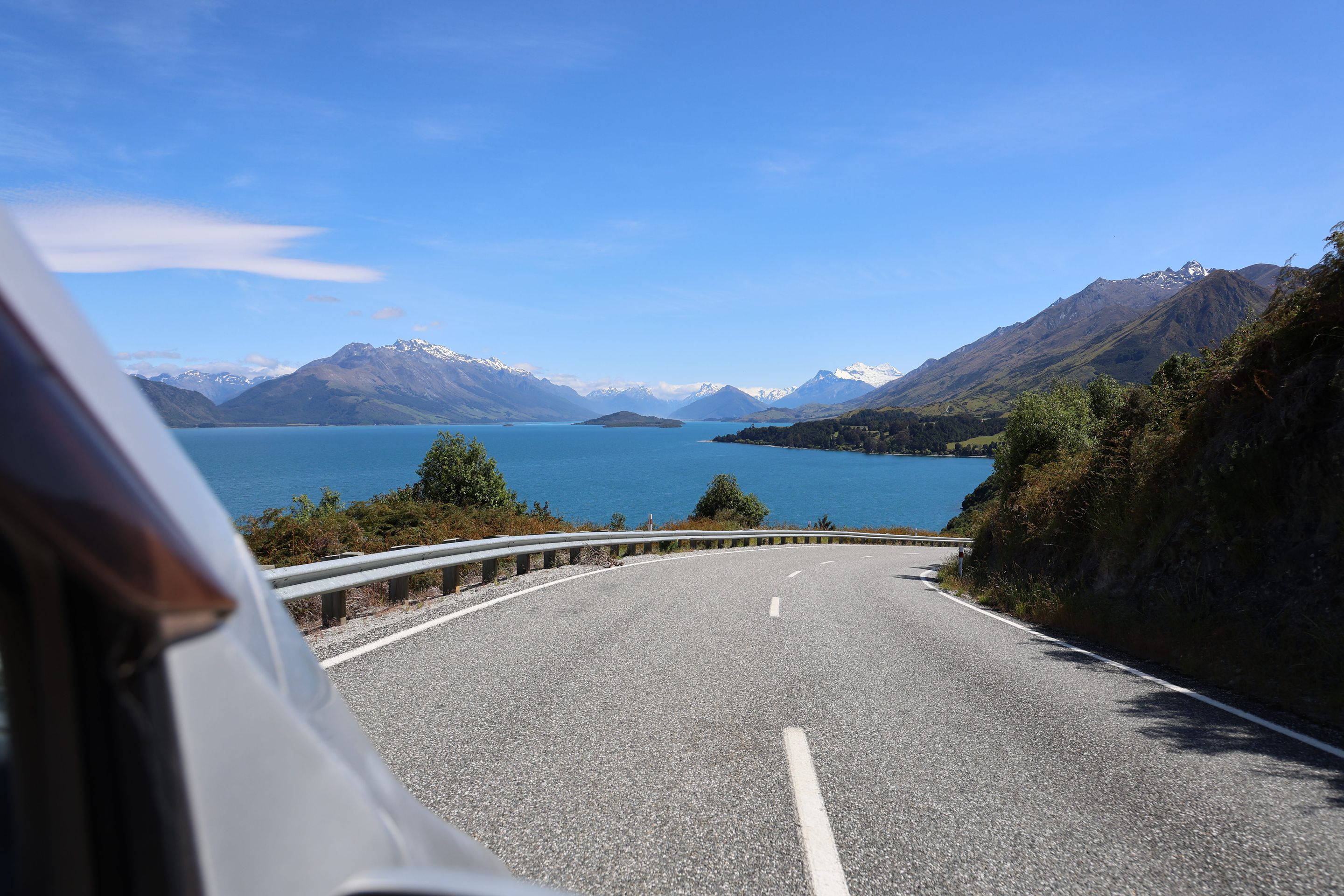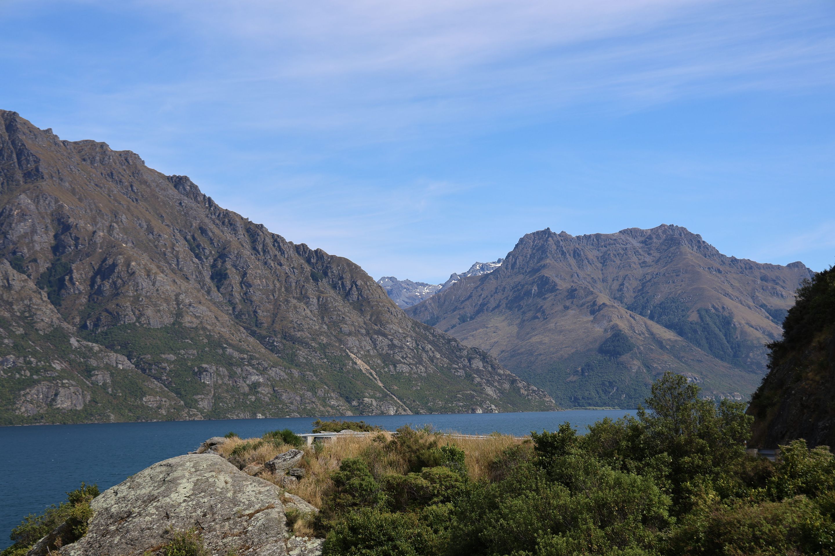 Nach einem kurzen Kaffee mache ich mich auf den Rückweg nach Queenstown auf, werde dann am Ufer des Wakatipu bleiben und zum nordöstlichen Bereich nach Glenorchy fahren, dort möchte ich mir Drehorte der Her der Ringe Triologie ansehen. Der wie ein abgebrochener Bumerang geformte Lake ist schnell erreicht, jetzt folge ich dem östliche Seeufer bis Queenstown, dann durchs Zentrum weiter nach Westen. Kurz vor Glenorchy passiere ich einen Heliport, die Flugverbindung von hier nach Milford Sound dauert 15 min, zu Fuß legt man den 35km Track in 2 Tagen zurück, ich bin jetzt 350 km außenrum gefahren...Hinter dem Ort beginnen die 15km Gavel Road nach Paradise, hier wurden Teile der Herr der Ringe - Filme gedreht (Stichwort Lothlorien, Isengard, Die zwei Türme).