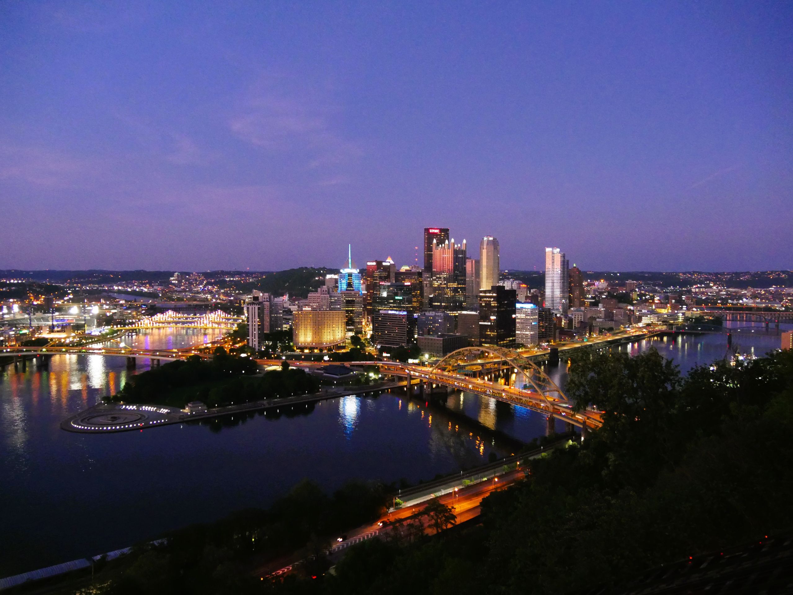 Sonnenuntergang mit Sicht auf Pittsburgh vom Mt. Washington