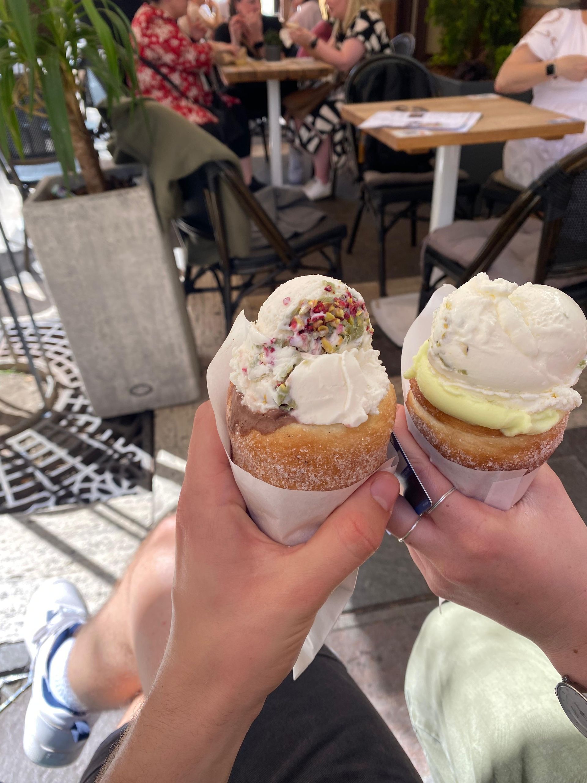 Nach einigem Laufen haben wir uns erstmal ein sehr leckeres Eis geholt, aber ohne Waffel, sondern mit einem chimney cake.