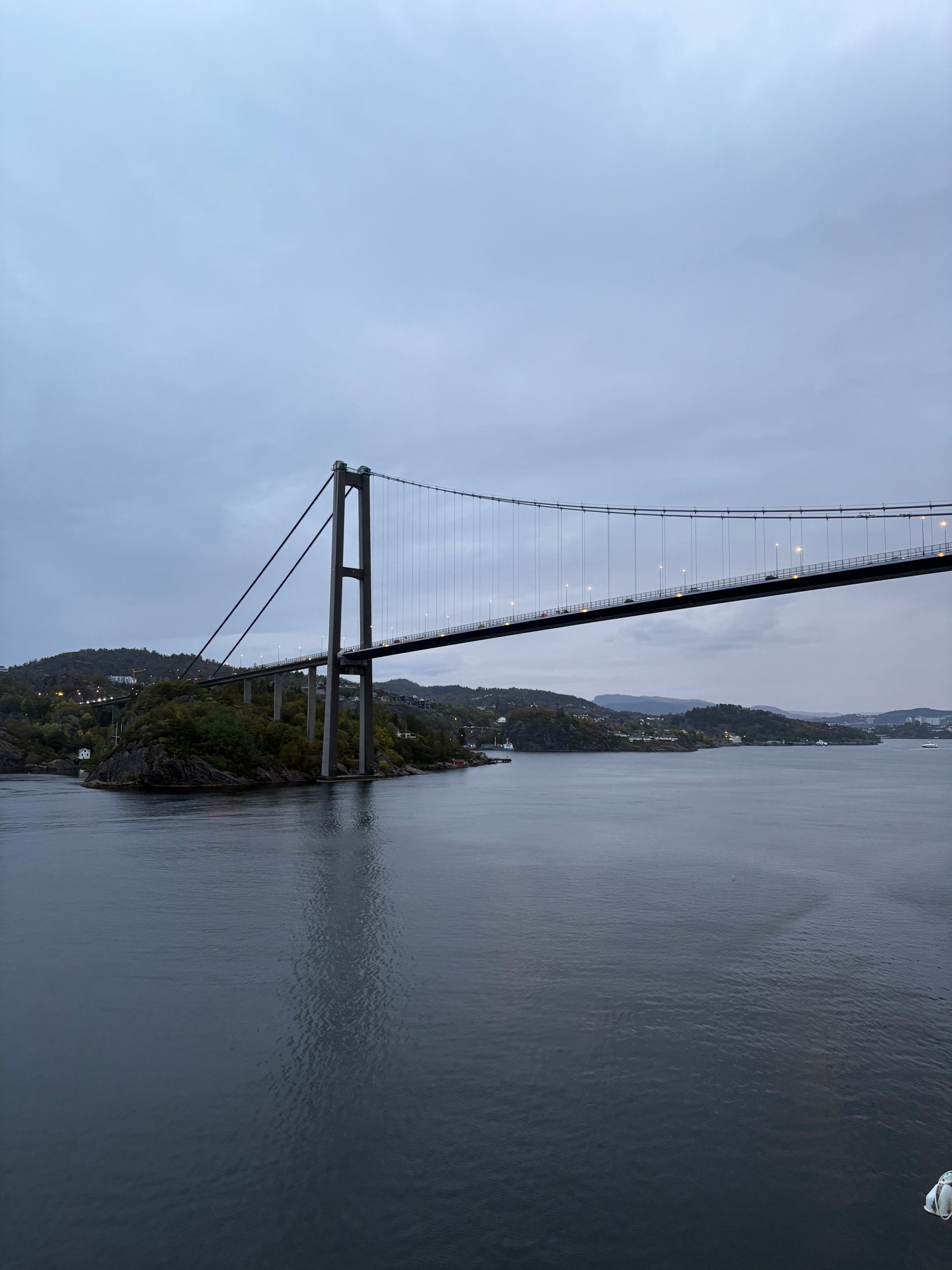Wie der Kapitän in seiner Abendansprache mitteilte, werden wir „kurz vor 8 Uhr“ in Bergen unter der Brücke von Bergen einlaufen. Also habe ich mir den Wecker auf 7:25 Uhr gestellt, setzte mich sogleich auf den Balkon und habe die Einfahrt in den Hafen genossen. Elisa blieb im Bettchen. Schön anzusehen war’s (die Einfahrt, aber Elisa beim Schlafen zuzusehen natürlich auch😁).
