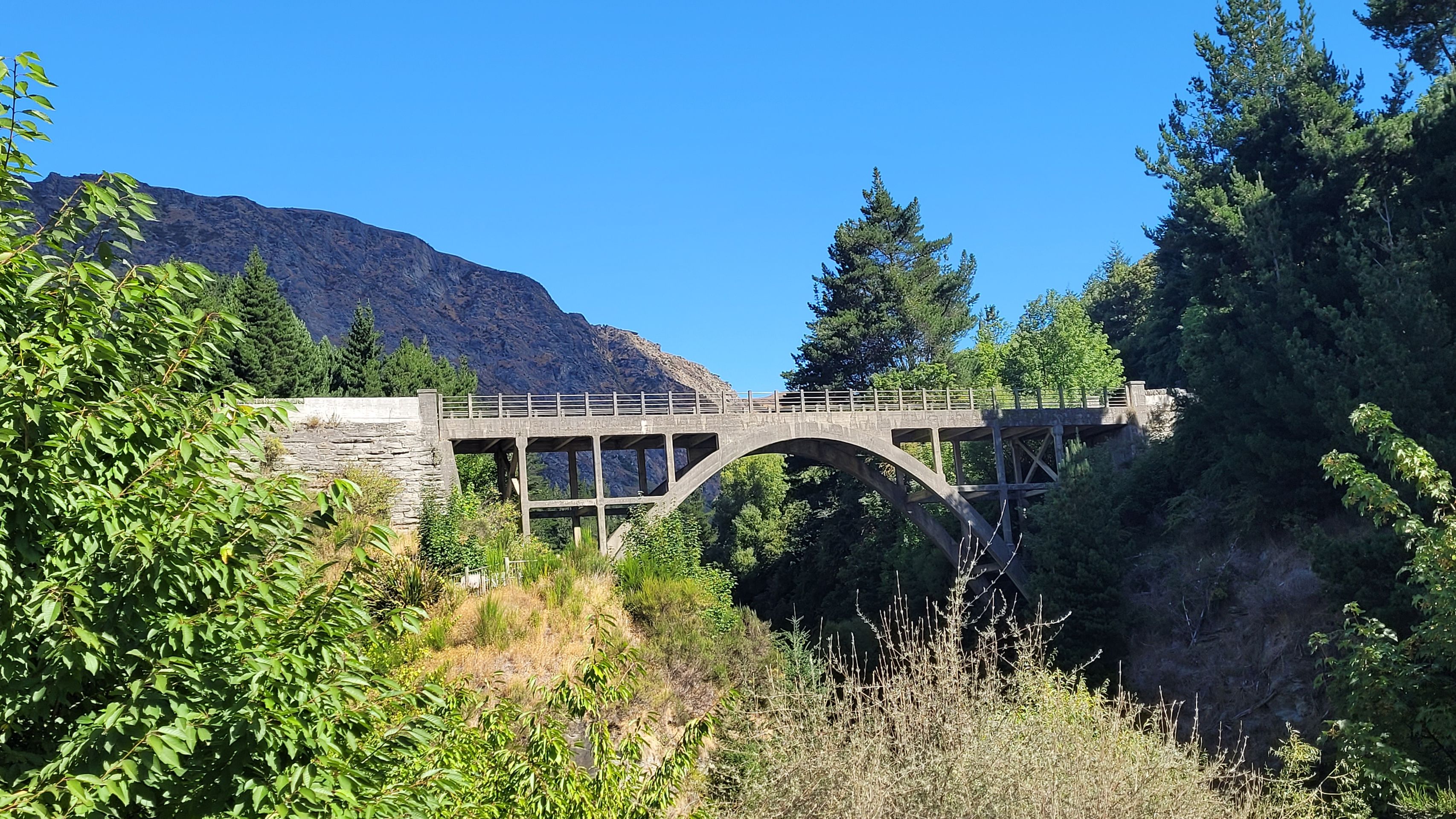 Die Brücke wurde Ende 1880 als wichtige Zufahrtsstraße zu den Goldfeldern von Central Otago fertiggestellt. Der Verkehr wurde 1963 auf eine neue Autobahnbrücke am State Highway 6 verlagert.