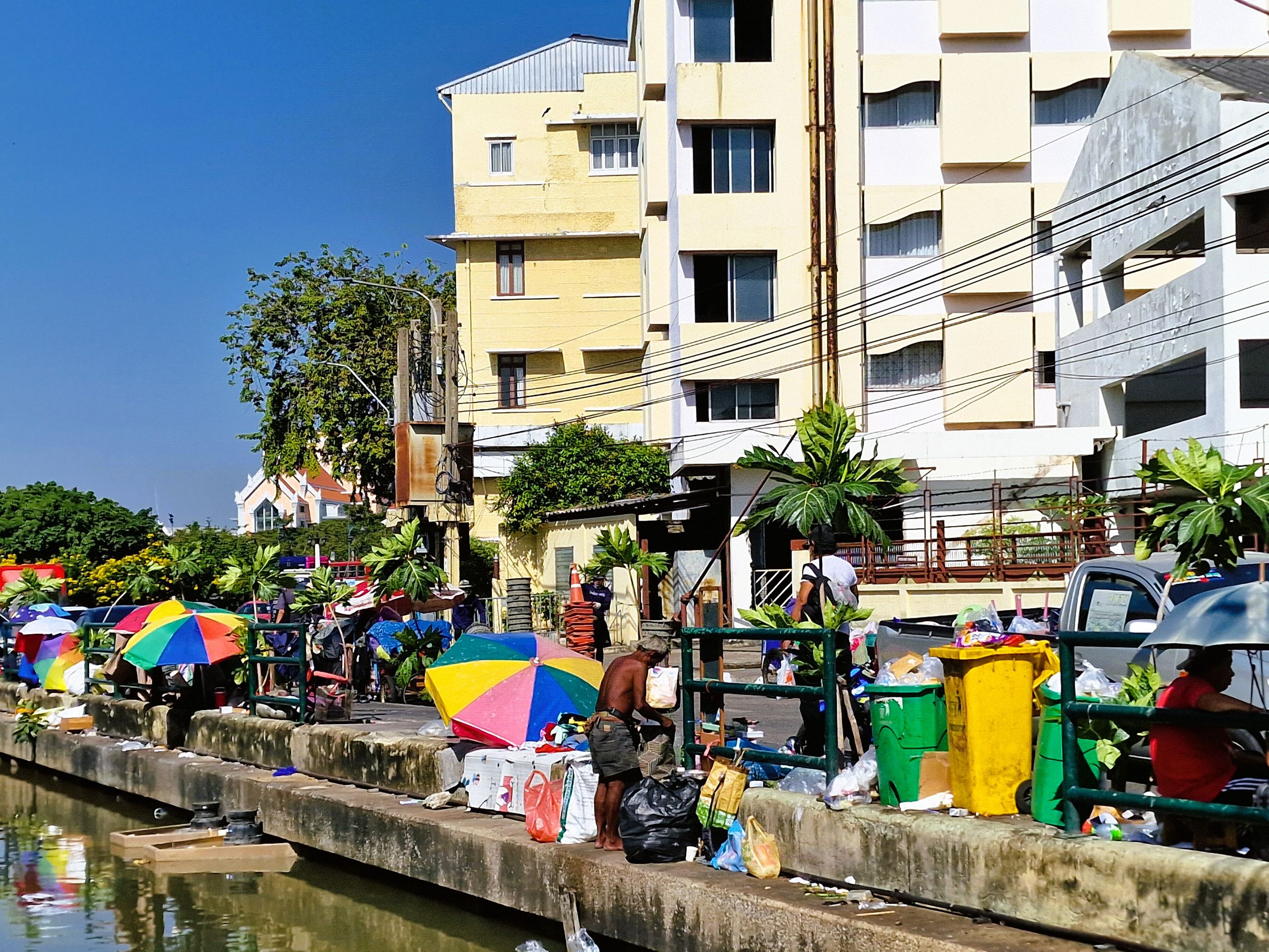 Wie kann das sein? Diese bunte, lebendige, pulsierende Großstadt, wo ist sie? Wir waren vor 10 Jahren das letzte Mal hier und haben ein Hotel in der Gegend gesucht und gefunden, die uns damals so gut gefallen hat. Wegen der vielen kleinen Straßenständen, der offenen Garküchen, des freundlichen, bunten Treibens, friedlich und entspannt. Vom frühen Morgen bis in die Nacht.