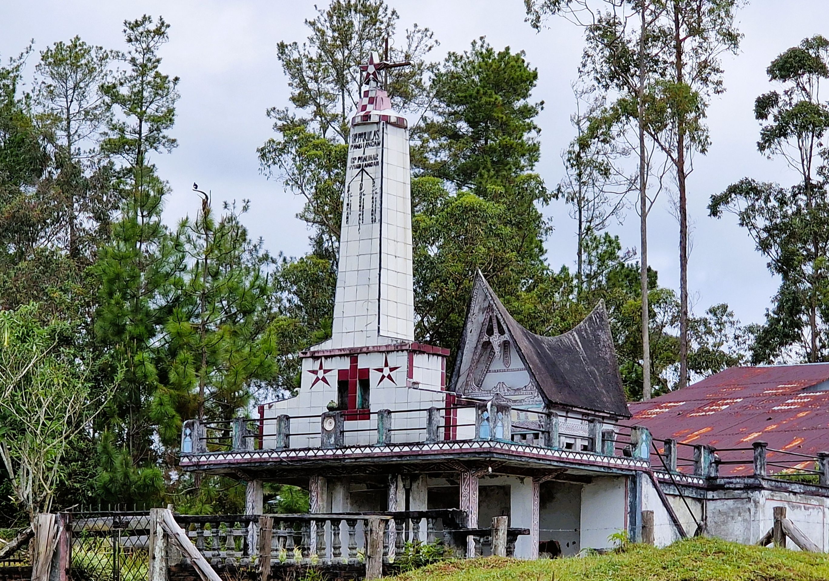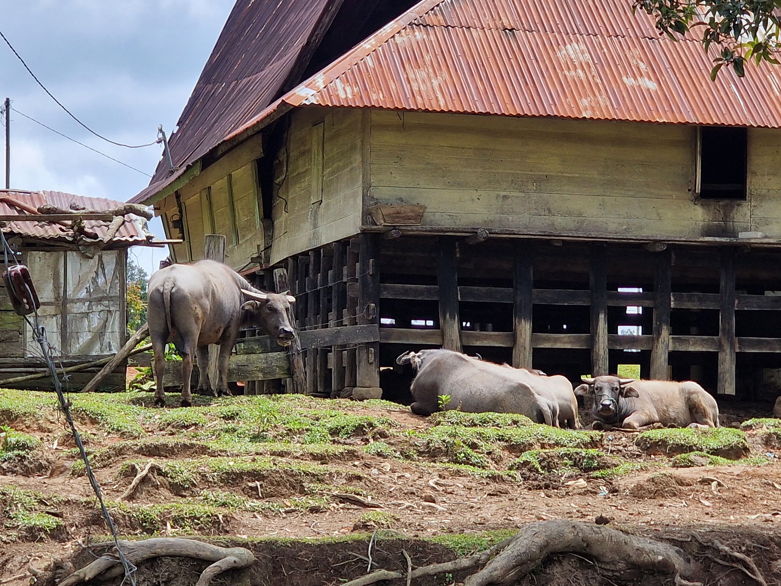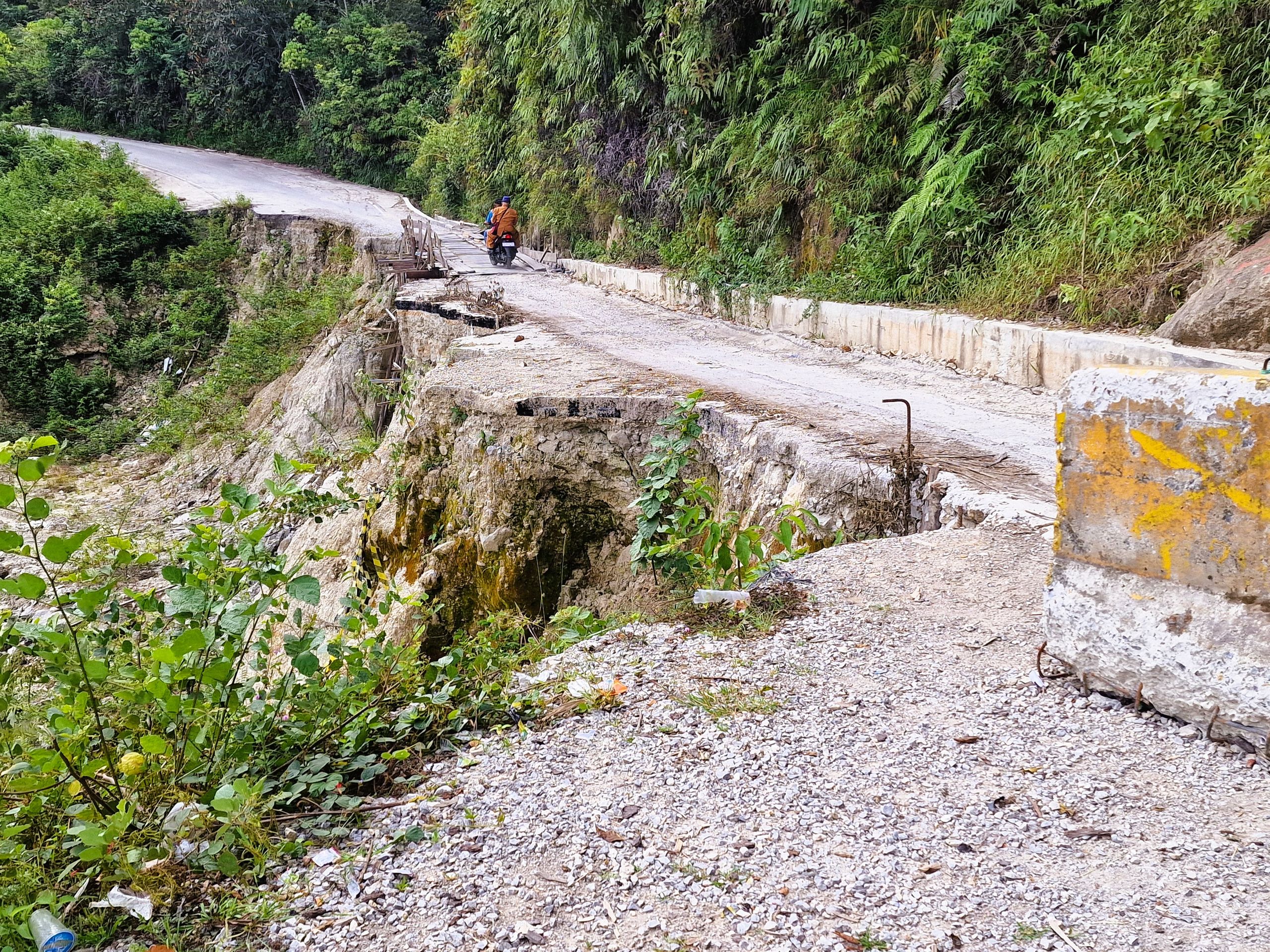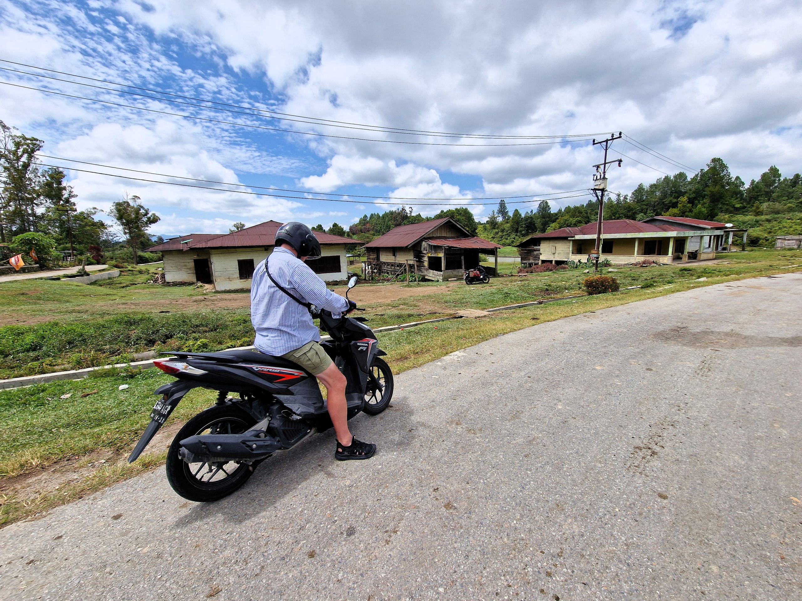 Tagsüber machen wir uns mit dem Moped auf, fahren hoch auf das Plateau von Samosir, der Insel im Tobasee. Die Straße, vor 8 Jahren noch gut, ist zum Teil ab- und an einer Stelle ganz weggebrochen. Mit Brettern ist ein Steg zum Überqueren gezimmert. Schlaglöcher und Spalten erschweren das weitere Fahren für uns. Es ist schon immer in Sumatra eine Mammutaufgabe gewesen, Straßen zu bauen und, vor allem, instand zu halten. Sumatra ist, wie ganz Indonesien, tektonisch aktiv und der tropische Regen tut an der, schier niemals endenden Aufgabe des Straßenbaues, sein letztes dazu.