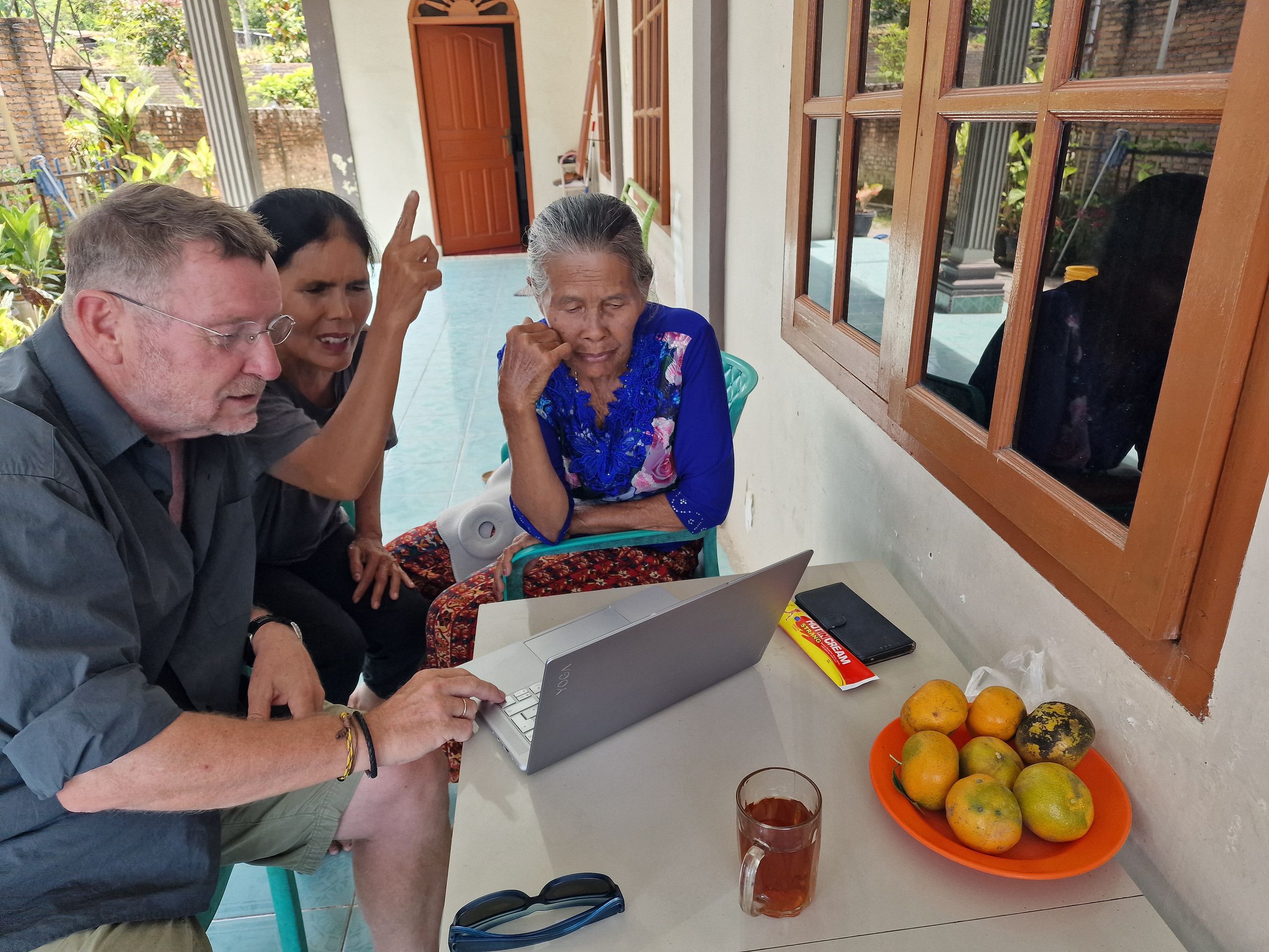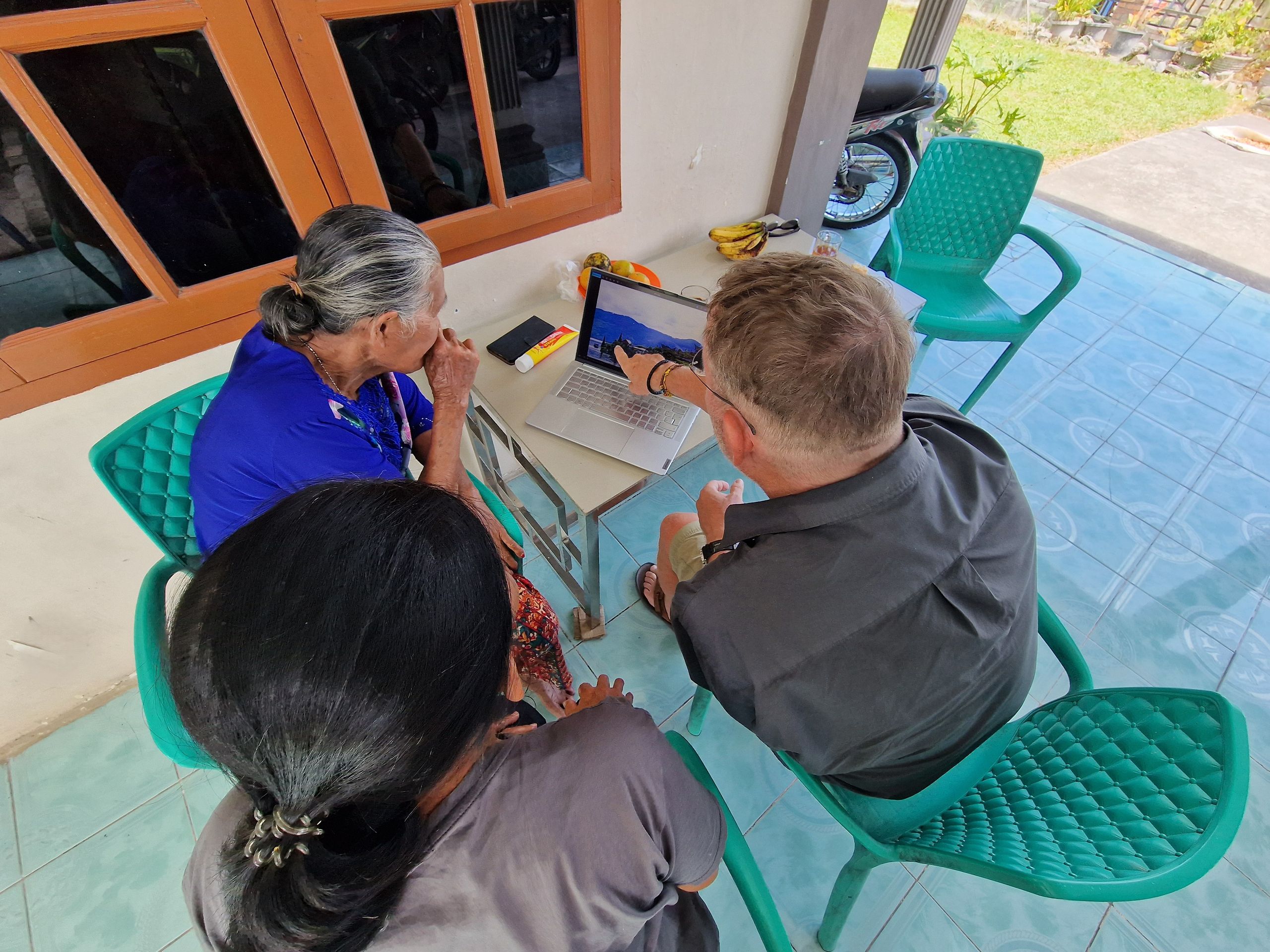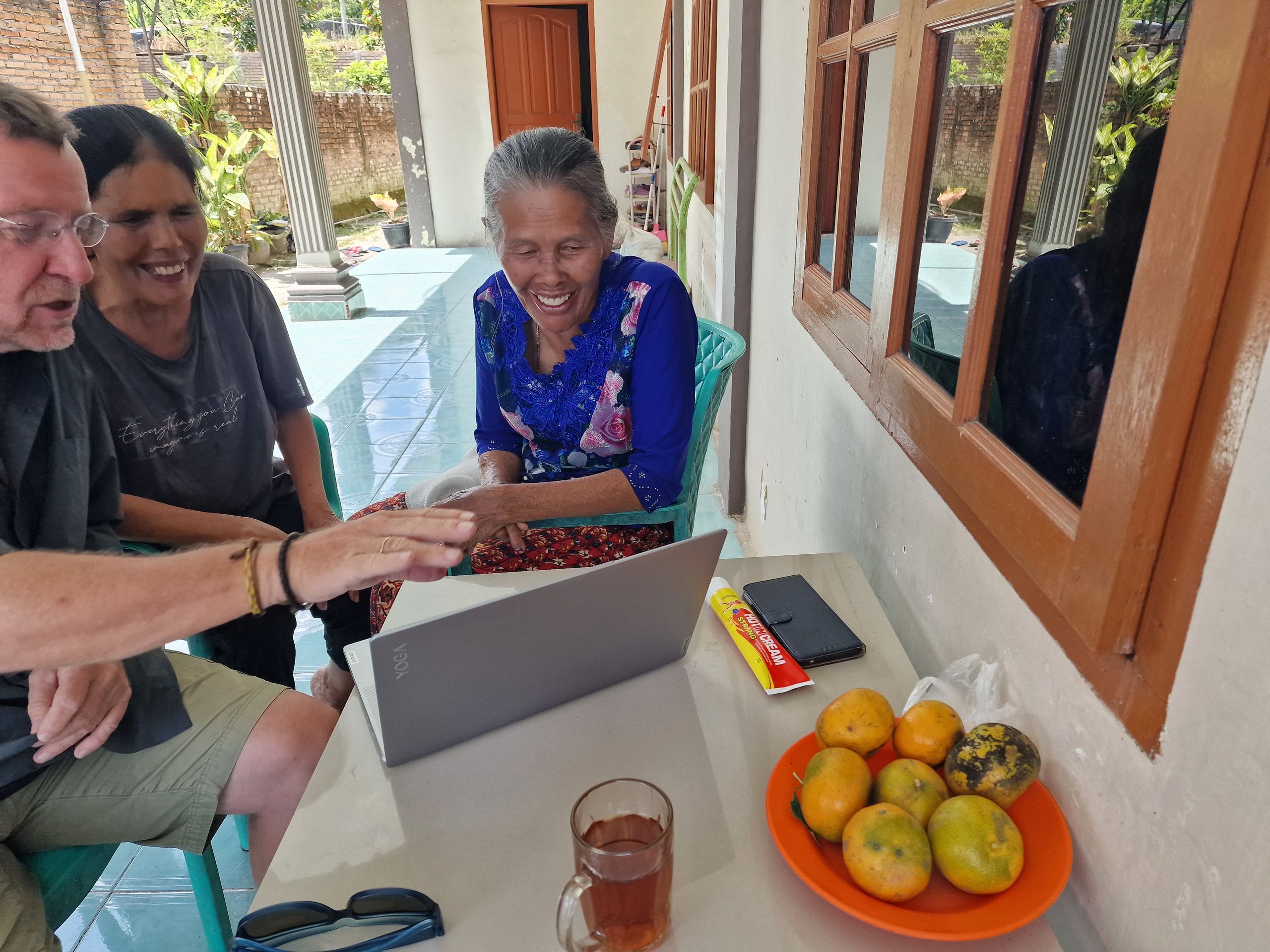 2018 haben wir nach langer Zeit wieder Sumatra bereist und sind selbstverständlich auch an den Tobasee gefahren. Bei Nachfragen über den Verbleib von Roslin konnte uns keiner eine Auskunft geben. Letztes Jahr, bei einer Feier von Freunden, stellte sich heraus, dass der Freund der Tochter des Hauses einen indonesischen Vater hat, ein Batak, ein Indonesier vom Tobasee. Am Tobasee lebt der Volksstamm der Batak. Sie sind Christen und haben eine sehr lebendige und sangesfreudige Glaubensgemeinschaft. Er konnte es ermöglichen Roslin ausfindig zu machen, gab ihr unsre Telefonnummern und seitdem sind wir wieder in Kontakt. So schön, sie wieder zu sehen war eine große Freude. Roslin lebt nun mit ihrer Familie wieder am Tobasee. Wir durften auch ihre Mutter und zwei ihrer Geschwister kennen lernen. Ein herzliches und aufgeschlossenes Hallo umgab uns. Nun sehen wir uns täglich, mal nur für eine Plauderstunde, mal bei einem gemeinsamen, sonntäglichen Besuch des Gottesdienstes, mal für ein längeres gemeinsames Essen.