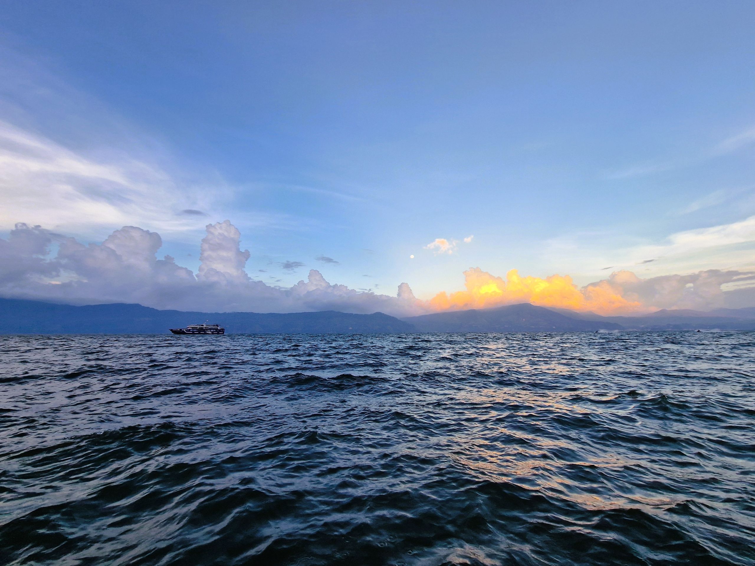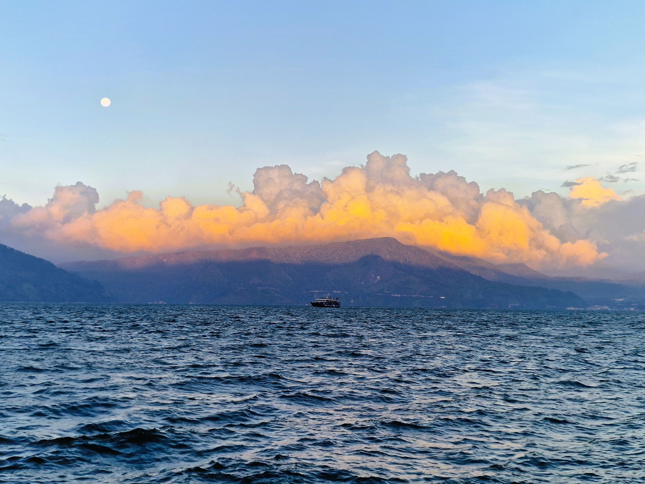 Danau Toba, ein Lieblingsort, ein faszinierender Ort mit unglaublicher Leuchtkraft, Wolkenmacht, mit Schattenspiel, Faltenwurf, Farbtiefe und Weite. Der größte Kratersee der Welt, Toba, ein Supervulkan.