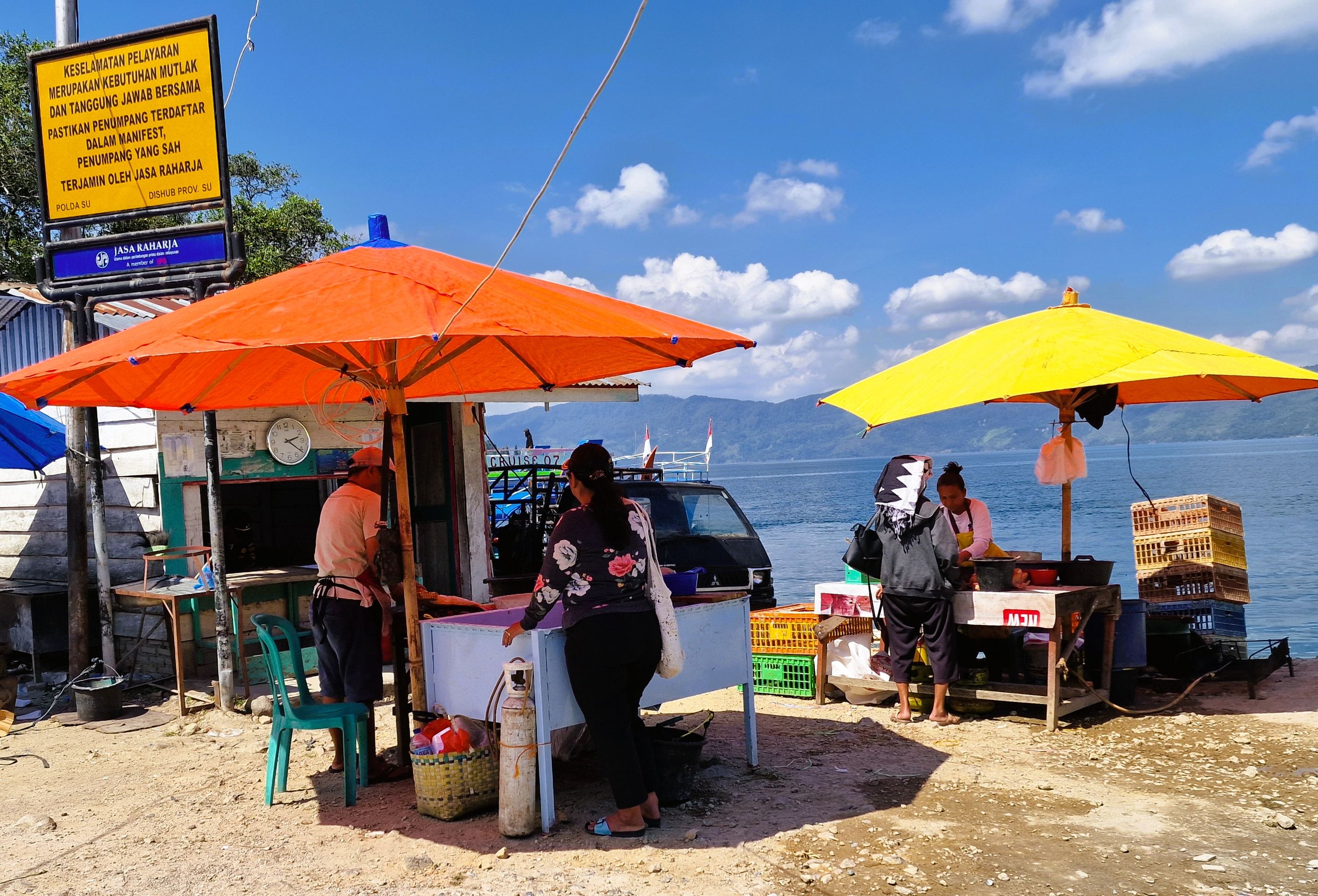 Es ist ein kleiner Tourismus auf Tuk-Tuk. Er hat sich mit dem Besuch westlicher Touristen rückentwickelt, dafür ist der einheimische Tourismus etwas gewachsen. Was auch heißt, das indonesische Hotelgäste gerne Karaoke Partys veranstalten. Bis 22 Uhr ist unsre Toleranzgrenze, danach tut's weh :-). Tagsüber wird gegessen, gesungen, mit dem Jetski über den See gejagt. Für eine oder zwei Nächte, dann gehts wieder nach Hause.
