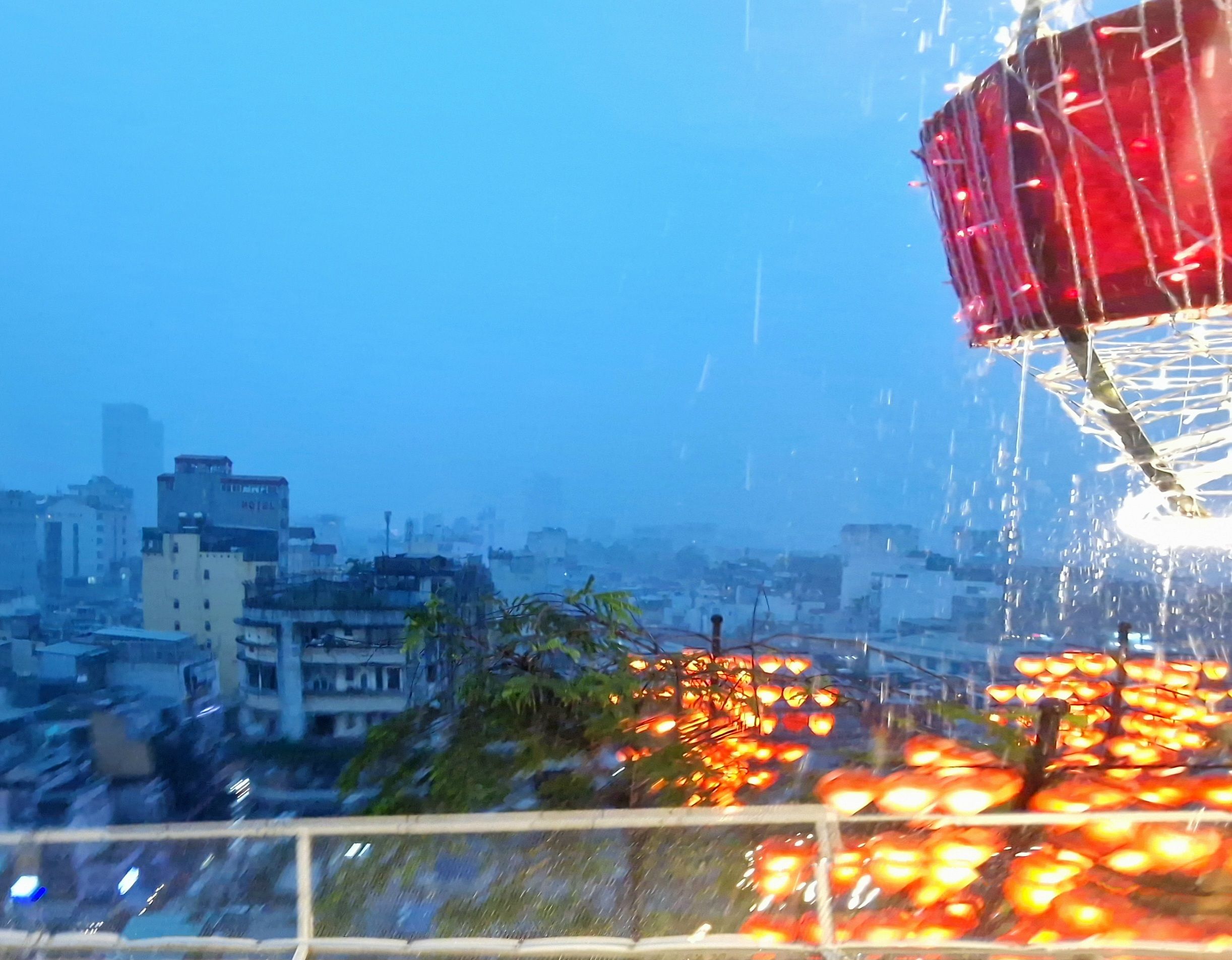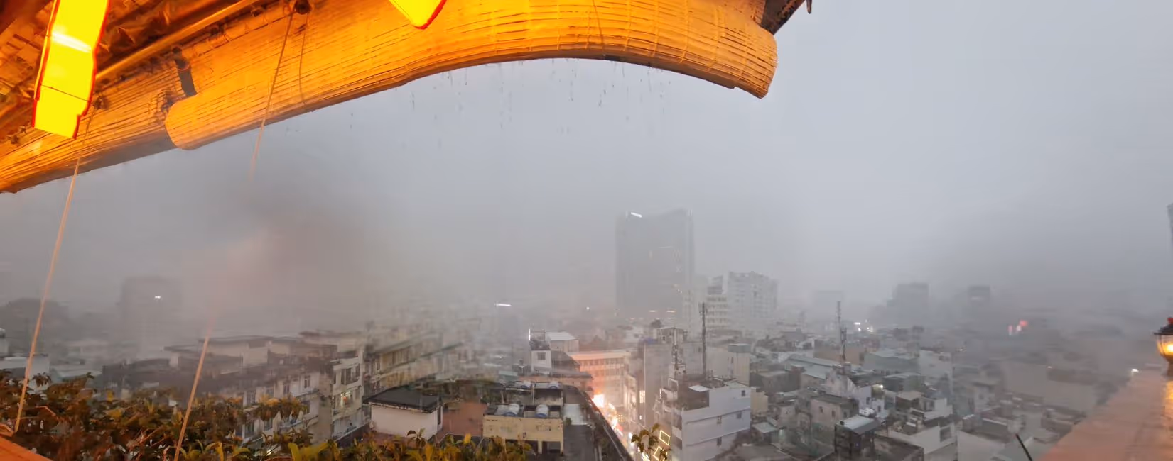 die Stadt versinkt im Regengrau,