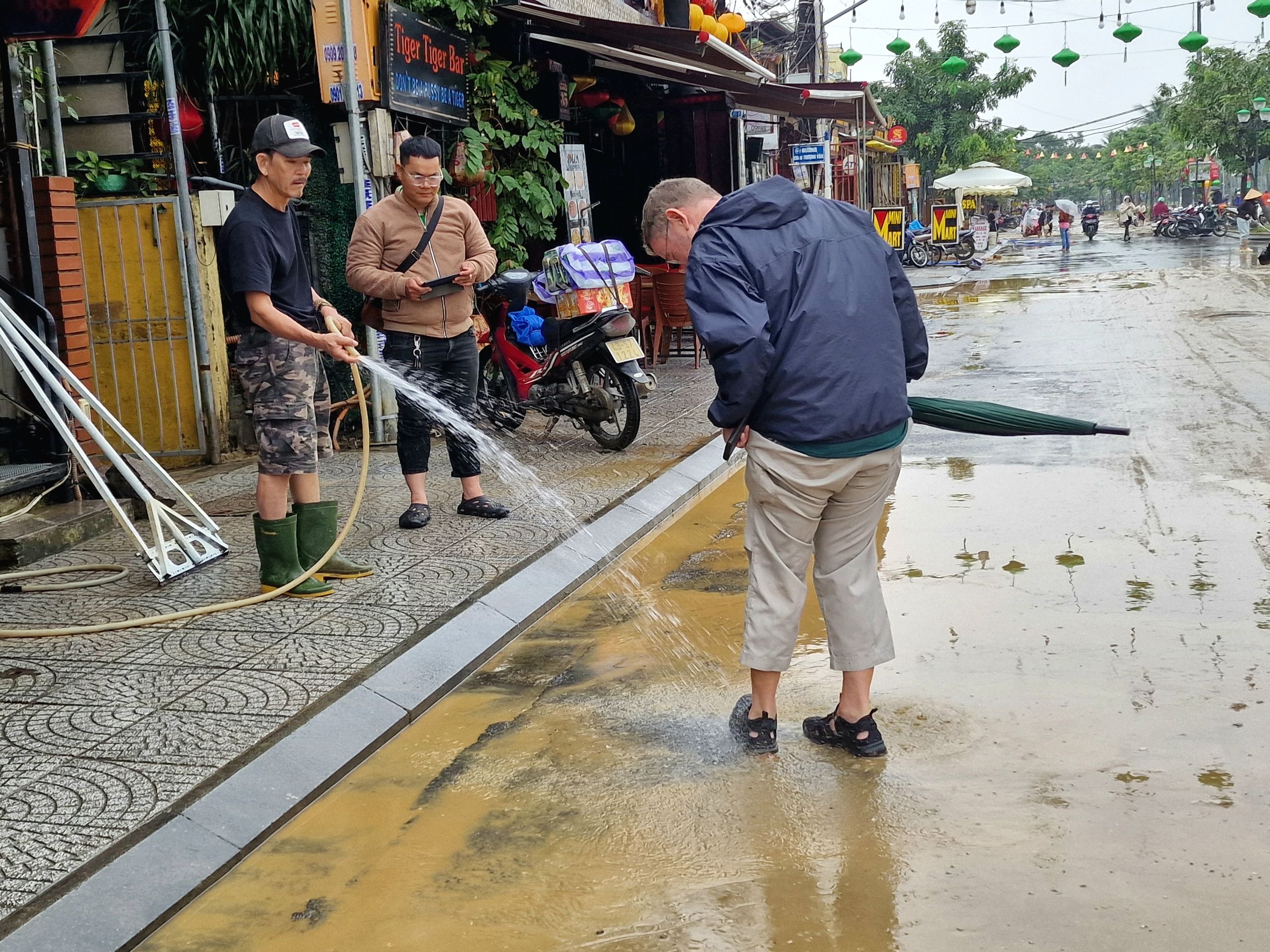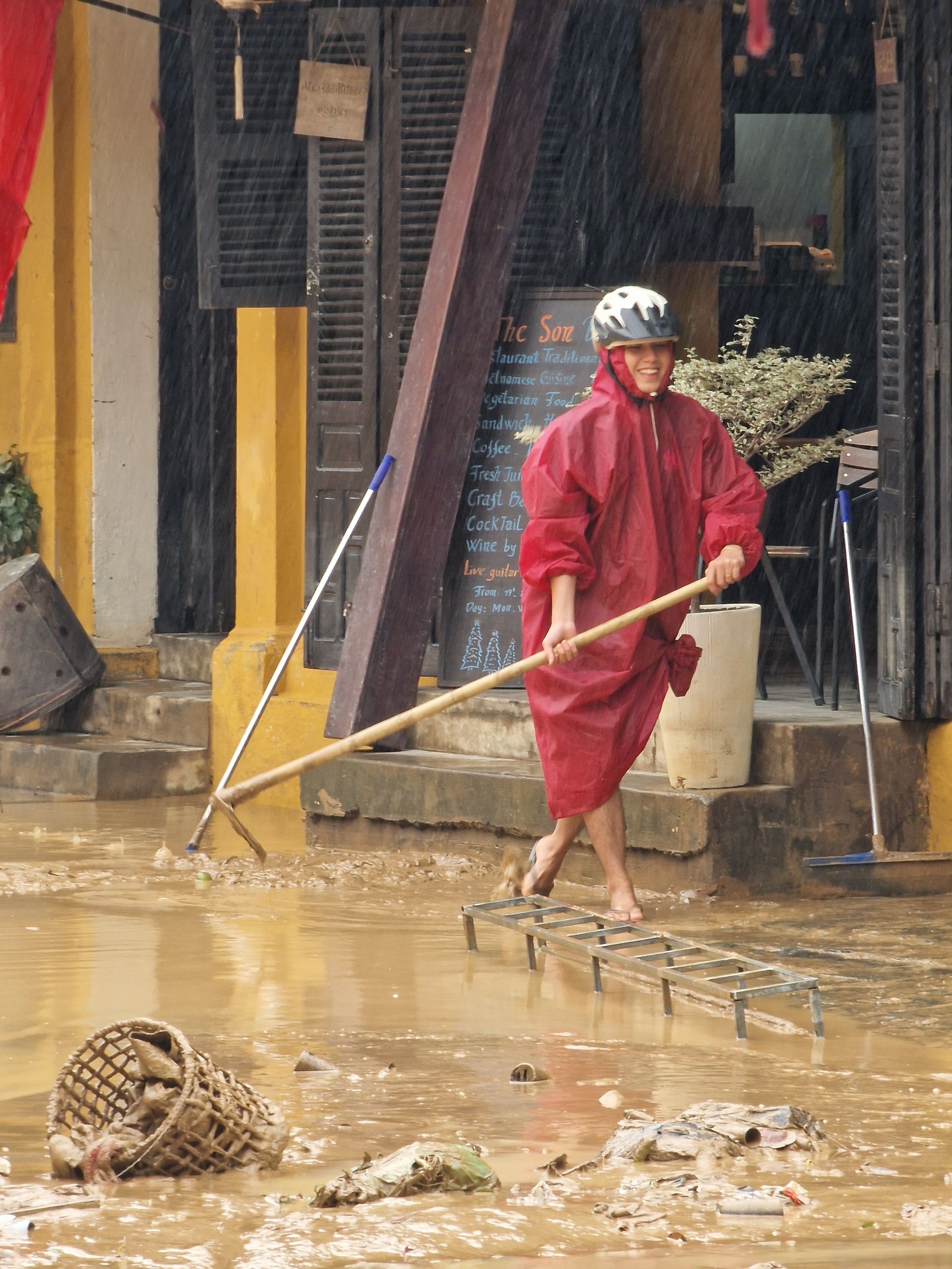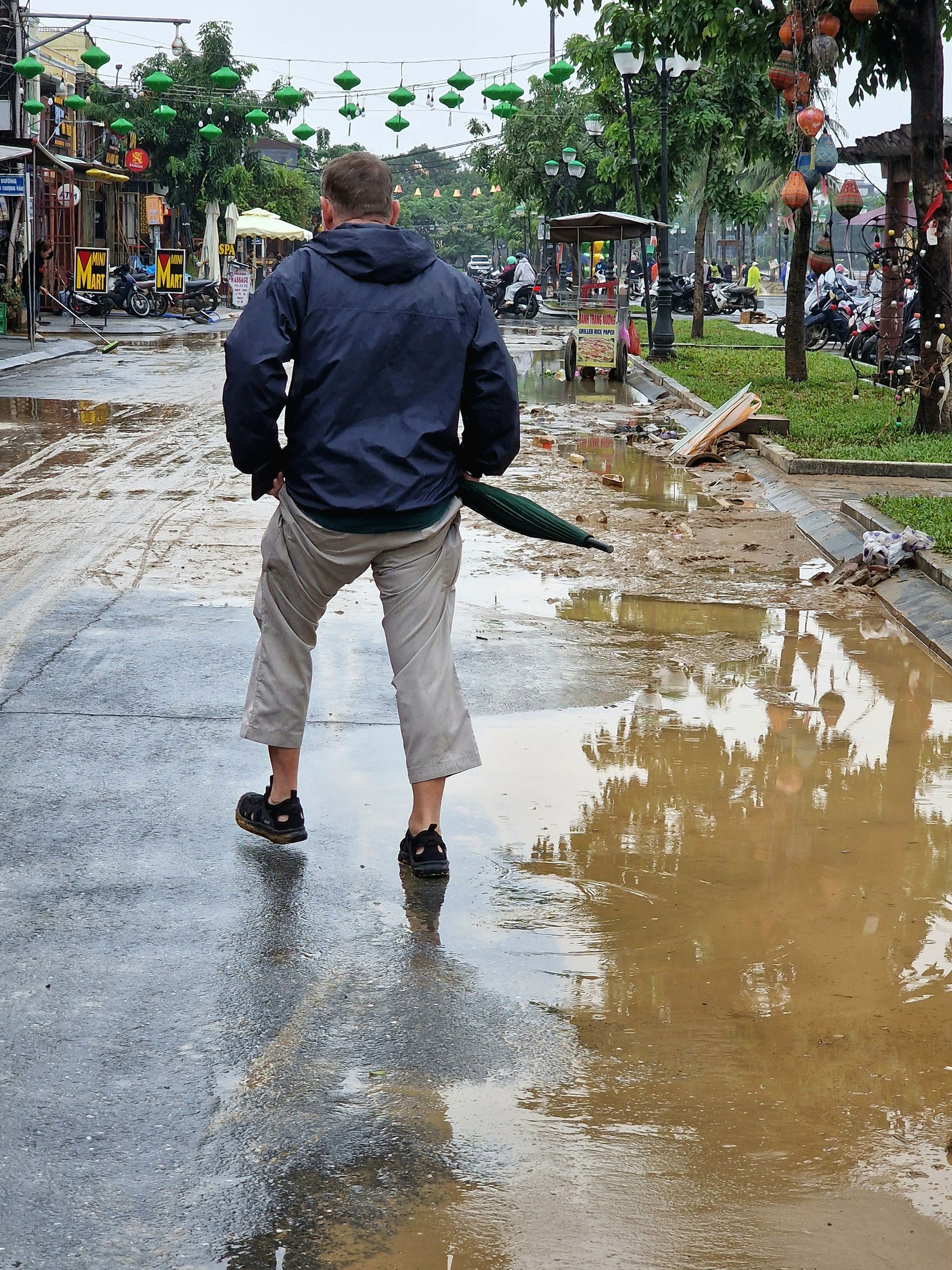 Im Nachhinein staune ich über unsere Unbedarftheit, kurz nach einem Taifun mit recht naiver Vorstellungen nach Hoi An gefahren zu sein. Wir hatten uns zwar informiert, dass es kein neues Unwetter geben wird, aber das Ausmaß, der Regen, der Sturm, der Zustand des Strandes, das permanente Steigen und Fallen des Wassers in den Straßen von Hoi An - das hat mir meine völlige Ahnungslosigkeit vor Augen geführt.