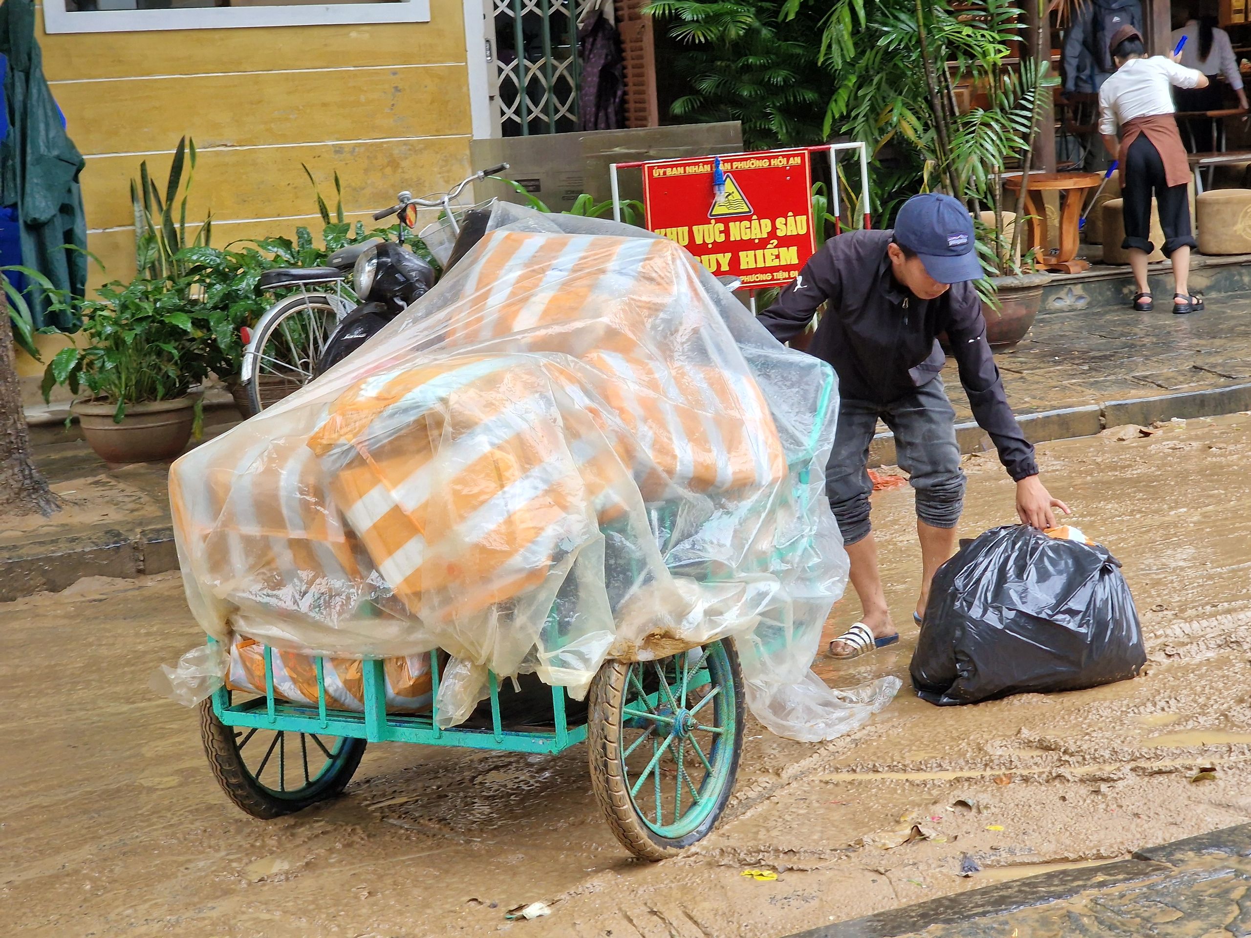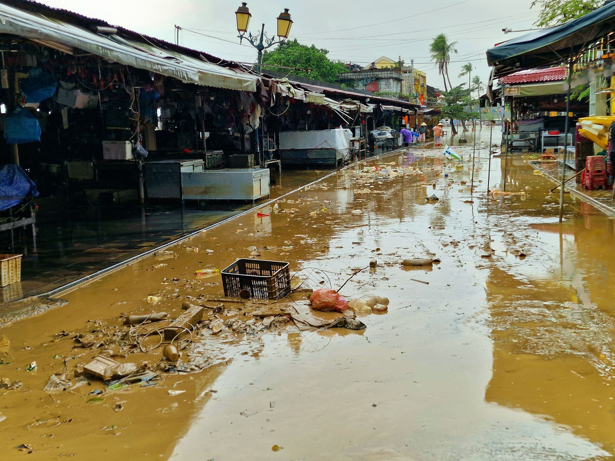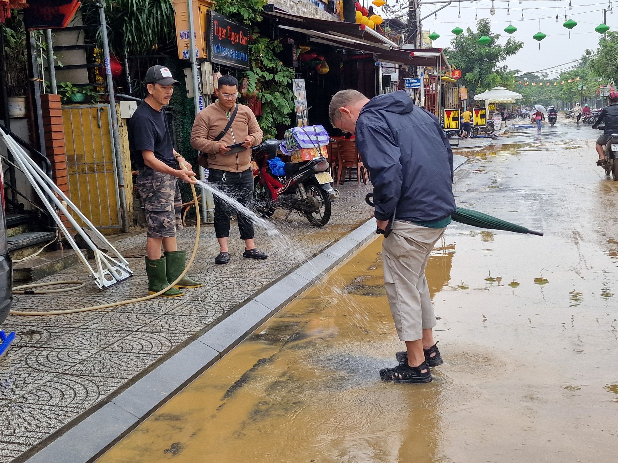 Im Nachhinein staune ich über unsere Unbedarftheit, kurz nach einem Taifun mit recht naiver Vorstellungen nach Hoi An gefahren zu sein. Wir hatten uns zwar informiert, dass es kein neues Unwetter geben wird, aber das Ausmaß, der Regen, der Sturm, der Zustand des Strandes, das permanente Steigen und Fallen des Wassers in den Straßen von Hoi An - das hat mir meine völlige Ahnungslosigkeit vor Augen geführt.