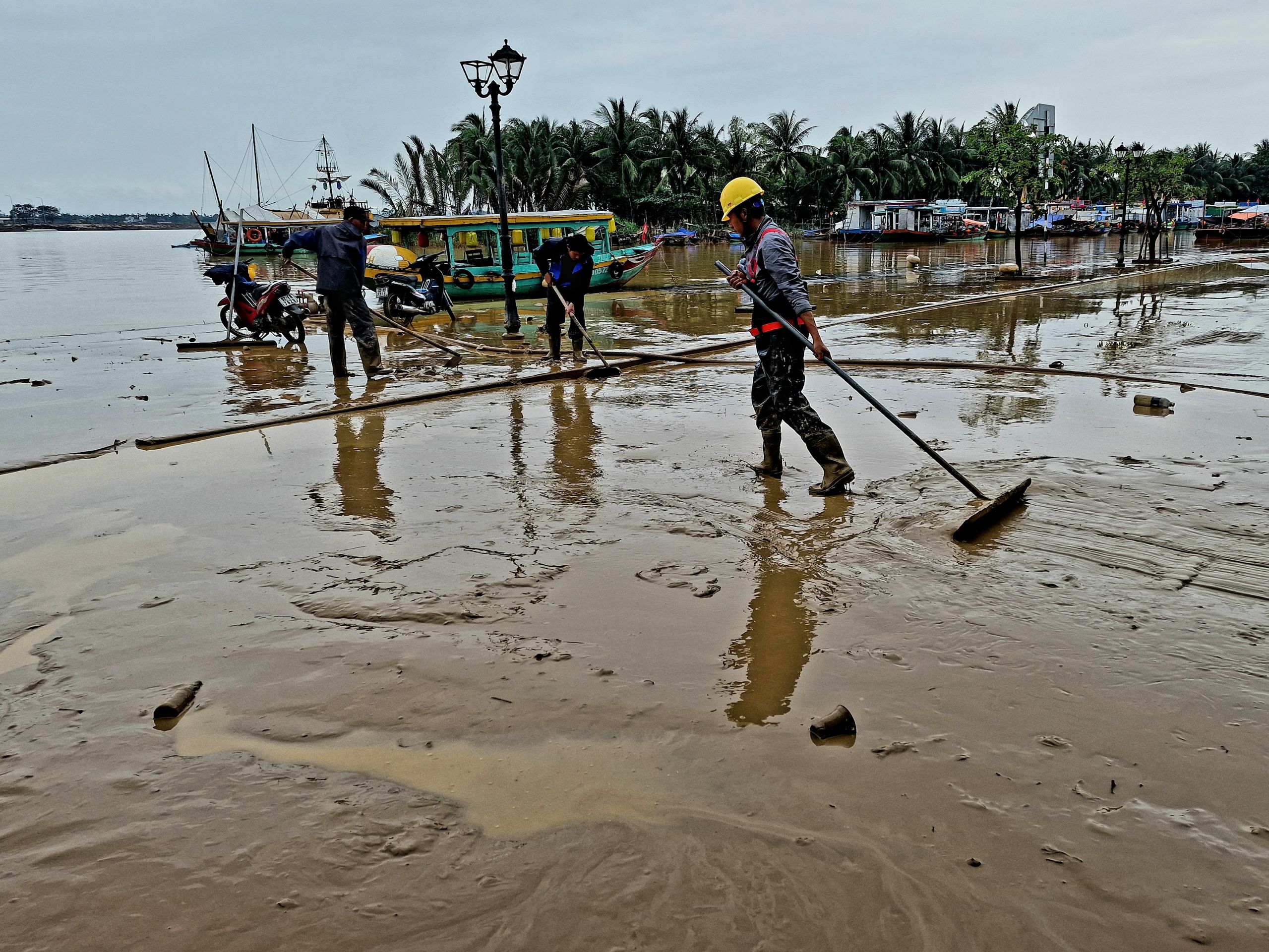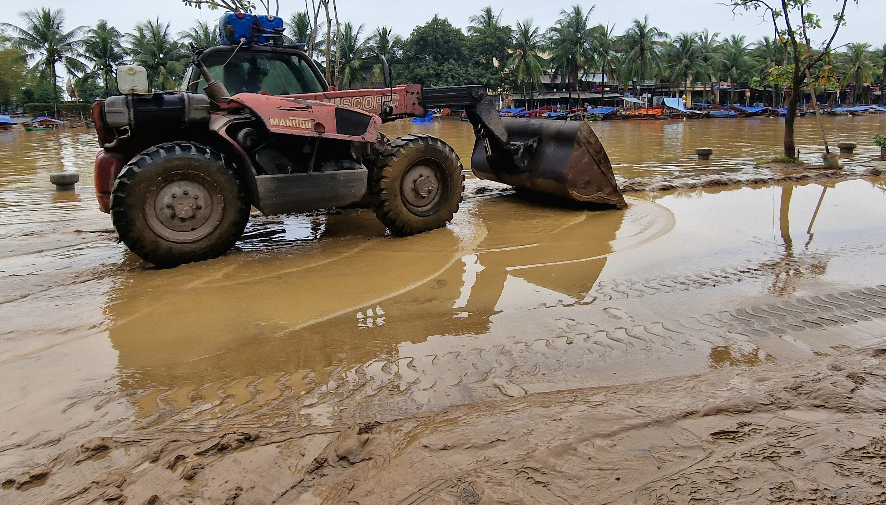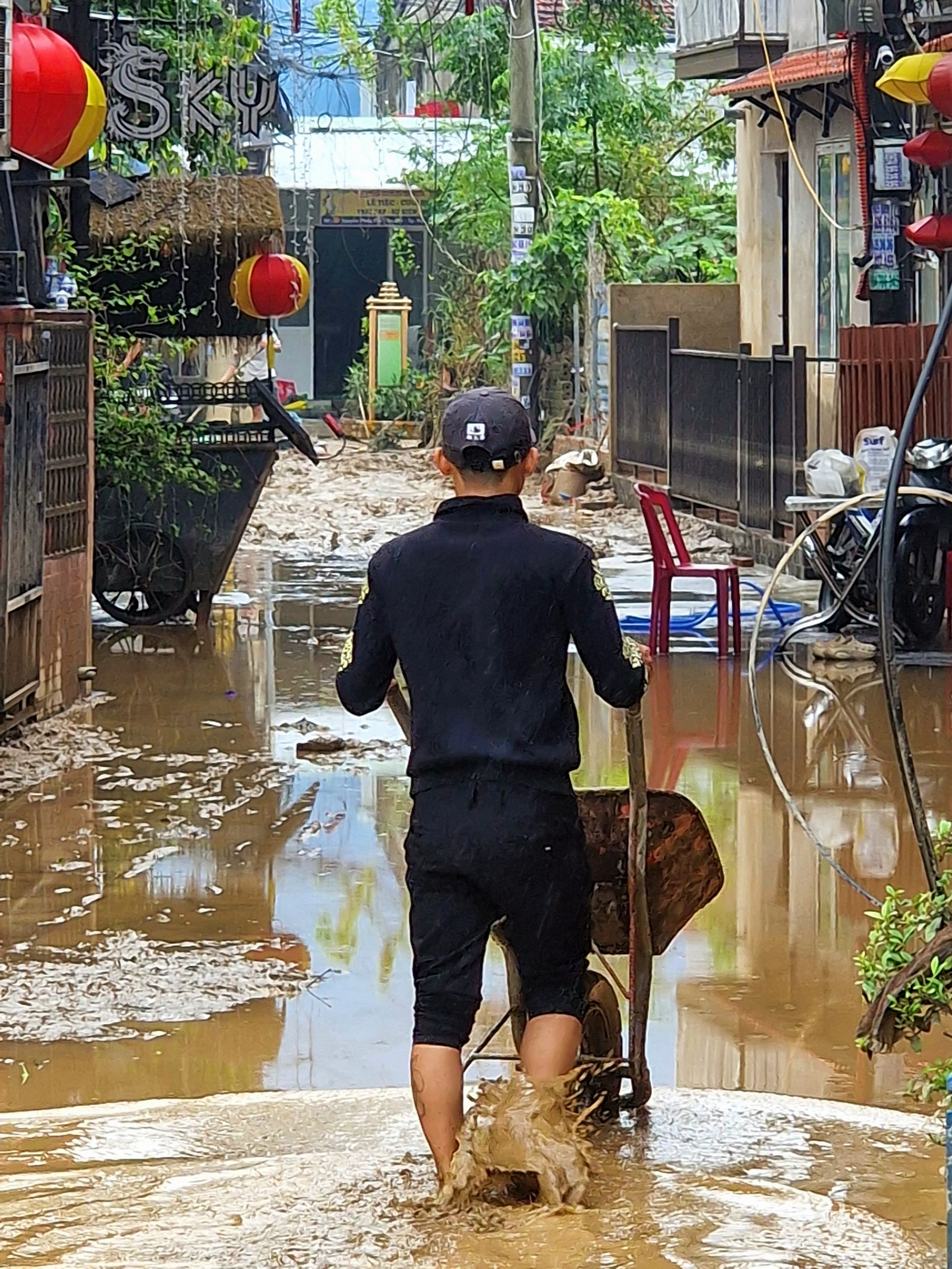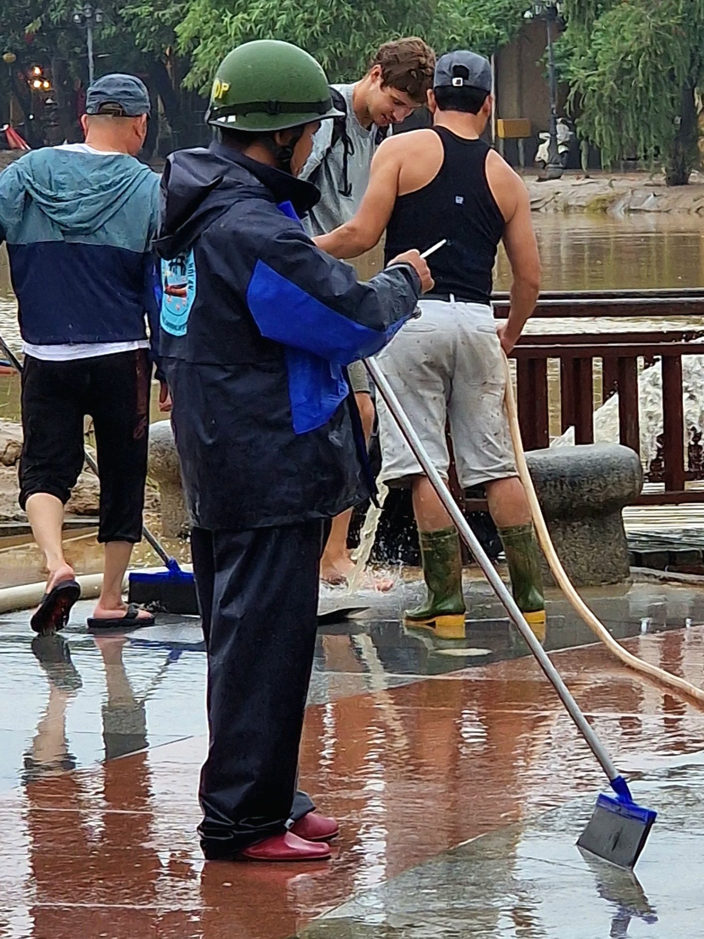 Nach dem Wasser ist vor dem Wasser. Unermüdlich wird von allen gekehrt, geschaufelt, weggetragen, abgespritzt, gewischt. Zurückgebracht, aufgebaut, überlegt - das Wasser steigt wieder etwas! Also umbauen, abwarten, hoffen und bangen - und wenn es schlecht läuft von vorne anfangen! Beeindruckend - alle packen an, ein lautes Lachen ist immer drin. Ein Wirt, der wartete, bis die Straße wieder frei ist, dass er bei sich weiter machen kann, erzählte voller Stolz, dass alle fleißig mithelfen, jeder tut, was er kann. Dass sie nicht auf die "Regierung" warten, das würde zu lange dauern und sie wären gemeinsam viel schneller fertig. Gab mir doch etwas zu denken - keine Atmosphäre von "mach ich nicht, ist nicht meine Aufgabe, der/die machen weniger, warum soll ich dann mehr machen". Eine ansteckende Stimmung breitete sich aus und mein Respekt wuchs beim Miterleben!