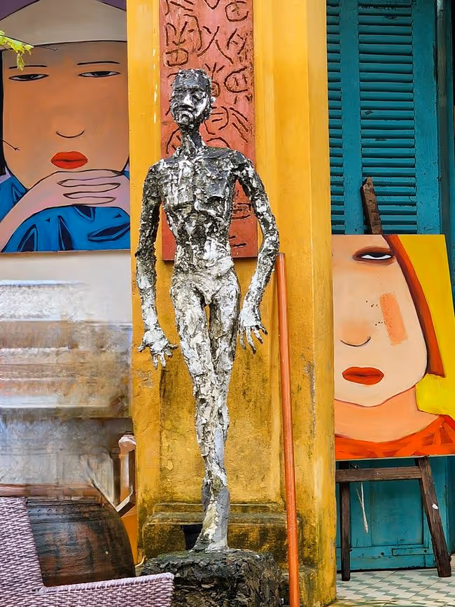Nun habe ich mich darauf gefreut, im geschützten Bereich der Altstadt, in den Häusern, Tempeln und vor allem im Hoi An Museum, die Geschichte Hoi Ans zu entdecken und Bilder zu sehen, die mich an damals erinnern. Was wir fanden, war eine recht kleine, magere Ausstellung, wenige Bilder, wenige Objekte, wenig Erklärungen... was mich persönlich echt enttäuschte. Die Altstadt besteht aus Geschäften, Geschäften, Geschäften, Cafés, Restaurants, Bars, Geschäften. .... Das Weltkulturerbe ist vermarktet. Natürlich, was sonst? Hoi An würde, wenn es nicht Weltkulturerbe wäre, nicht mehr so schön im Stadtbild sein, neue, höhere Gebäude wären gebaut und die kleinen, ockerfarbenen Häuser mit ihren Ziegeldächern und Holzbalkonen würden in der Minderzahl verschwinden. Irgendwann abends saß ich da und dachte, dass es den Häusern egal ist, was darin stattfindet - alles dient dazu es zu erhalten. Dass die ganze Stadt vielleicht irgendwann kollabiert und dem Touristenstrom nicht mehr gewachsen ist, das ist ein anderes Thema - und ja, ich weiß, dazu trage auch ich bei.