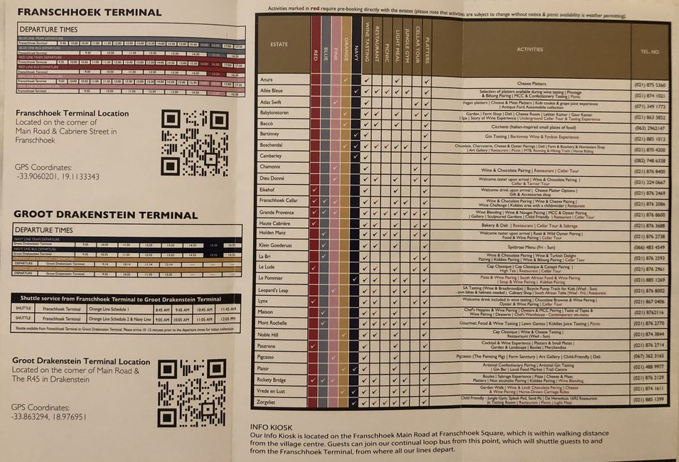 In Franschhoek gibt es die Möglichkeit, Hop On Hop Off-Touren mit dem Wine Train zu machen. Die Leute sind alle vergnügt eingestiegen. Wir haben uns auch hier für die private Variante mit dem UBER entschieden, um die Wine Estates besuchen, die uns wirklich interessieren.