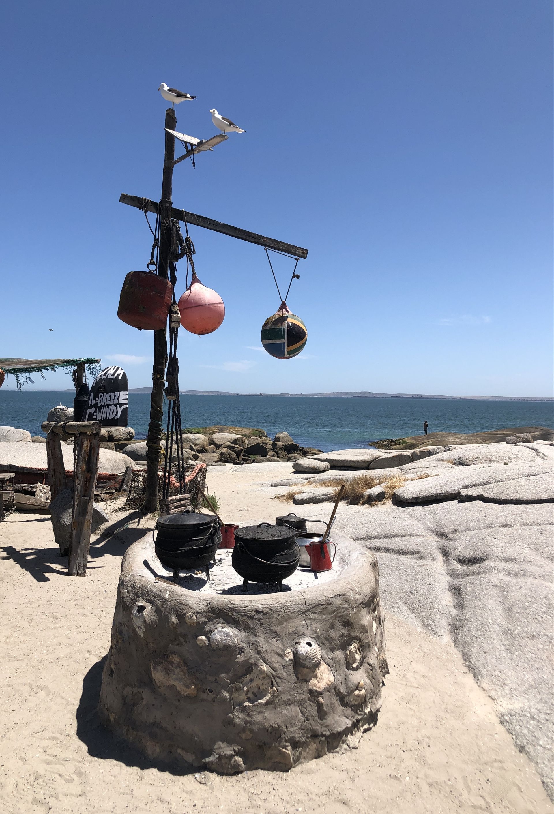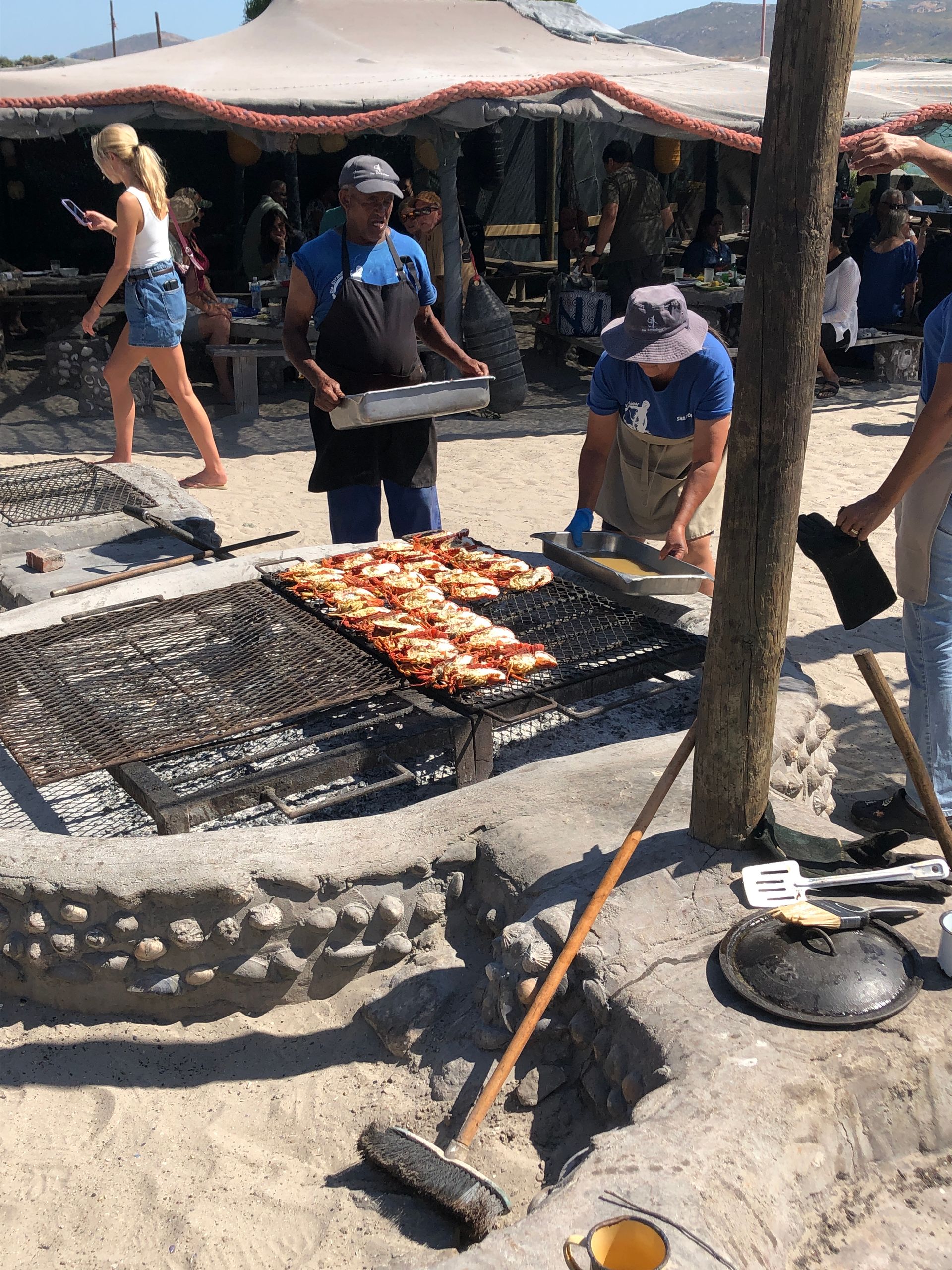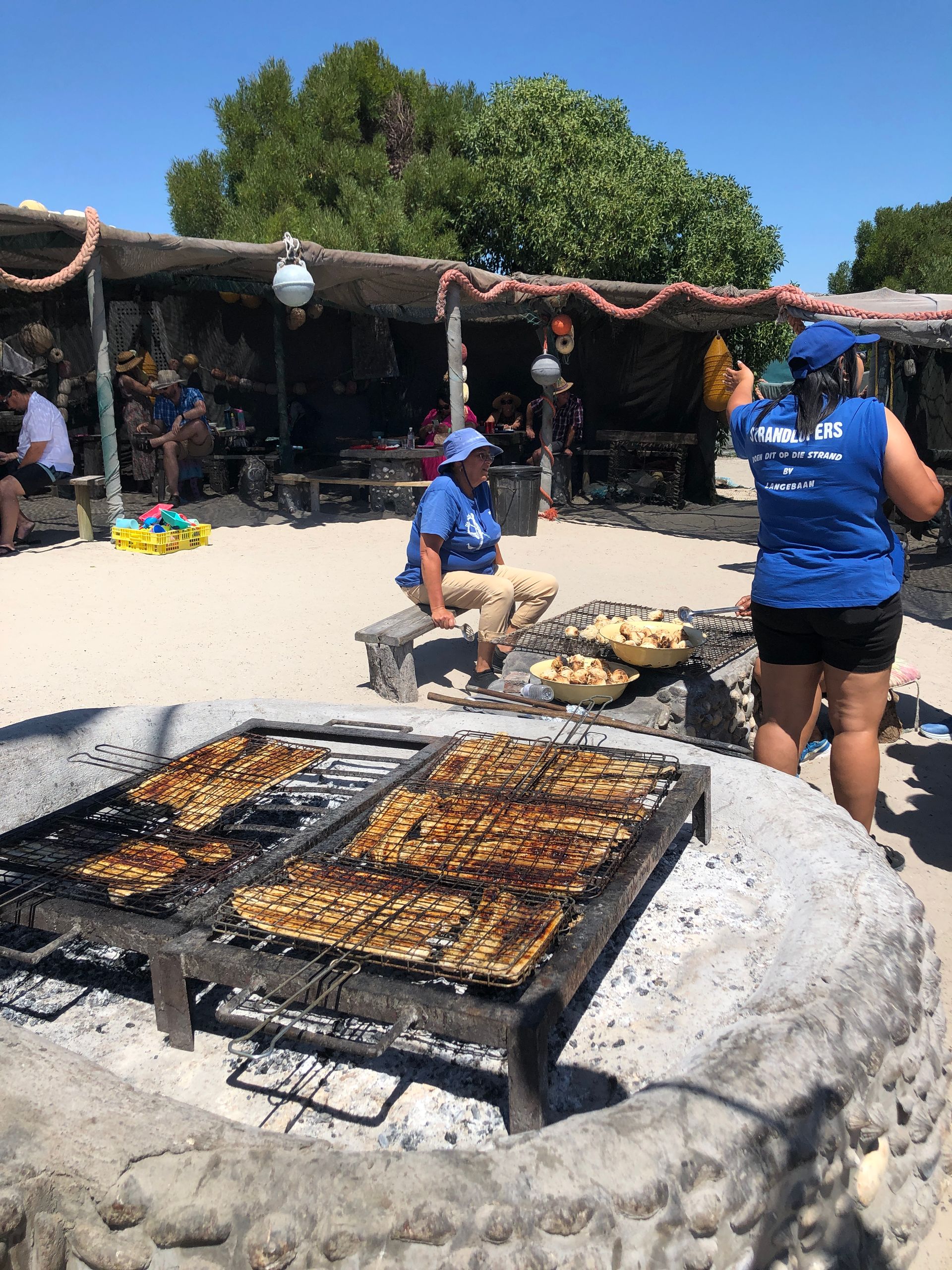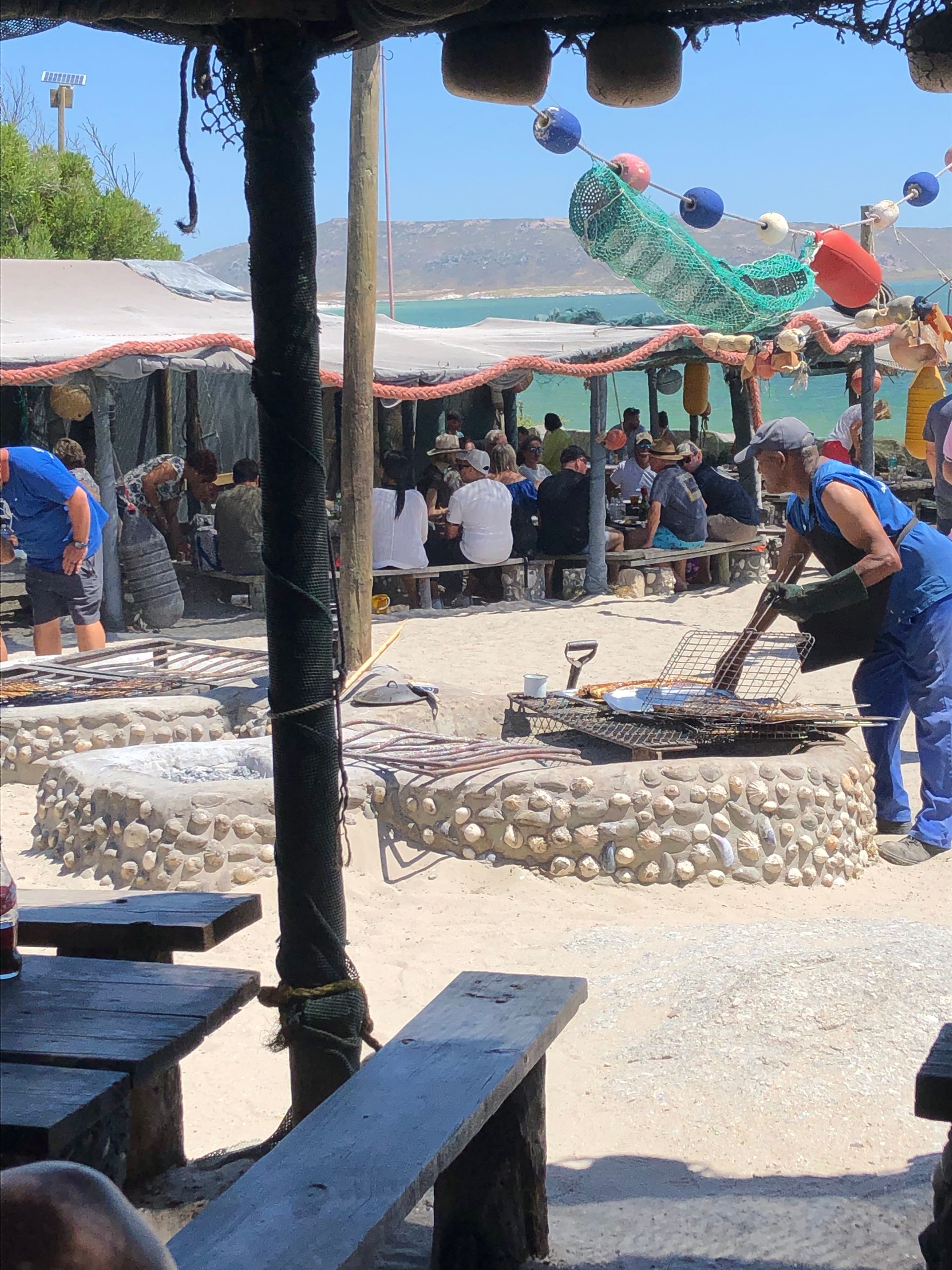 Das Open-Air-Restaurant Die Strandloper ist einfach eine Sensation! Serviert wird ein Zehn-Gänge-Menü unter schattenspendenden Planen und Fischernetzen, an einfachen Holztischen, Bänken und Stühlen, direkt am Meer. Hier die 10 Gänge: Brot mit Butter und Marmelade | Miesmuscheln | gegrillte Sardienen | Fischcurry | gegrillter Snug mit Süßkartoffeln und Roosterkoek | Beef and Bean Bredie | gegrillter Lynvis | gegrillter Yellow Tune | gegrillter Crayfisch | Kaffee mit Koeksisters. Jeder Gang wird vom Chef angekündigt, dazu geht er von Ecke zu Ecke. Die Gerichte werden über großen, offenen Feuerstellen oder in großen Töpfen von der Crew zubereitet und dort direkt serviert. Jeder kann sich seine Getränke selber mitbringen oder an der Bar kaufen. Eine weitere Besonderheit dieses Restaurants: es gibt kein Besteck, sondern Muschelschalen! Einlass ist um 12 Uhr, der erste Gang startet um 12:30 und die Session dauert dann 3 Stunden. Tipp: unbedingt vorher reservieren, das Restaurant ist Wochen bis Monate im Voraus ausgebucht.