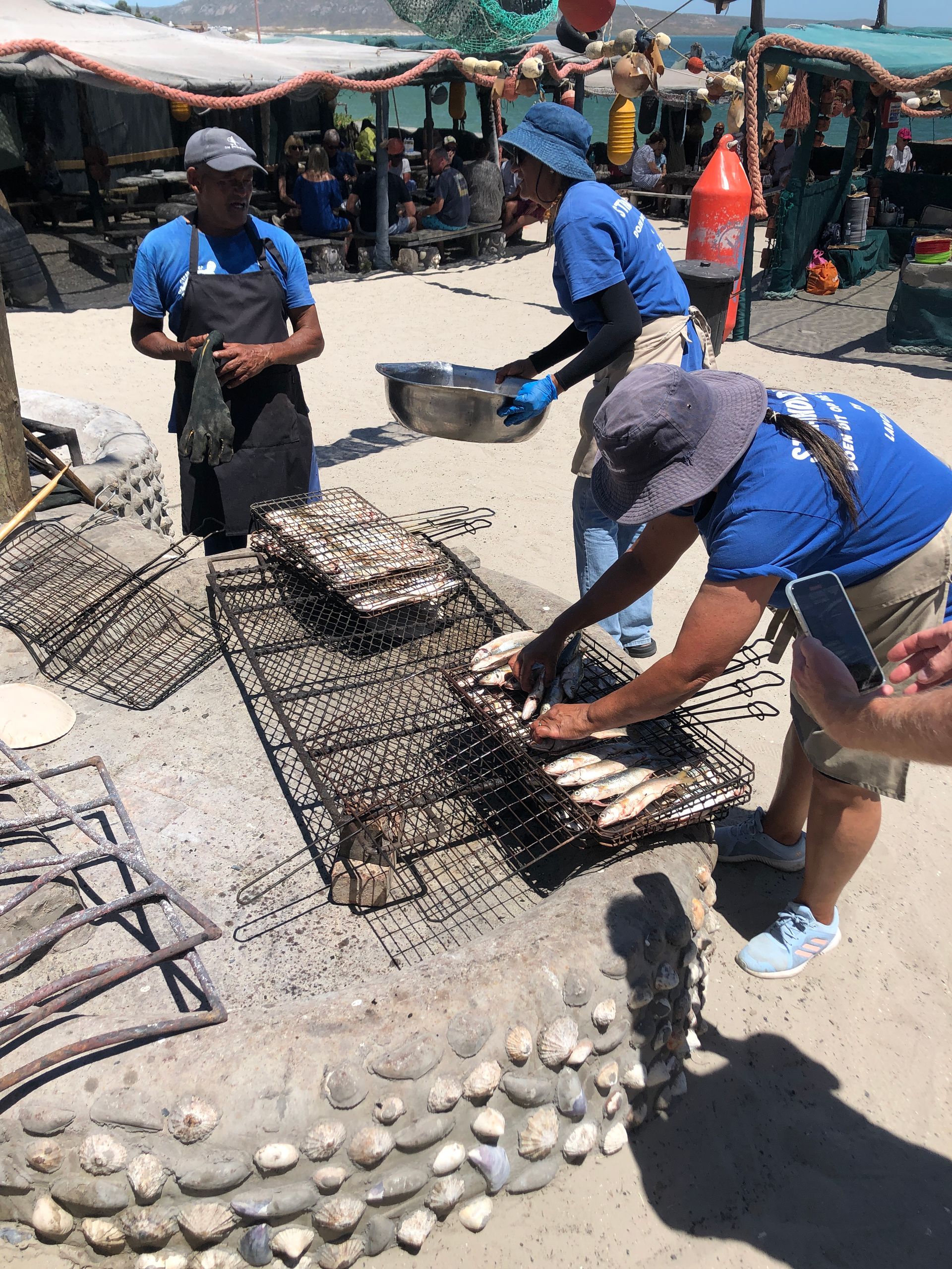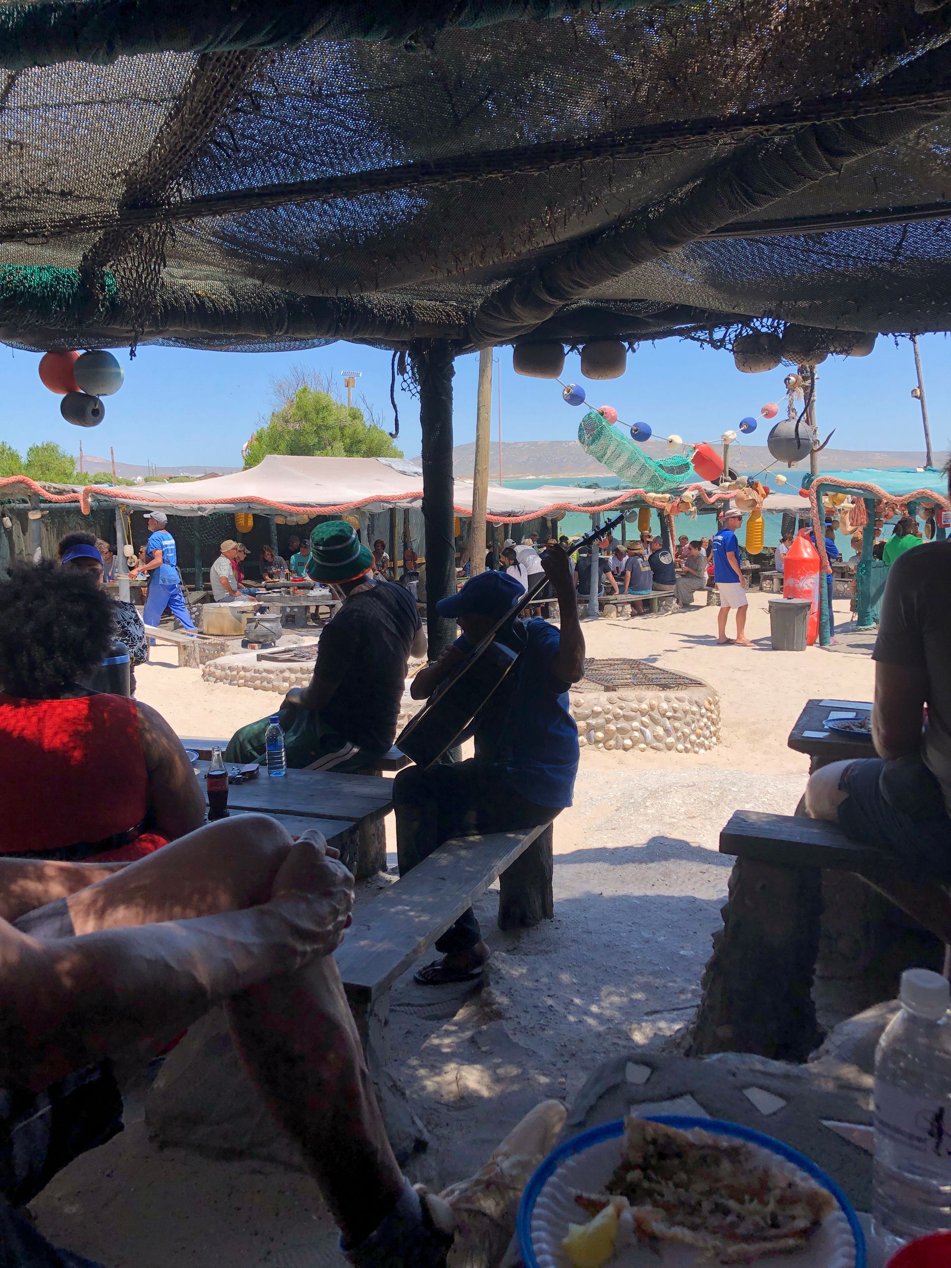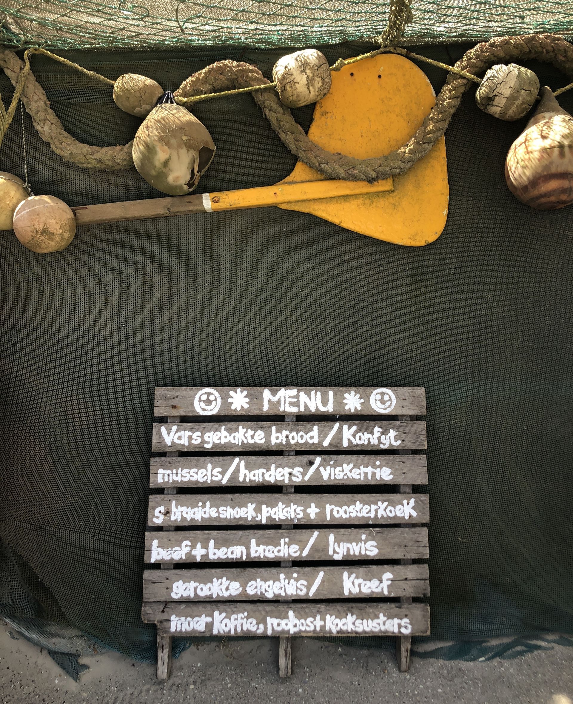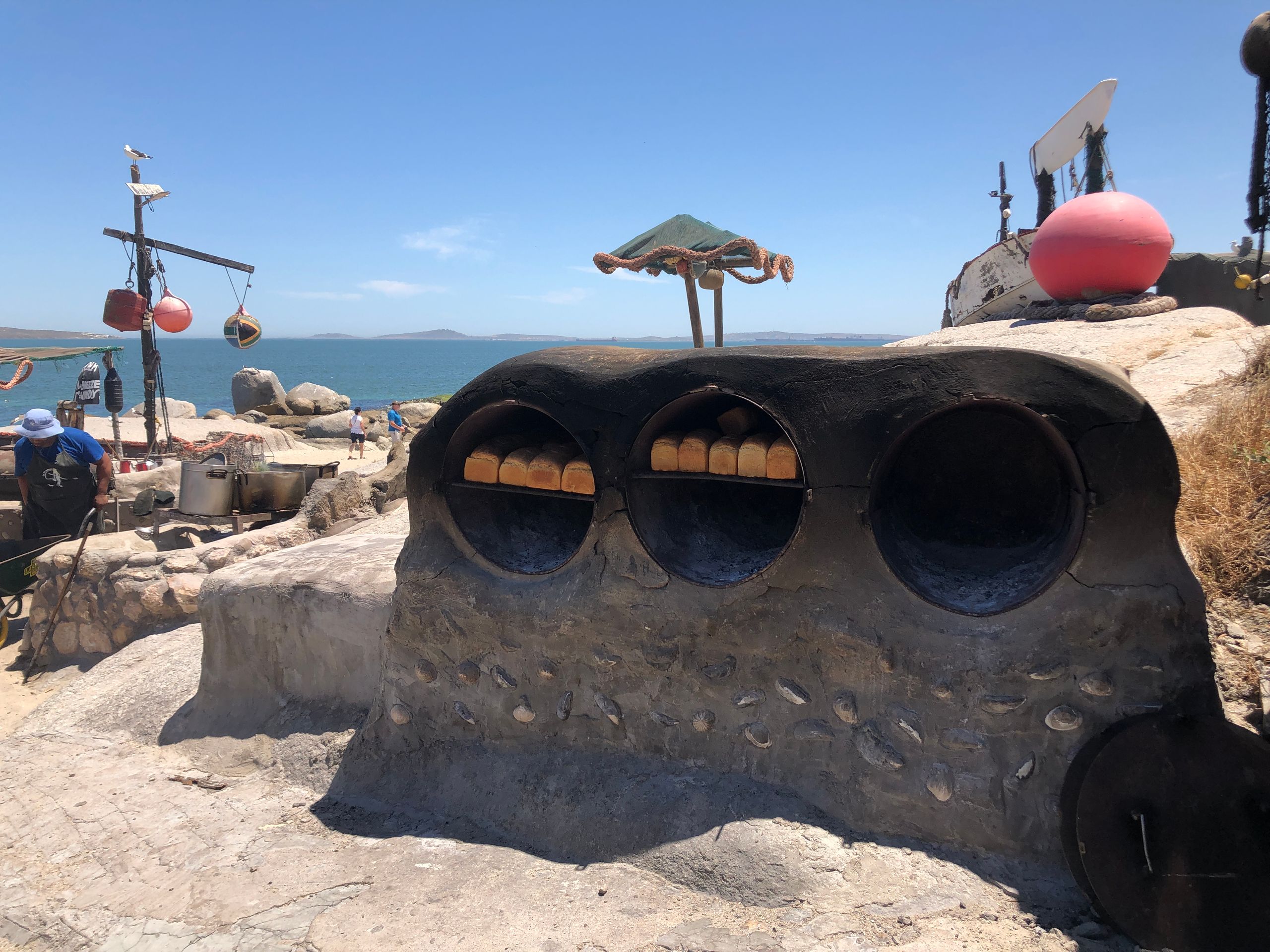 Das Open-Air-Restaurant Die Strandloper ist einfach eine Sensation! Serviert wird ein Zehn-Gänge-Menü unter schattenspendenden Planen und Fischernetzen, an einfachen Holztischen, Bänken und Stühlen, direkt am Meer. Hier die 10 Gänge: Brot mit Butter und Marmelade | Miesmuscheln | gegrillte Sardienen | Fischcurry | gegrillter Snug mit Süßkartoffeln und Roosterkoek | Beef and Bean Bredie | gegrillter Lynvis | gegrillter Yellow Tune | gegrillter Crayfisch | Kaffee mit Koeksisters. Jeder Gang wird vom Chef angekündigt, dazu geht er von Ecke zu Ecke. Die Gerichte werden über großen, offenen Feuerstellen oder in großen Töpfen von der Crew zubereitet und dort direkt serviert. Jeder kann sich seine Getränke selber mitbringen oder an der Bar kaufen. Eine weitere Besonderheit dieses Restaurants: es gibt kein Besteck, sondern Muschelschalen! Einlass ist um 12 Uhr, der erste Gang startet um 12:30 und die Session dauert dann 3 Stunden. Tipp: unbedingt vorher reservieren, das Restaurant ist Wochen bis Monate im Voraus ausgebucht.