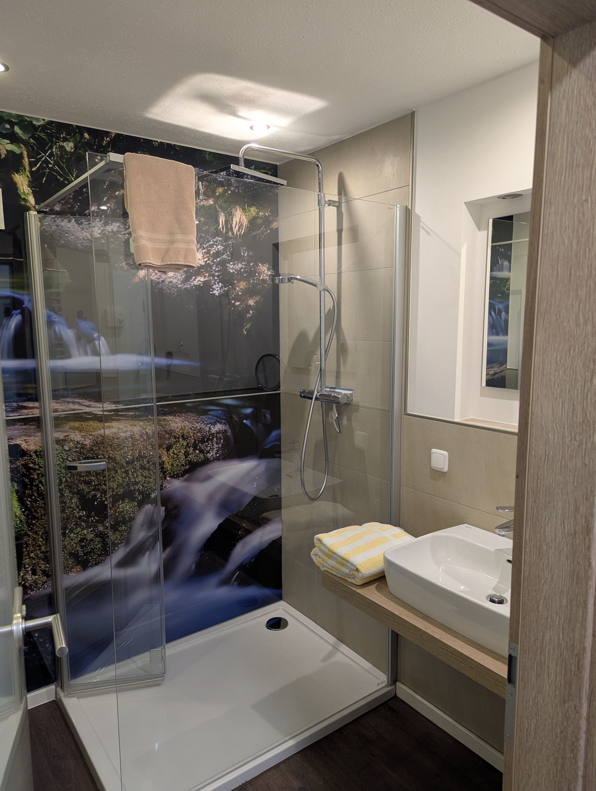 Zur Erholung für Po und Rücken war der 21.05.25 ohne Motorrad geplant. Wir sind noch immer in Lam. Nach ein bisschen schwimmen im hauseigenen Schwimmbad erkundeten wir den kleinen Ort zu Fuß, waren allerdings schnell durch. Viel gibt es hier nicht zu sehen. So ließen wir uns in der Sonne beim Dorfbäcker nieder und bestellten einen Eisbecher. Der erste in 2025 für uns. Mangels Sahne gab es einen ordentlichen Schuss Eierlikör auf das Schoko- Vanilleeis. Zusätzlich und für lau gab es noch einen Kaffee für uns. Die "Chefin" servierte, kassierte ab und sagte, dass sie weg müsse, aber der "Chef" bald komme. Sie ließ die Bäckerei unverschlossen und ging. Das ist zu Hause unvorstellbar! Wir verabschiedeten sie mit den Worten, dass wir morgen zum Weißwurstessen wieder kommen würden. Den Tag ließen wir bei Kniffel auf unserer Terrasse ausklingen.