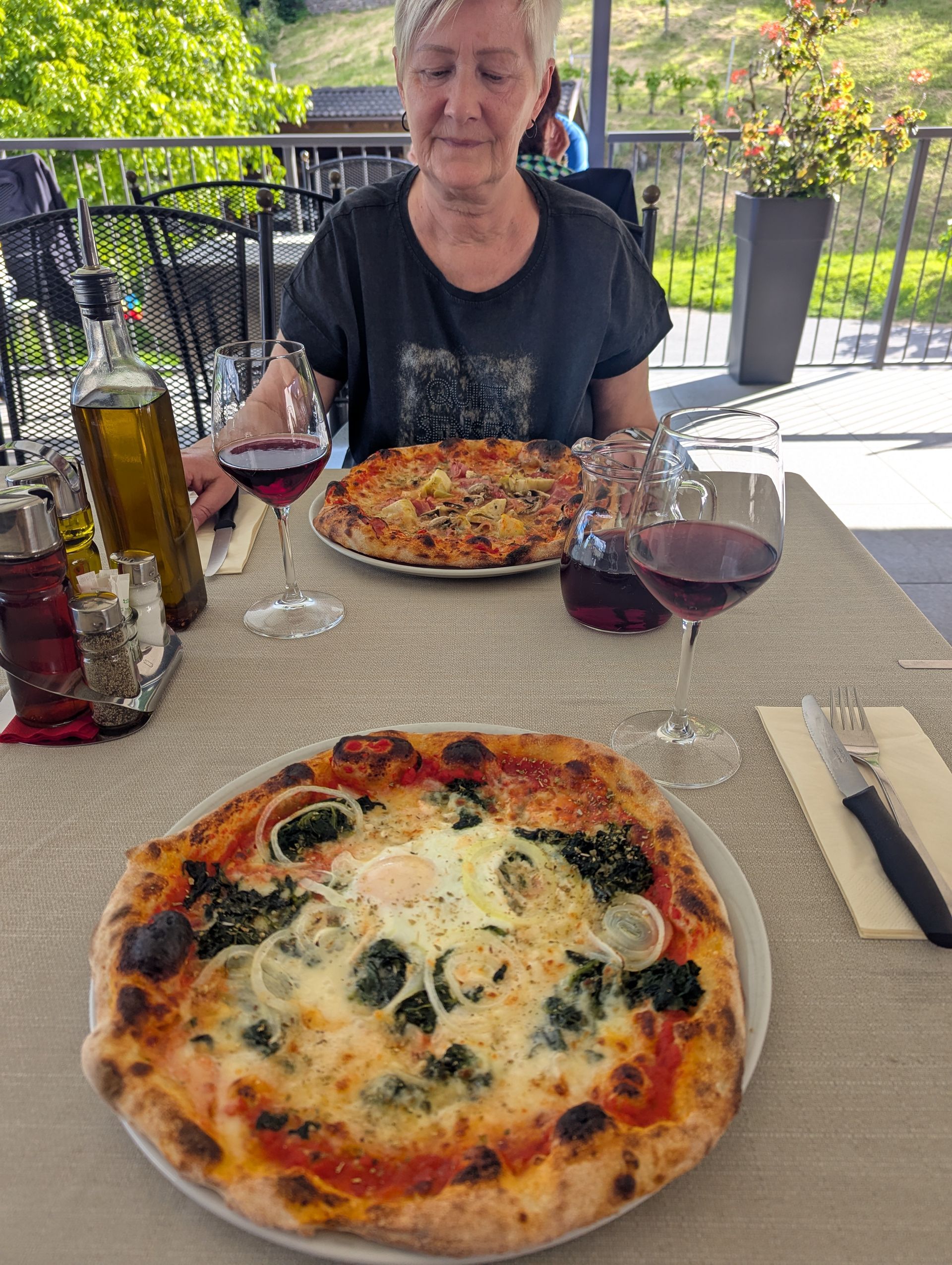 Zum Abendessen geht es dann 20 Meter weiter zum Pizzaessen. Wenn man schon in Italien isst.....;-)