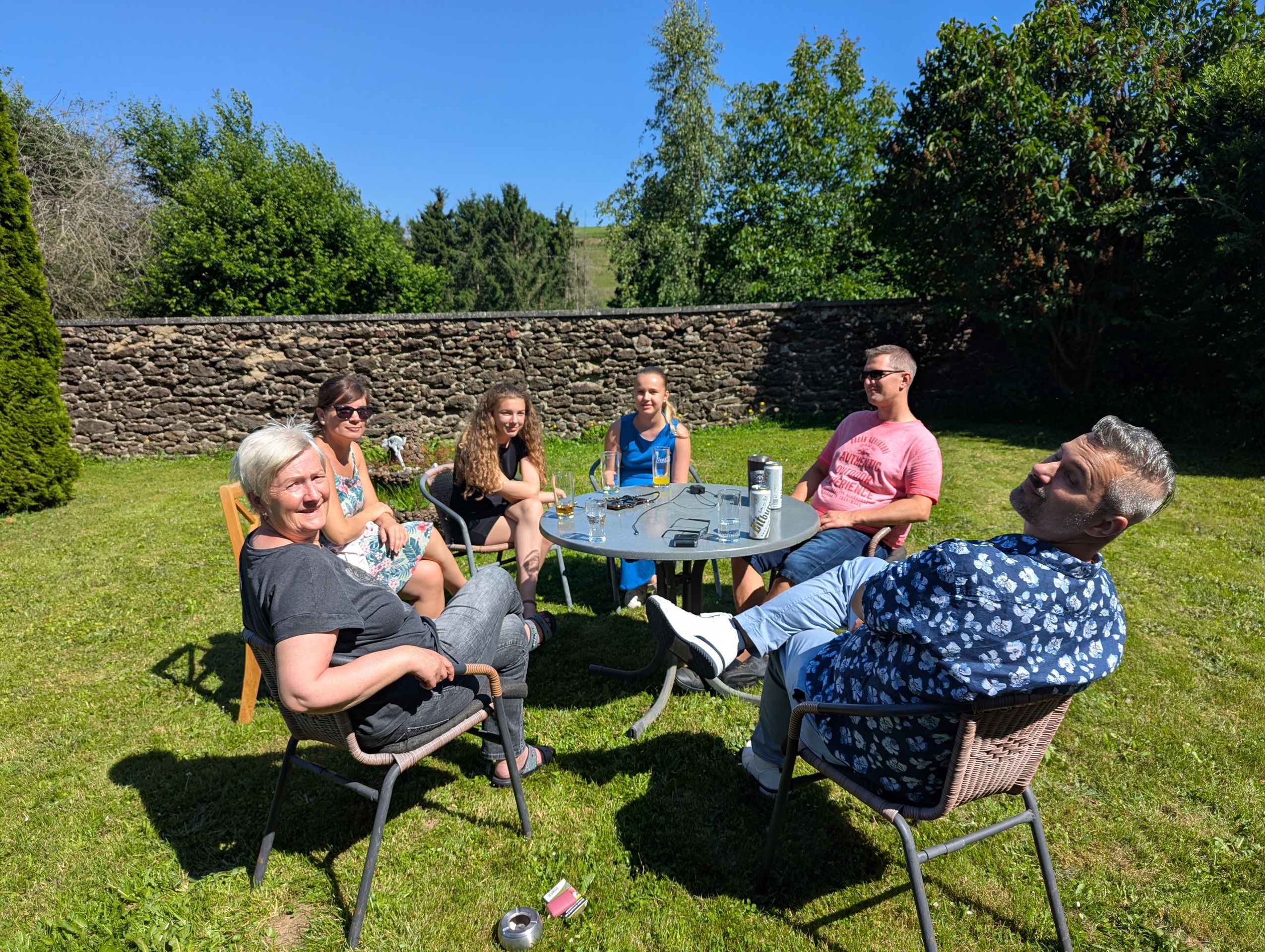 Gegen 09.00 Uhr gab es ein Wiedersehen mit Alex und den Enkelinnen. Nach einem guten Frühstück haben wir im Garten zusammen gesessen und Neuigkeiten ausgetauscht.