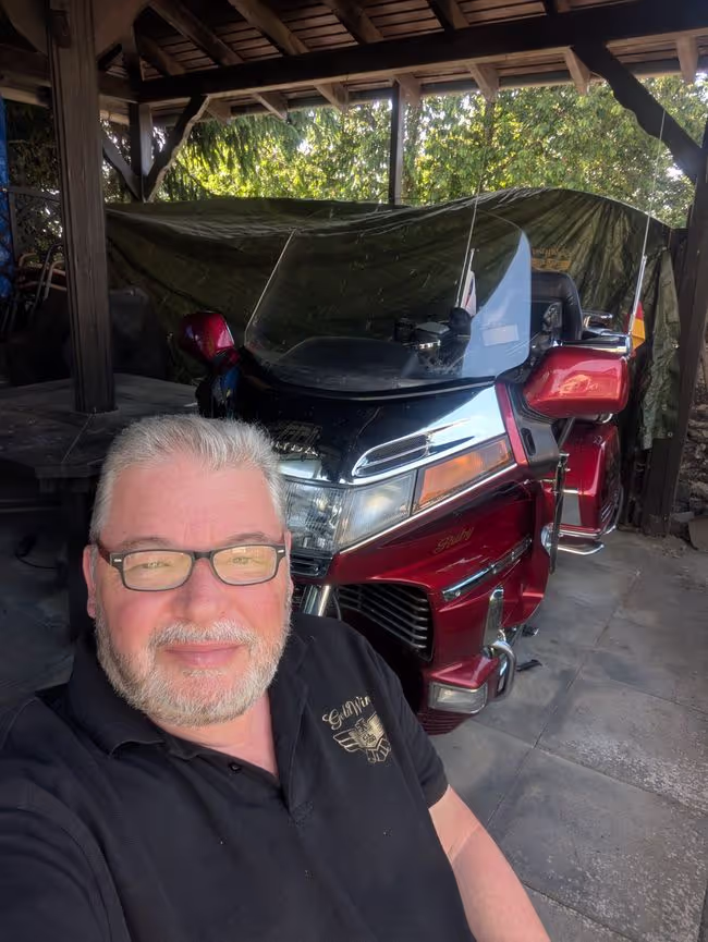 Nach dem Einkauf ließen wir uns auf unserer Terrasse nieder und auch "Ruby" hat ihren Unterstellplatz gefunden. 😉