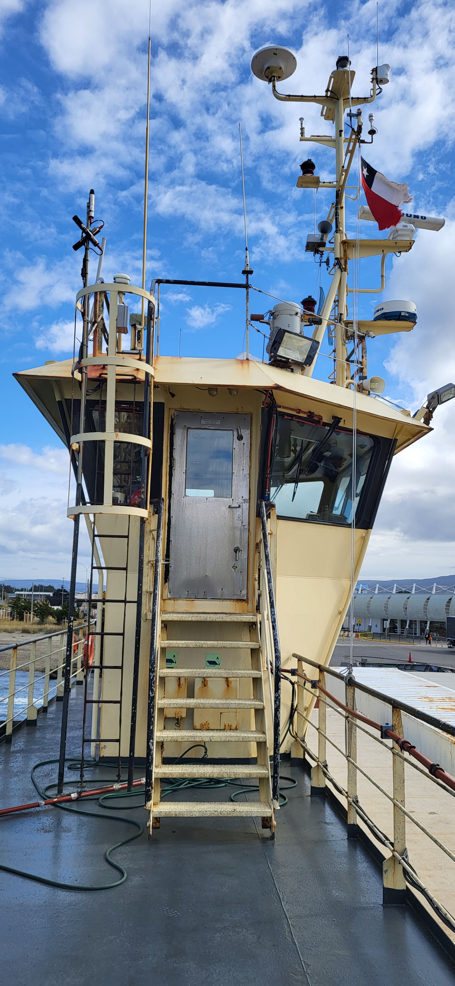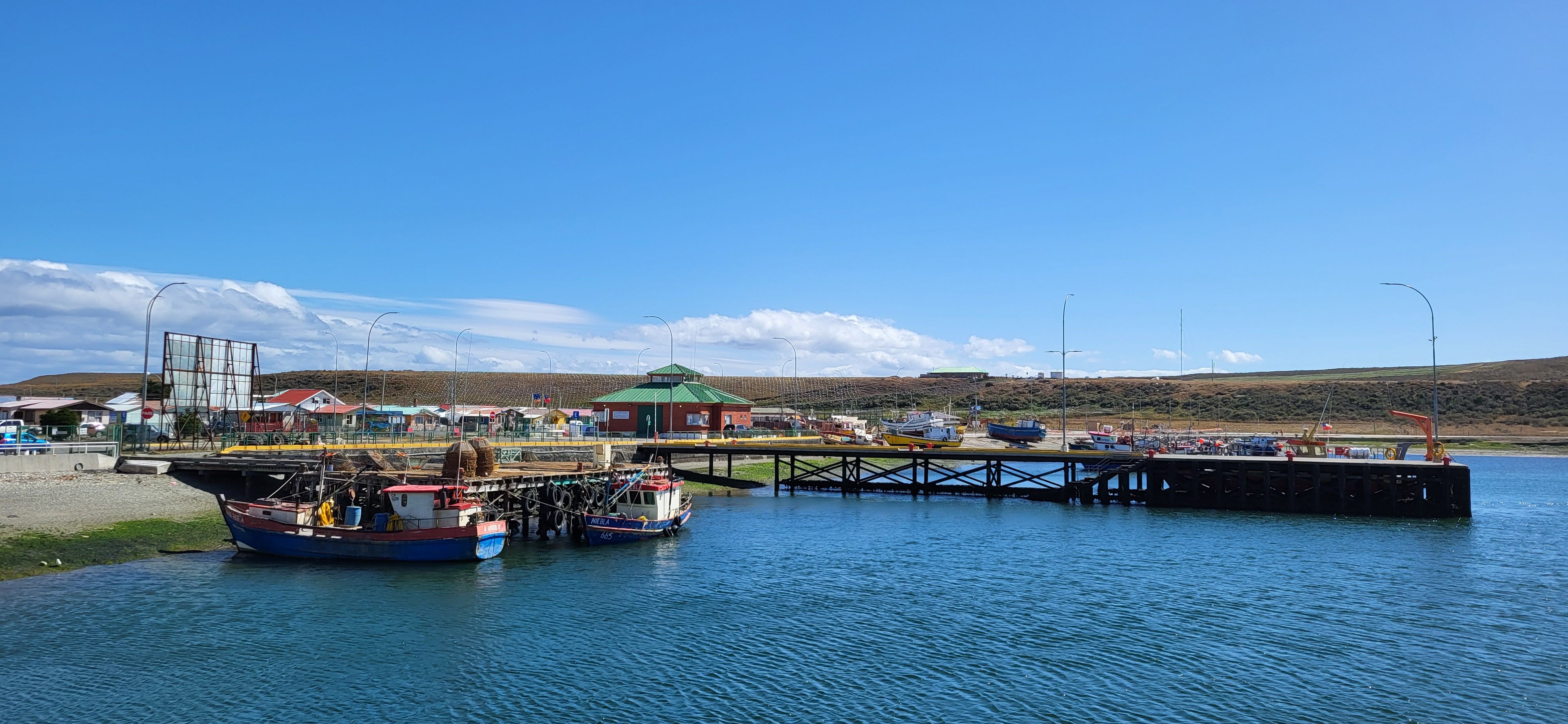 Nach dem Frühstück in Porvenir, Cabanas Pulegan und anschließend Vorbereitung auf die lange Schiffsreise nach Puerto Williams. Zunächst mussten wir die Karten für die Überfahrt von Porvenir nach Punta Arenas besorgen, reibungsfreier Ablauf. Es war noch genügend Zeit um das kleine Städtchen Porvenir ein wenig kennen zu lernen. Diese liegt in einer Bucht der Magellanstrasse. Dann die Überfahrt mit der Fähre, unseren Peugeot konnten wir auf einem bewachten Parkplatz am Hafen in Punta Arenas stehen lassen. Nach dem Check-in dann auf das Schiff und auf nach Puerto Williams....