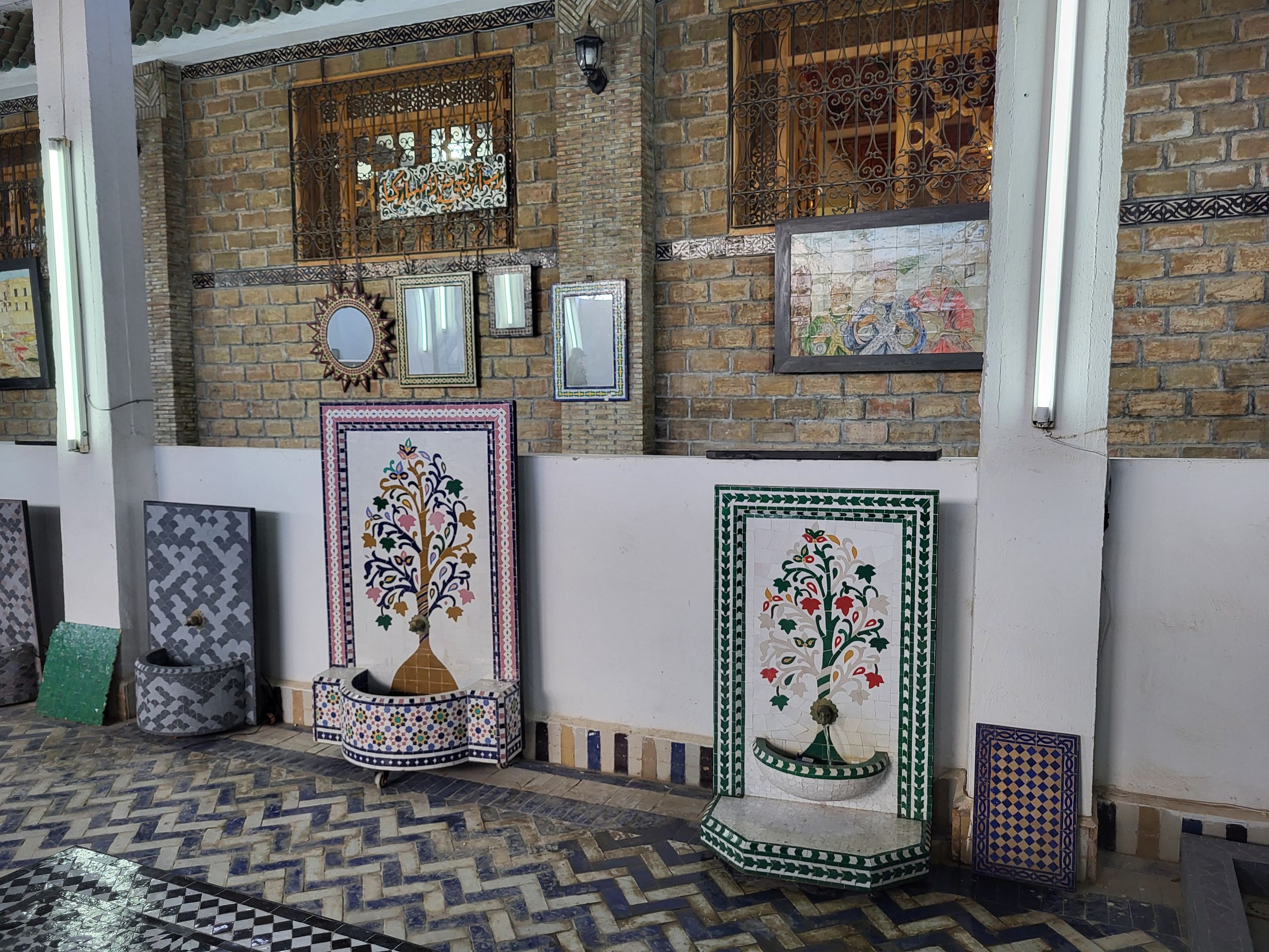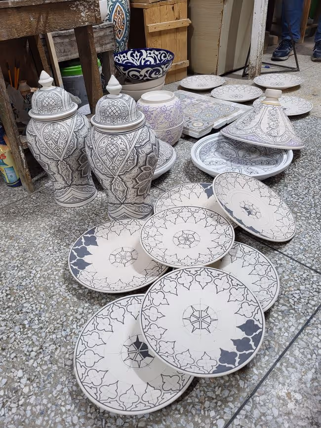 Altstadt von Fès Zuerst machten wir aber noch einen Stopp bei einer Töpferei, in der auch Tajine gefertigt werden. Das sind tönerne Töpfe mit Deckel, in denen traditionelle Speisen zubereitet werden.