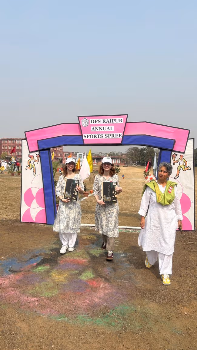 Ein weiterer Tag in Nava Raipur an der Schule und dieses Mal brachte ich mein eigenes Essen mit, um mich um meinen Magen zu kümmern. Allerdings waren die uns bewirtenden Lehrkräfte so lieb und hatten sich mit leichten Mahlzeiten an die Gegebenheiten angepasst. Daraufhin kam es wieder zur Trennung unserer Wenigkeiten, sodass es für mich in die Vorschulgruppe ging. Dort addierten die Kinder schriftlich. Anschließend war ich in Klasse 5, wo einige Schüler*innen ihre Projekte für einen Wettbewerb über umweltfreundliche Produkte vorstellten. Irfana (Ma'am) und ich mussten diese bewerten und die besten vier Beiträge herausschreiben. Wichtig war, dass jeweils ein Kind jedes Hauses vertreten war. Das könnt ihr euch wie in Harry Potter vorstellen. Im Schulsystem ist vorgesehen, dass es vier "Häuser" gibt. Die Kinder werden zufällig zu einer dieser Gruppen zugeordnet und alle Häuser sind in einer Klasse vertreten. Dadurch entsteht ein schulinterner Wettkampf, an dem sich allerdings verschiedene Alterklassen untereinander unterstützen können, wenn sie demselben Team angehören. Des Weiteren sah ich eine Grammatikstunde in Englisch und spielte am Ende noch ein kleines Auflockerungsspiel mit der Klasse, bevor mein nächster Weg danach in die 8. Klasse führte, wo ich eine Menge deutscher Phrasen unterrichtete. Außerdem wollten die Kinder das Alphabet sowie unsere Zahlen lernen und anschließend hatten sie Zeit, mir Fragen zu stellen. Von "Was ist Ihr Lieblingssport?" bis "Hat Deutsch wirklich so lange Wörter?" war alles vertreten. Ich habe mir also den Spaß nicht nehmen lassen und ihnen das Wort "Eierschalensollbruchstellenverursacher" beigebracht (ein wirklich deutsches Hilfsmittel, wenn man sein Ei perfekt pellen möchte). Daraufhin folgten das Mittagessen und die Busfahrt nach Hause. Dort gab es erstmal einen ausgiebigen Mittagsschlaf für eure Lieblingsomas (der Tina später den Nachtschlaf rauben sollte - ups). Wie jeden Tag gab es auch an diesem Chai (lecker) und dann kam Disha, die Tochter von Anita (unserer Köchin) und wir halfen ihr mit ihren Hausaufgaben, bis es Zeit zum Abendessen war. Danach ging es für Familie Mukherjee und ihre adoptierten deutschen Töchter ins Einkaufszentrum, um - ihr ahnt es - Schuhe für diese junge Dame (also für mich) zu finden. Und ihr werdet es nicht glauben, aber wir wurden fündig! Ich habe ganz wunderbare Turnschuhe mitnehmen können, die mir tatsächlich gefallen und die mich kein Vermögen gekostet haben. Darüber freue ich mich riesig! Die anderen kauften dann noch 1-2 Kleidungsstücke oder Dinge pro Person in weiteren Läden. Wir waren also wirklich erfolgreich und hatten noch dazu viel Spaß. Auf der Autofahrt machten es sich Yashoda und Raghunath zur Aufgabe, uns die Wörter für Kuh (gaay - "gei" gesprochen, von Tina aus Versehen "gay" genannt), Bulle (bail - "behl") und Hund (kuttā) beizubringen, was nun Teil unseres Alltagsvokabulars ist.👟