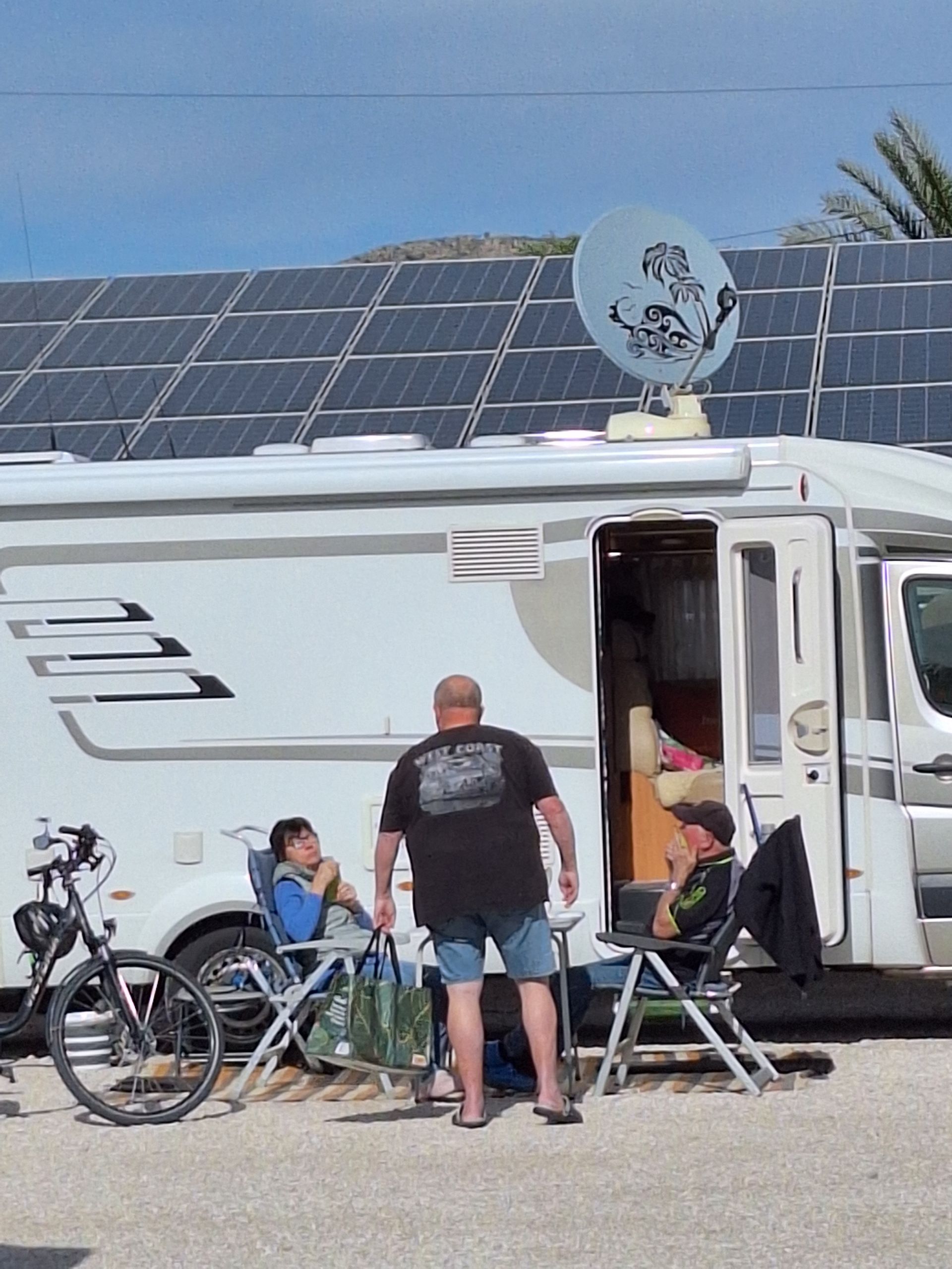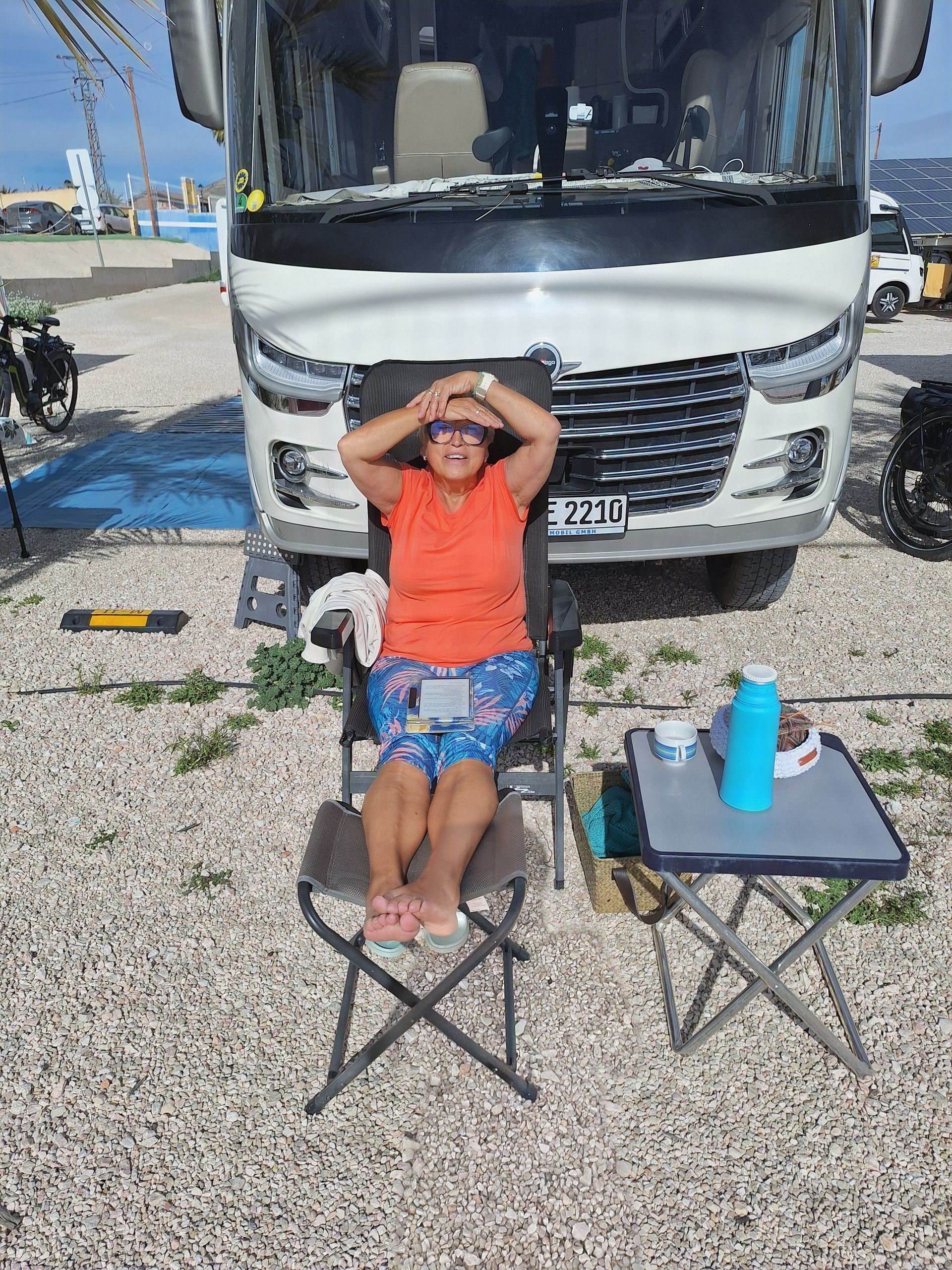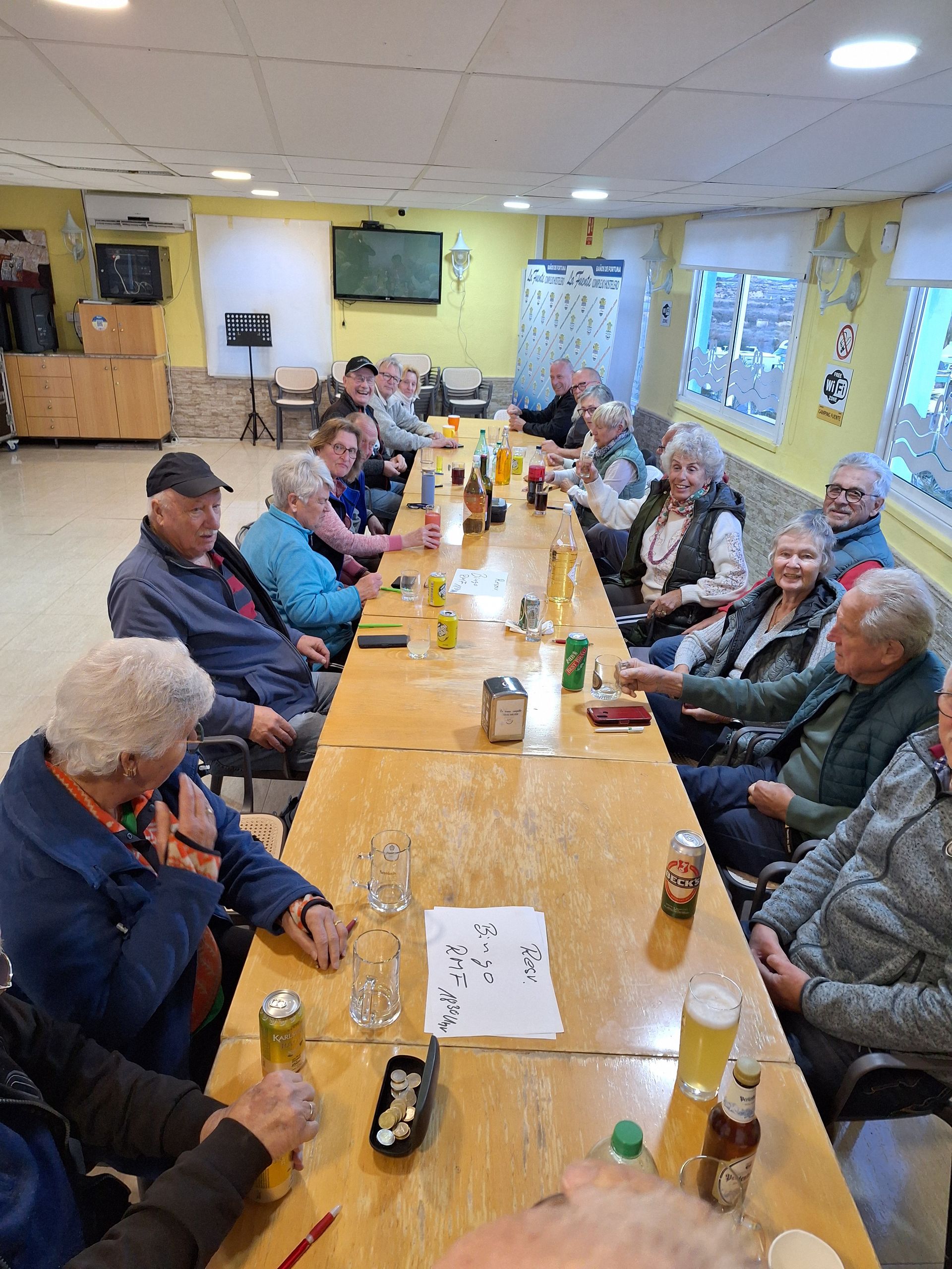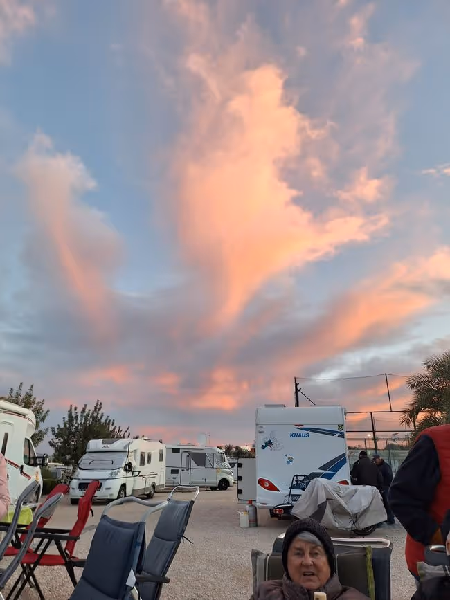 Der Tag beginnt.....mit Sonne 🌞 Nach dem Frühstück stürzen sich alle zuerst in die Therme, das Wasser und die Sonne 🌞sind so warm und wir tanken Vitamin D. Danach wird ausgibig geduscht und die Körperpflege nicht vernachlässigt. Die Berge ringsum ist der Parque Regional Sierra de la Pila. Fast alle bereiten sich ein Mittagessen zu und Speisen im Freien. Danach Radl Uschi, Irmi, Jupp, Hans und Ricci nach Fortuna, der Rest faulenzt in der Sonne 🌞mit stricken, lesen, oder dösen ein bisschen. Zum Kaffee ☕️ sind alle wieder daheim, denn heute Abend steht Bingo auf dem Programm...keiner möchte fehlen. In der ersten Runde gewinnen Dieter, Marianne und Diddi, herzlichen Glückwunsch...in der zweiten Runde gewinnen Brigitte, Heidi und Elke herzlichen Glückwunsch. In der dritte Runde Siegen ein Gast, Gerd H. und Gerd M. auch euch herzlichen Glückwunsch. Ein fröhlicher Abend geht zu Ende...Gute Nacht 🌃 ihr Lieben.