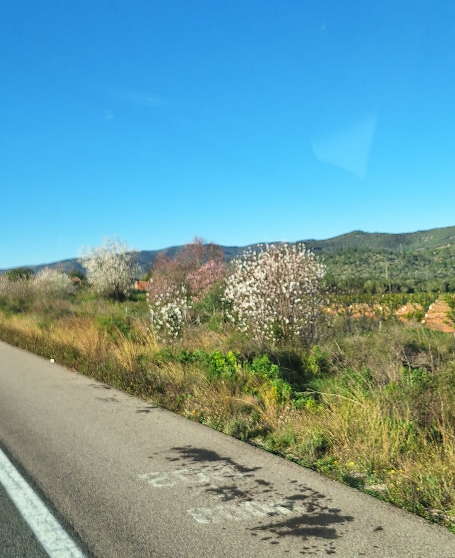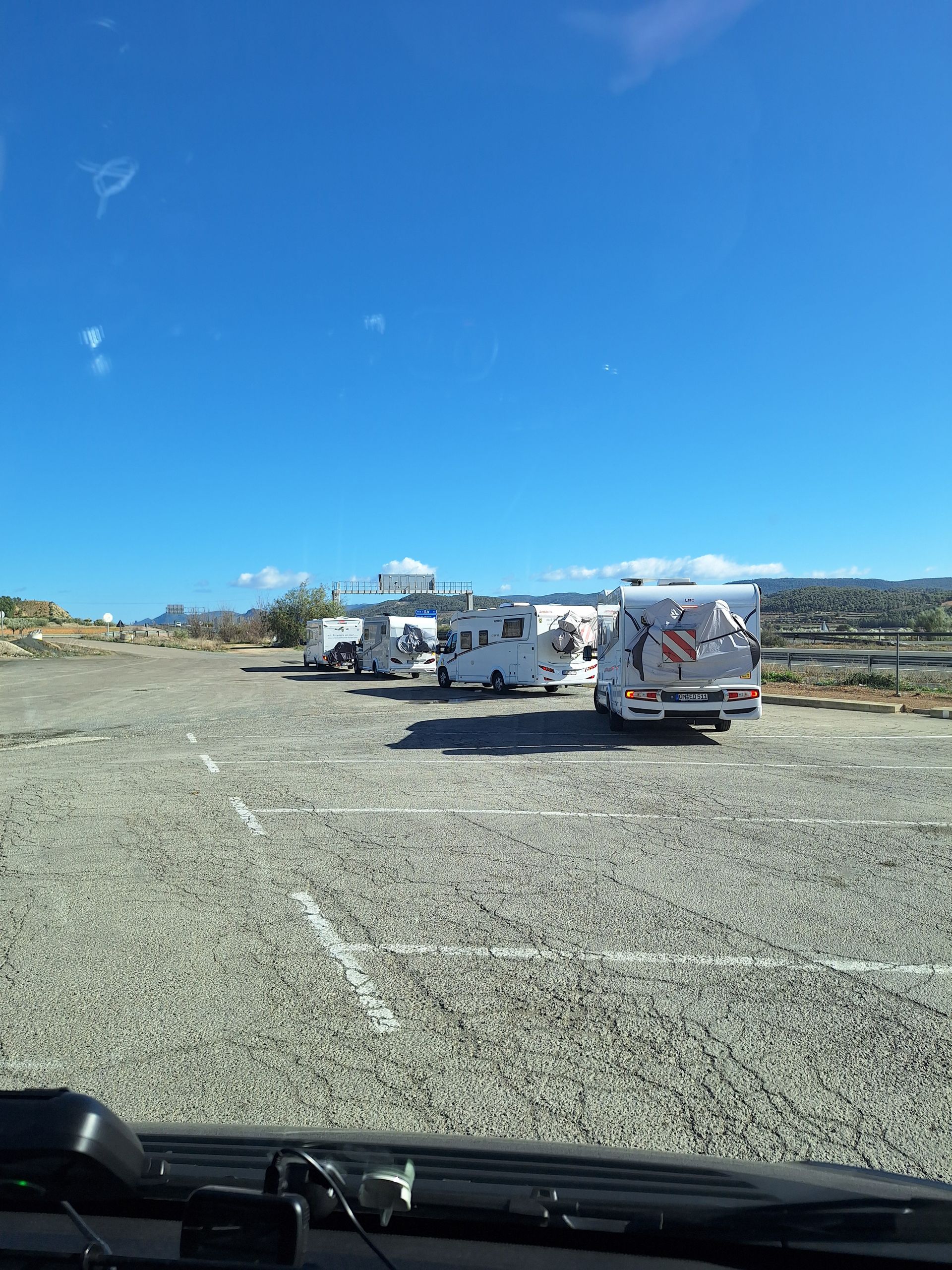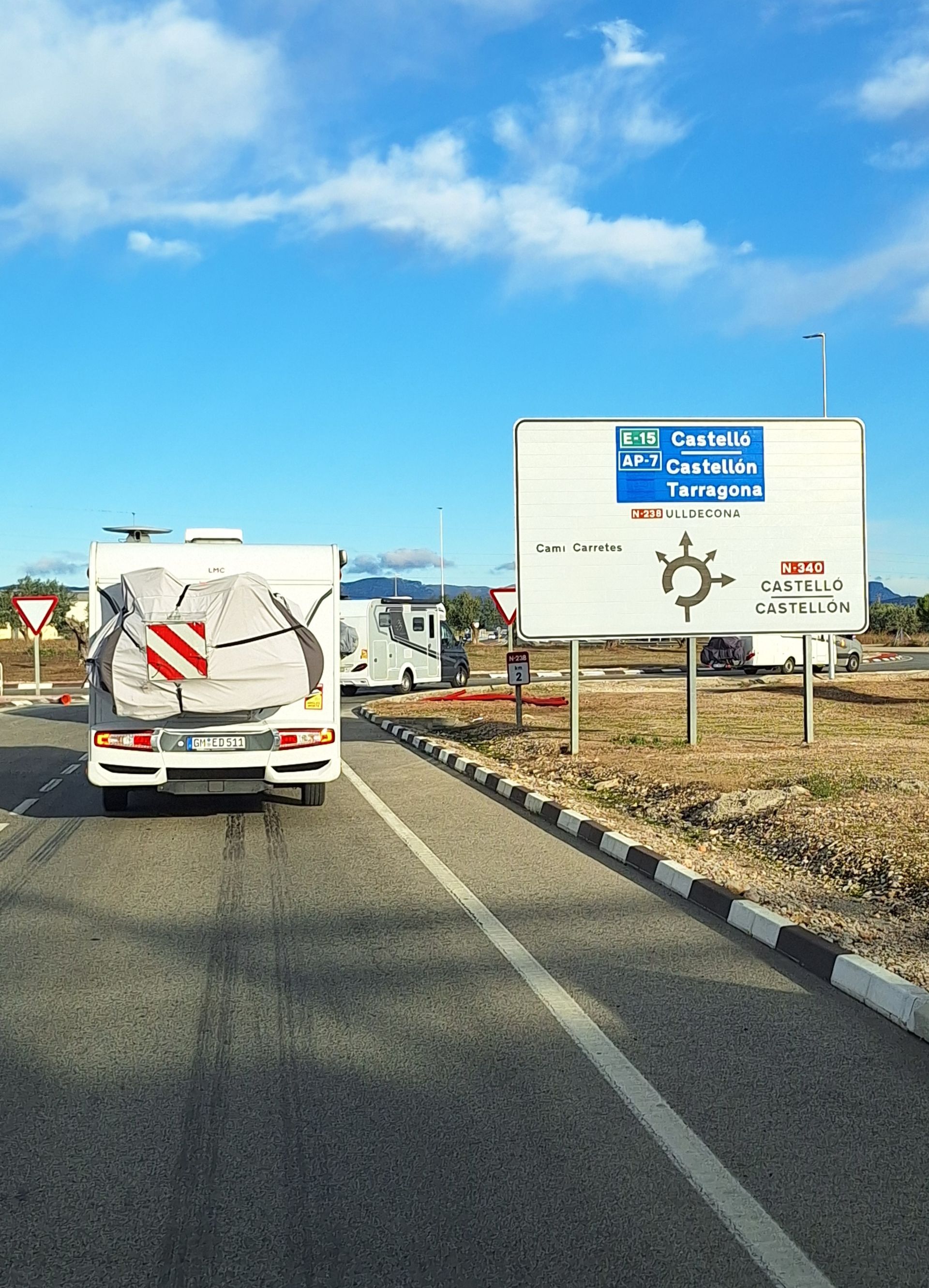 Einen wunderschönen guten Morgen, heute fahren wir die letzte große Etappe...Murcia ist unser neues Ziel, Ricci hat sich mit den Anreisetagen vertan, wir sind einen Tag zu früh🫣. Die vergangene Nacht war etwas windig und es hat ein bisschen geregnet, aber Spanien braucht schon noch Wasser. Nach dem tanken ⛽️ (1.189€ Traum Preise) geht's auf die AP - 7, die Wolken ☁️ lösen sich bei 12° langsam auf. Zwischen Orangen- und Olivenbäume bauen die Spanier Gemüse und Salate aller Art an. Die Mandelbäume blühen auch schon. Endlich das Spanien... Berge, Meer, Orangen am Wegesrand wild wachsend, Palmen 🌴und Touristenburgen, Kakteen, Sonnenschein und Verkäufer an der Autopista del Mediteraneo ...I like it... 16° Grad, schon sind wir in der Provinz de Valencia angekommen. Auf der Autopista kommen uns 3 Busse aus Maastricht entgegen, Andre Rieu auf Tour. Ein kurzer Stopp, der Wind weht ordentlich. Gurt-Kontrolle alles fest?...dann weiter. Mediterane Landschaften ziehen an uns vorbei, Düfte von Bärlauch, Knoblauch mischen sich mit Orangen-und Mandelblüten in unsern Nasen, auch die Pinien sorgen für angenehmes Atmen. Nach einer kurzen Pause...Endspurt an Alicante vorbei, hoch auf die Berge...Die Region um Murcia ist mit Wein 🍷 Anbau, Gemüse Felder und Marmorabbau gesegnet. Auf 700m ü.n.N. bläst der Wind wieder ordentlicher. Trotz Unwettern und überflutete Regionen (Weihnachten 2025) ist der Wassermangel immer noch sichtbar. Heute sind alle sehr froh wenn wir in Murcia beim IKEA Parkplatz angekommen sind.