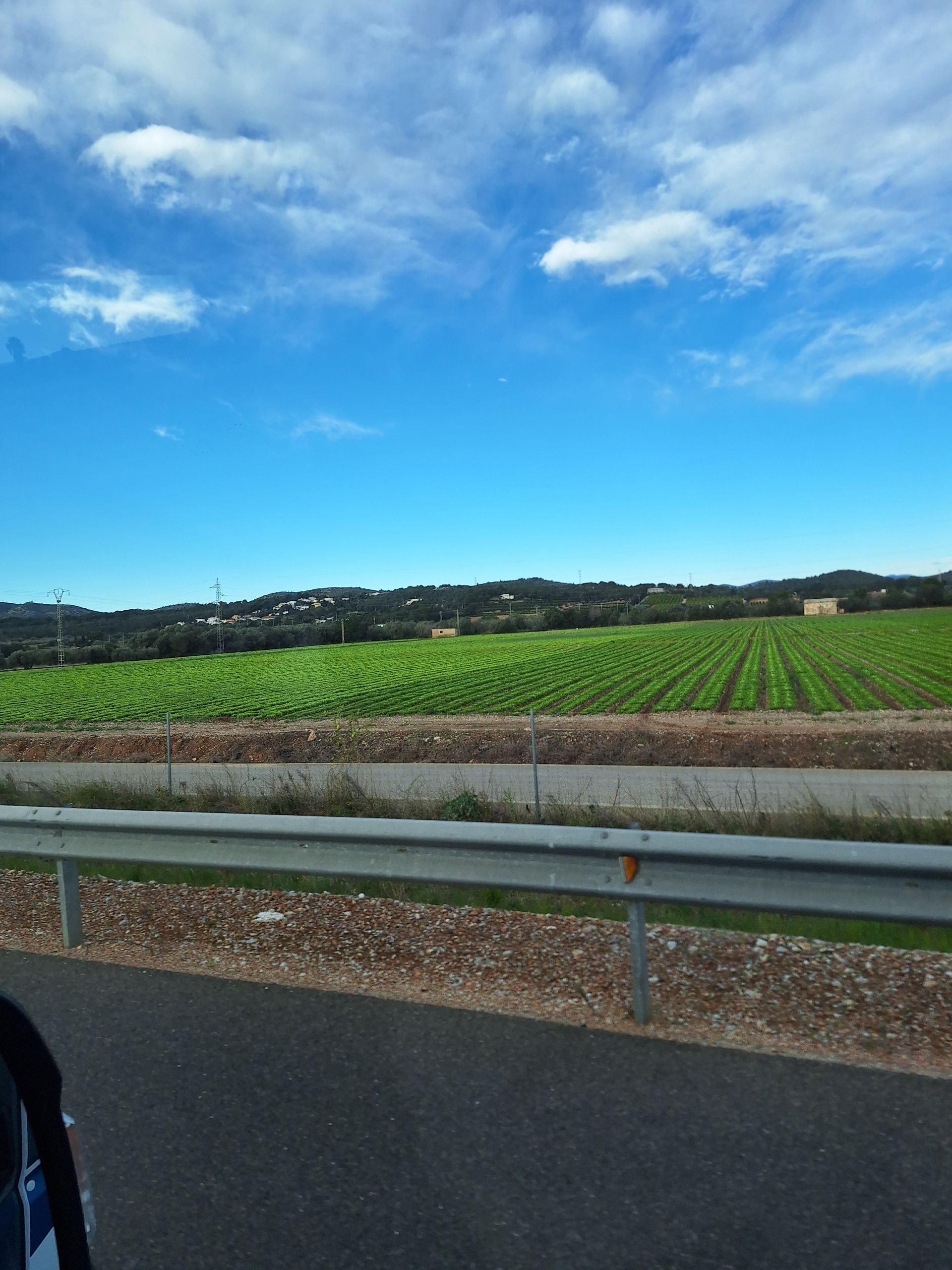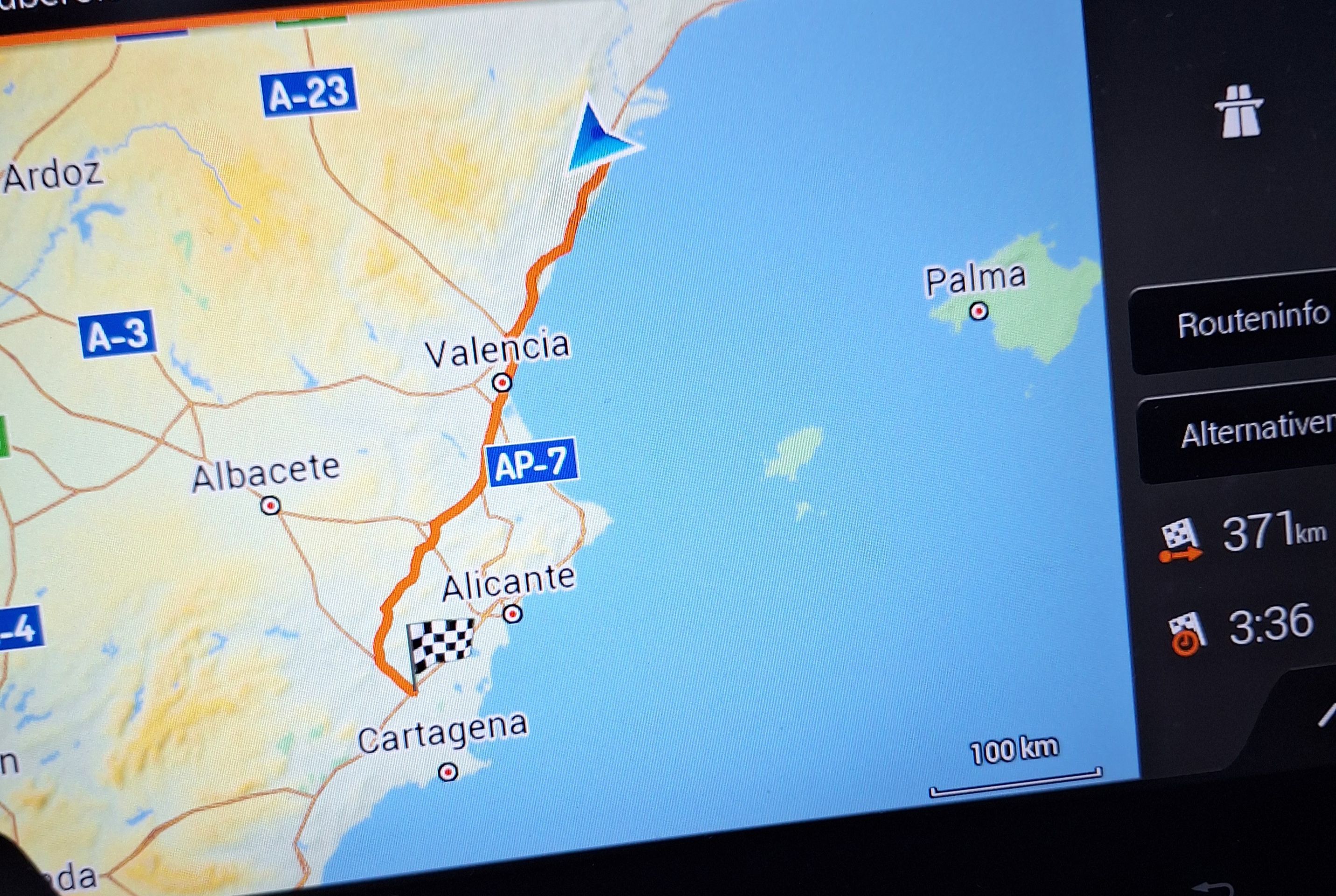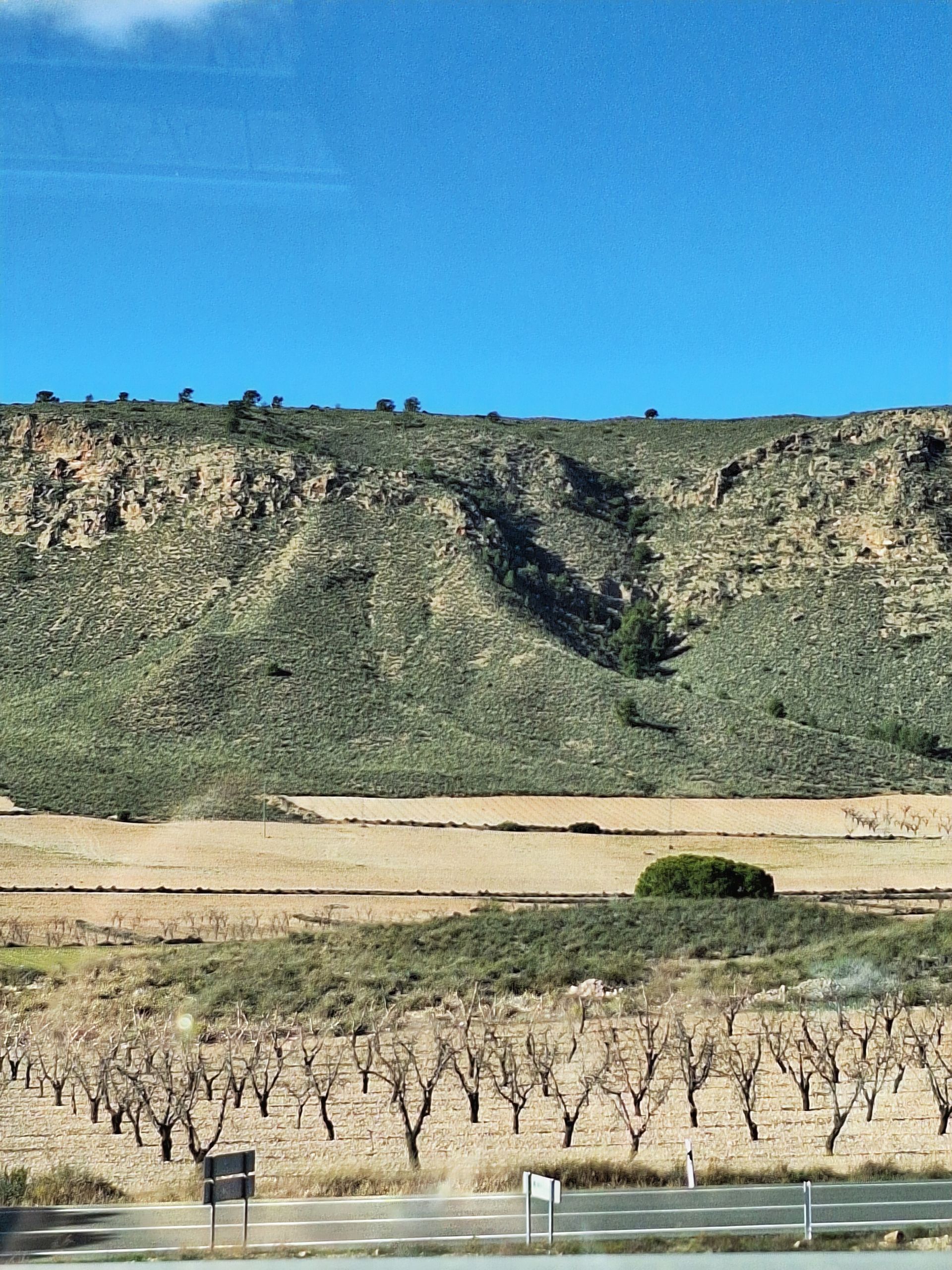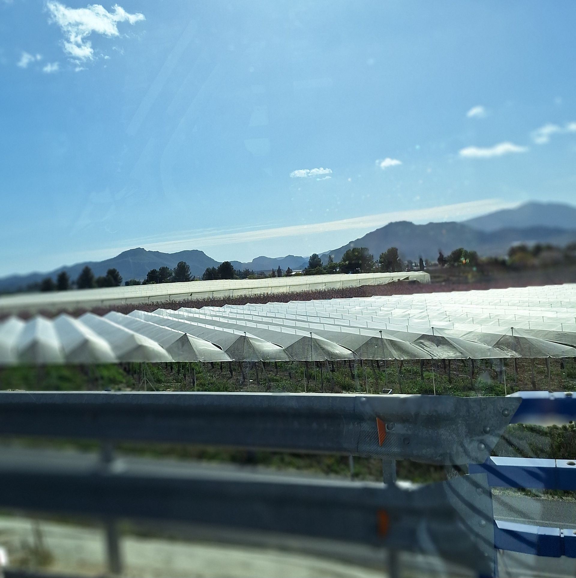 Einen wunderschönen guten Morgen, heute fahren wir die letzte große Etappe...Murcia ist unser neues Ziel, Ricci hat sich mit den Anreisetagen vertan, wir sind einen Tag zu früh🫣. Die vergangene Nacht war etwas windig und es hat ein bisschen geregnet, aber Spanien braucht schon noch Wasser. Nach dem tanken ⛽️ (1.189€ Traum Preise) geht's auf die AP - 7, die Wolken ☁️ lösen sich bei 12° langsam auf. Zwischen Orangen- und Olivenbäume bauen die Spanier Gemüse und Salate aller Art an. Die Mandelbäume blühen auch schon. Endlich das Spanien... Berge, Meer, Orangen am Wegesrand wild wachsend, Palmen 🌴und Touristenburgen, Kakteen, Sonnenschein und Verkäufer an der Autopista del Mediteraneo ...I like it... 16° Grad, schon sind wir in der Provinz de Valencia angekommen. Auf der Autopista kommen uns 3 Busse aus Maastricht entgegen, Andre Rieu auf Tour. Ein kurzer Stopp, der Wind weht ordentlich. Gurt-Kontrolle alles fest?...dann weiter. Mediterane Landschaften ziehen an uns vorbei, Düfte von Bärlauch, Knoblauch mischen sich mit Orangen-und Mandelblüten in unsern Nasen, auch die Pinien sorgen für angenehmes Atmen. Nach einer kurzen Pause...Endspurt an Alicante vorbei, hoch auf die Berge...Die Region um Murcia ist mit Wein 🍷 Anbau, Gemüse Felder und Marmorabbau gesegnet. Auf 700m ü.n.N. bläst der Wind wieder ordentlicher. Trotz Unwettern und überflutete Regionen (Weihnachten 2025) ist der Wassermangel immer noch sichtbar. Heute sind alle sehr froh wenn wir in Murcia beim IKEA Parkplatz angekommen sind.