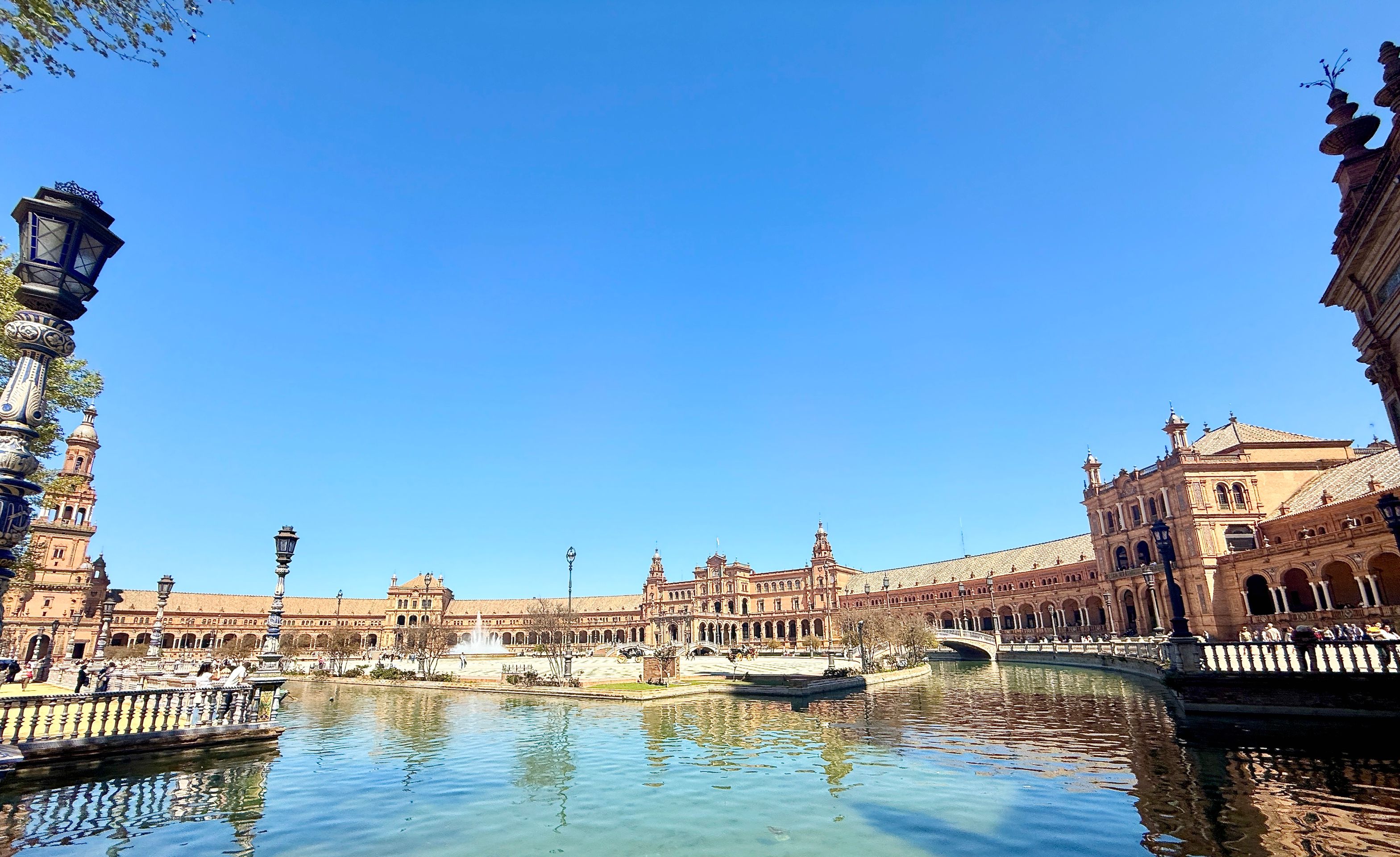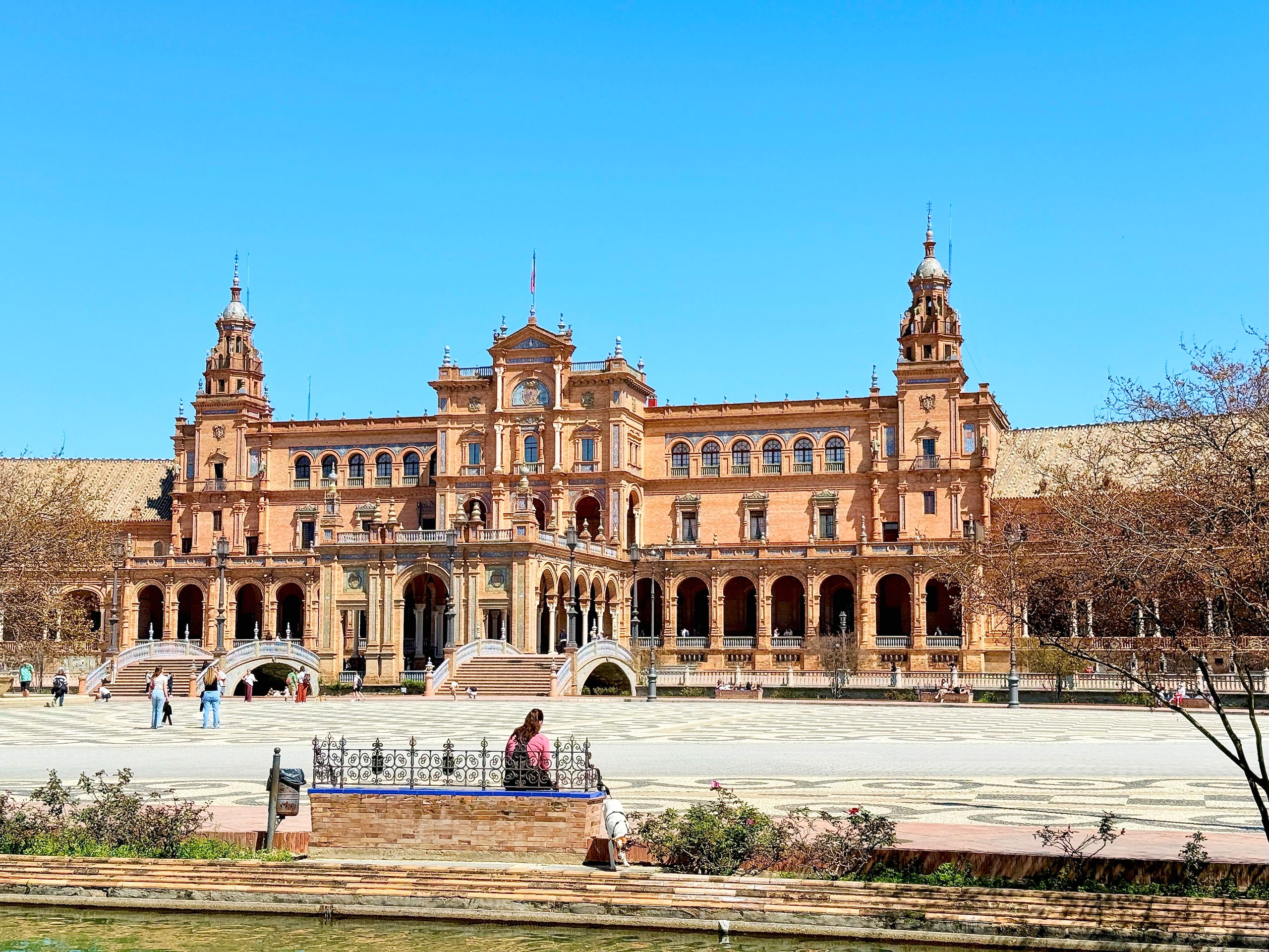 Die Straßen Sevillas um die Mittagszeit sind ein Alptraum. Kilometerlange Autoschlangen. Dazwischen Pferdekutschen, Omnibusse und Lkws, die alle ihre eigenen Verkehrsregeln zu haben scheinen - oder gar keine. Nach einer Stunde waren wir am Ziel. Aber: Der Parkplatz war voll. Keine Chance. Also doch die Alternative Stellplatz, auch wenn der fast drei Kilometer vom Touristenbüro entfernt liegt. Nach 30 Minuten auf den verstopften Straßen in der anderen Richtung kamen wir gegen 13.30 Uhr an. Parken ja, aber nur für 24 Stunden. Puuuuh! Aber nachdem ich kurz überschlagen hatte – drei Kilometer zum Touristenbüro hin, drei Kilometer zurück, dafür würde Icke als unser „Tempomacher“ locker vier Stunden brauchen, dazu ein kleines Lunch, eine kurze Kaffeepause und ja, danach würde es ohnehin langsam dunkel werden. Wir nahmen das 24-Stunden-Ticket, parkten ein und machten uns auf zum Spanischen Platz, der direkt auf unserem Weg lag. Das Schicksal hatte längst die Zügel in die Hand genommen …