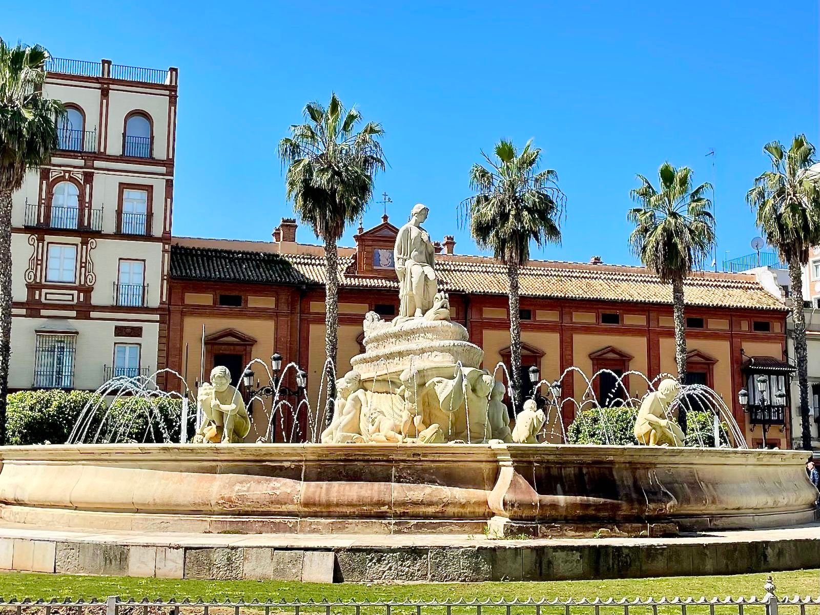 Wir waren im Studentenviertel unterwegs. Überall junge Leute, die lachten schäkerten, sich ihre Energietanks vor den Cafés und Bars von den Sonnenstrahlen zum Überlaufen auffüllen ließen – wahrscheinlich für einen langen Tag. Die gute Stimmung rings um uns war richtig ansteckend. Mit jedem Meter in Richtung Zentrum stieg bei uns die Freude auf diesen Tag, und so entdeckten wir hinter jeder Straßenbiegung Brunnen, Gebäude oder Marmorstatuen, die unsere Aufmerksamkeit einfingen und uns in Staunen und Begeisterung versetzten. Wirklich, wir kennen keine Stadt, die mit so vielen Sehenswürdigkeiten aufwarten kann, wie Sevilla.