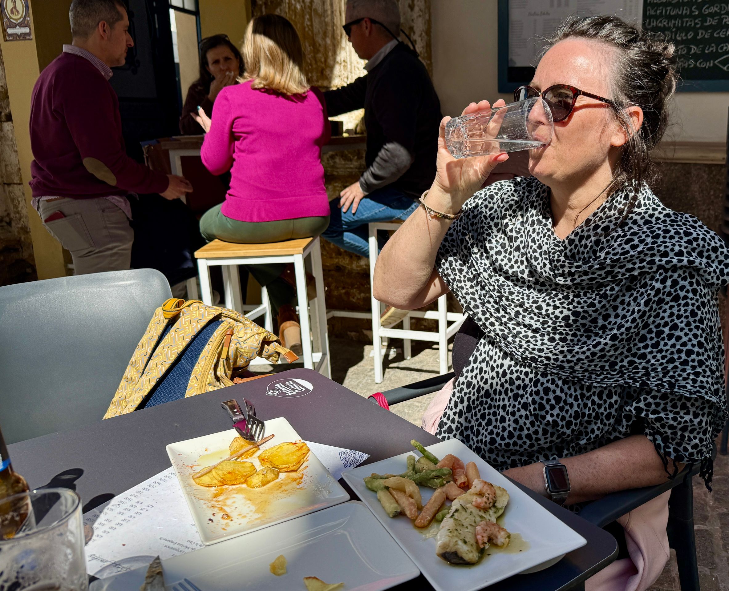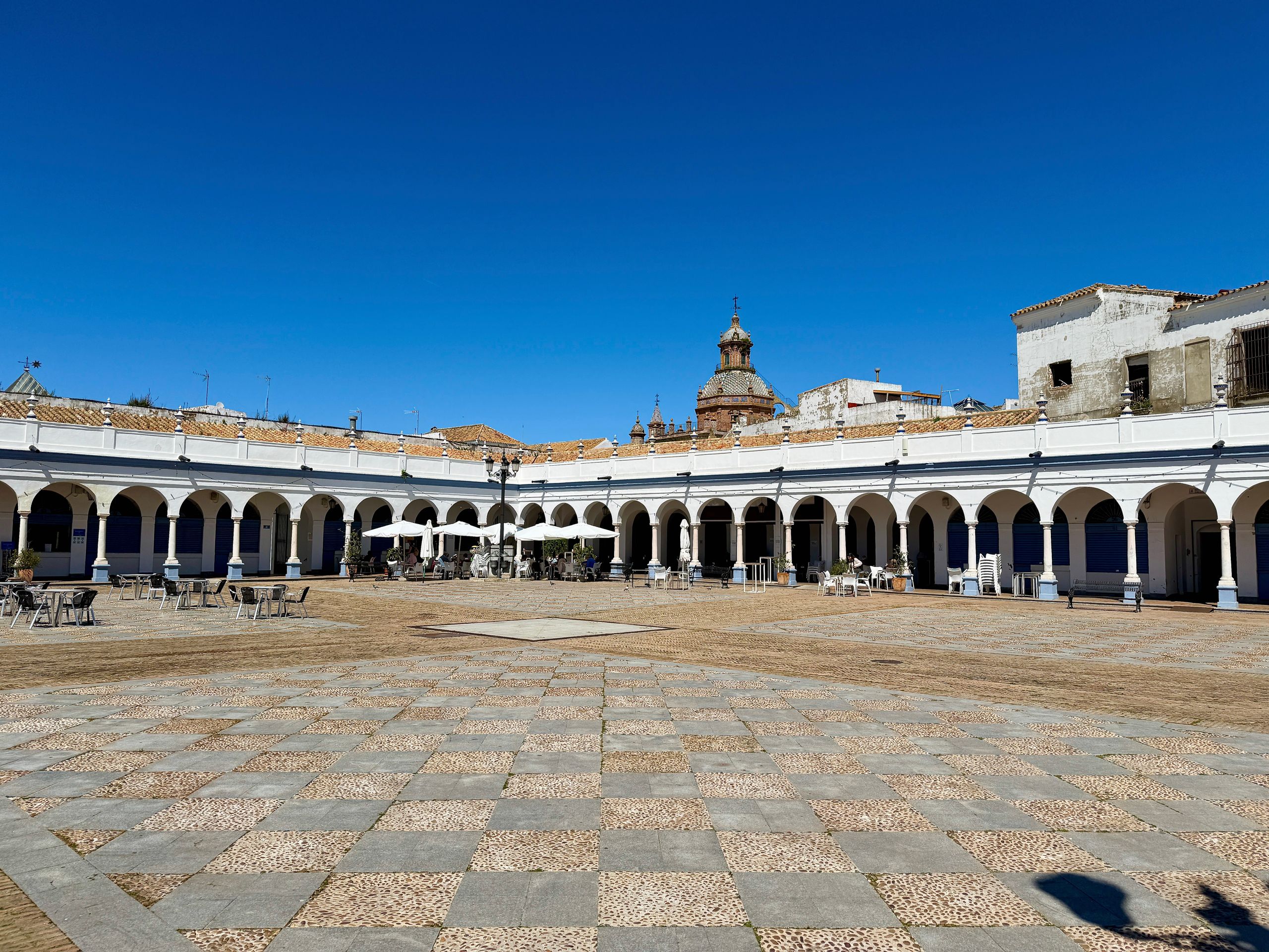 Die Entscheidung, einen Tag länger zu bleiben, fiel nicht alleine aufgrund der ganz besonderen Atmosphäre von Carmona. Auch ein orangefarbenes Lämpchen hatte seinen Anteil daran: die Warnleuchte für die Bremsbeläge leuchtete im Display unseres Ducato auf. Das war auf dieser Reise nicht das erste Mal, aber anders als sonst, wollte es diesmal nicht mehr erlöschen. Bremsbeläge. Puhh. Das hörte sich nicht ganz unproblematisch an. Ich rief Cedric Ebert an, Ickes Cousin, der in Angermünde einen Reifenhandel samt Autowerkstatt betreibt. Er war so nett und nahm sich Zeit für unser Problem. Sein Rat: unbedingt anschauen lassen. Also fragten wir im Tourismusbüro – wo wir uns übrigens auch den ersten Stempel für unseren Reisepass „Via de la Plata“ abholten – nach einer guten Werkstatt. Die war schnell gefunden und nur drei Minuten Fahrzeit von unserem Parkplatz entfernt.