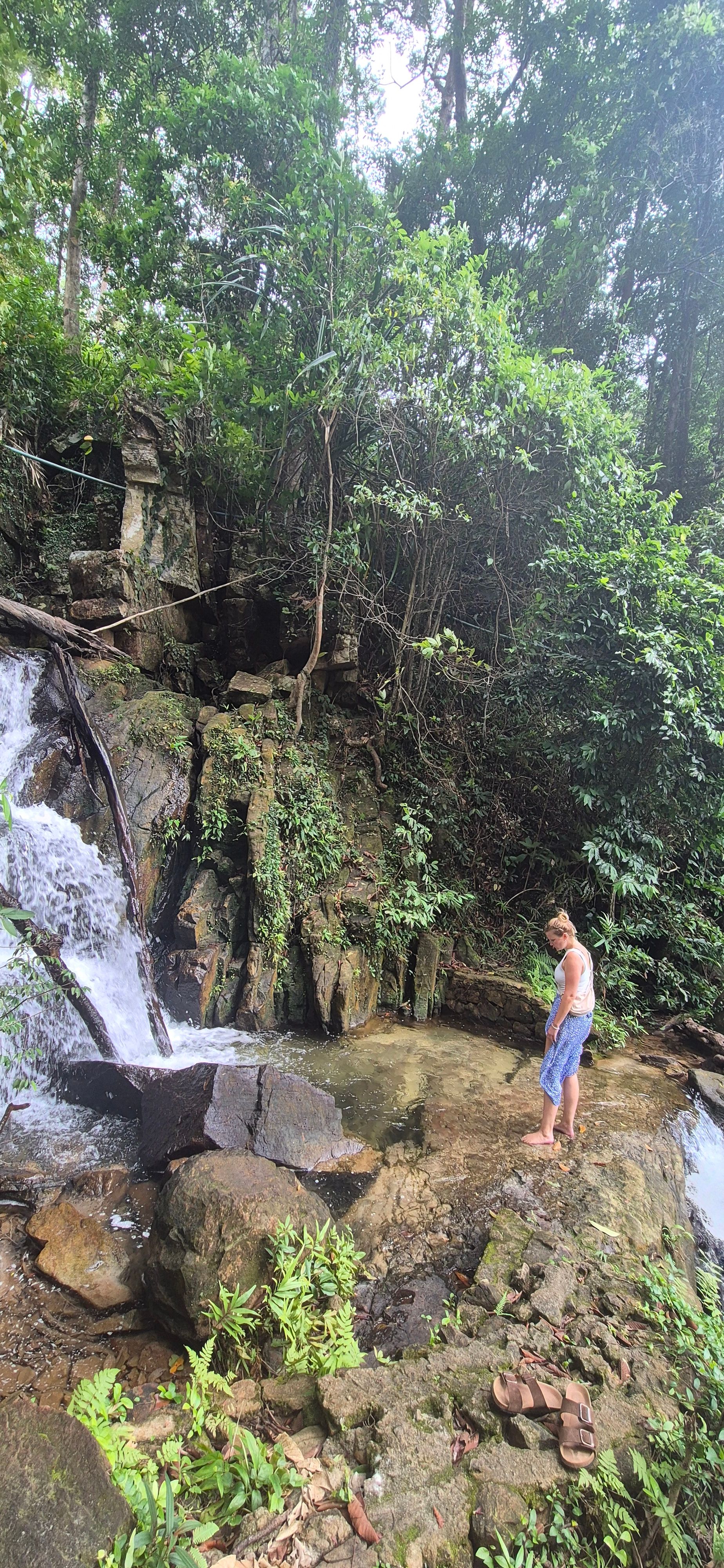 Am nächsten Morgen nach dem Frühstück entschieden wir uns aufgrund der eher wolkigen Situation, den nahegelegenen Wasserfall zu besuchen. Nach einem 20 minütigem Strandspaziergang und 2$ Eintritt hatten wir ihn erreicht, kühlten kurz unsere Füße ab und machten uns auf den Rückweg.