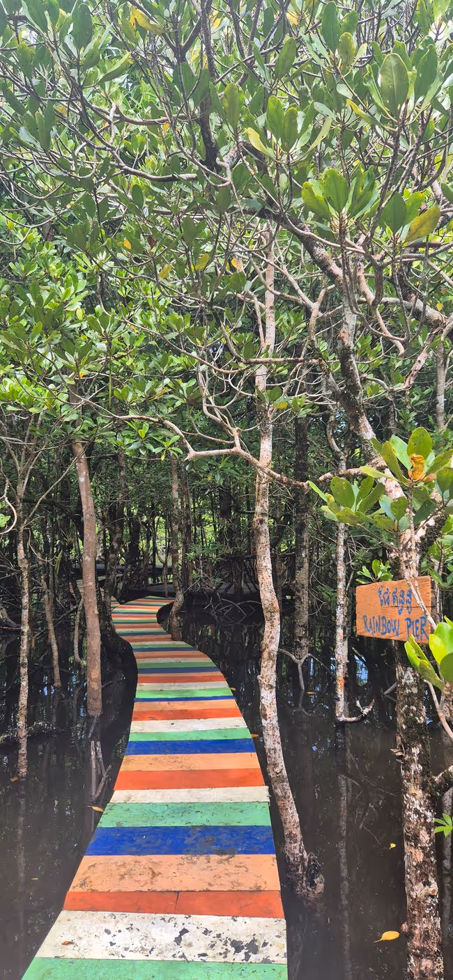Internet ist etwas schwierig und abends um 5 regnet es. Doll. Aber sonst ist es das Paradies. Unser liebstes Fortbewegungsmittel, das TukTuk, ist hier ungefähr 5x so teuer aber das ist ok, die meisten Sachen können wir fußläufig erreichen. Am 27.10. hatten wir eine Tour gebucht, bei der wir einige der Strände, den Mangrovenwald und einen Wasserfall besichtigen konnten.