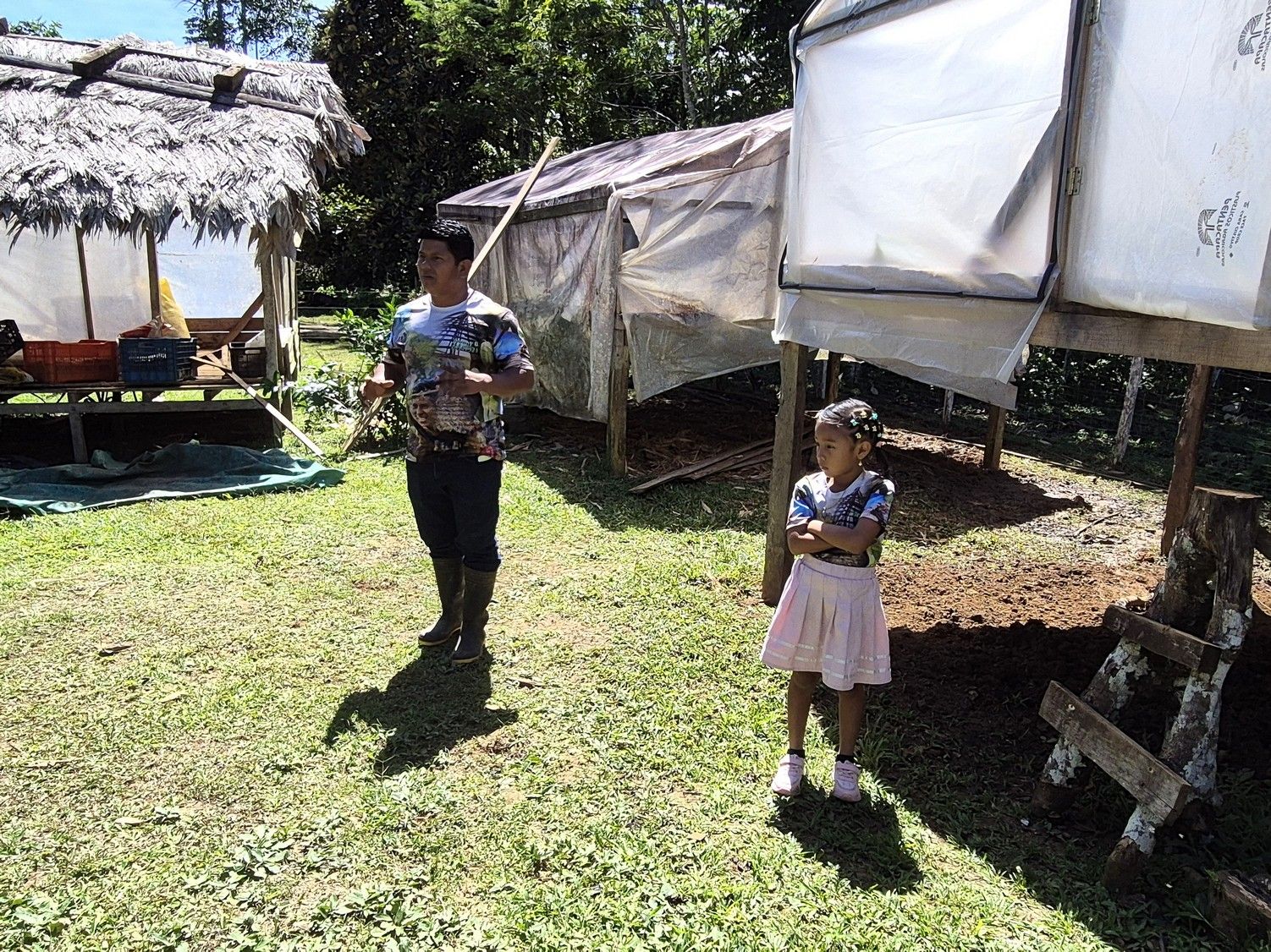 Wir werden schon unterwegs von einem ranghohem Bribri freundlich empfangen und mit Erklärungen uns Dorf geleitet. Die T-Shirts von ihm und auch der kleinen „Prinzessin“ sind wohl dem Besuchstourismus gewidmet.