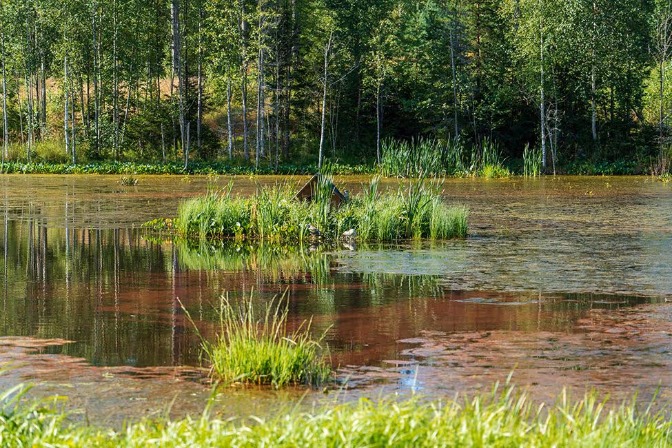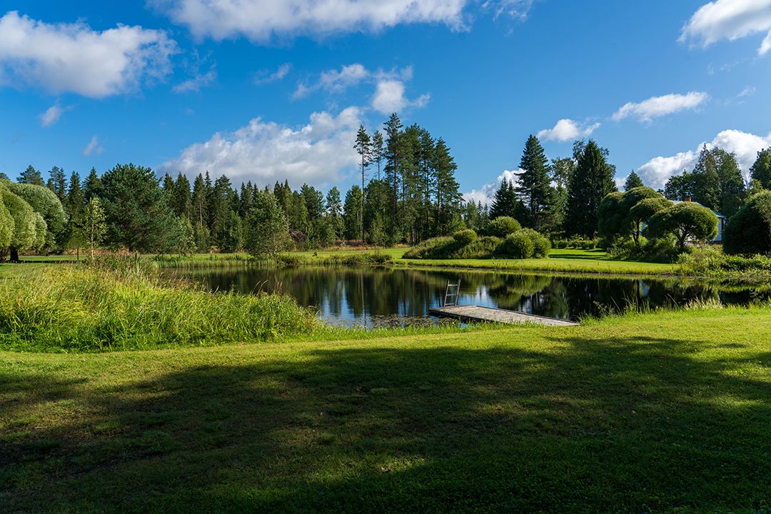 Südlich von Tampere stoßen wir auf ein kleines Paradies – und das Beste: Wir haben das Camp ganz für uns allein. Mit Rauchsauna, Feuerhütte und einem Teich zum Baden. Es ist wunderbar ruhig, und am liebsten würden wir viel länger bleiben.